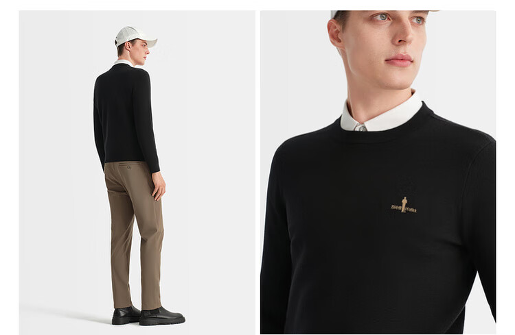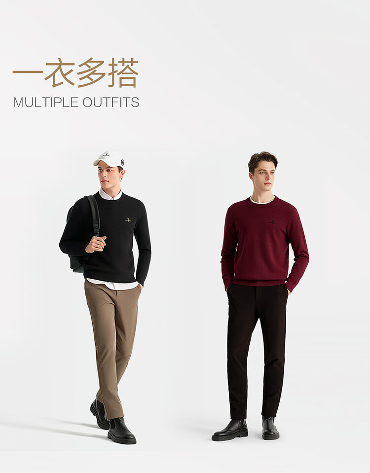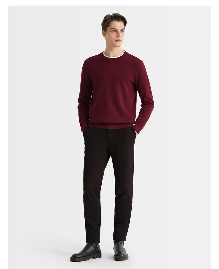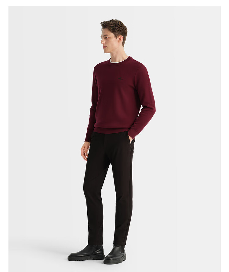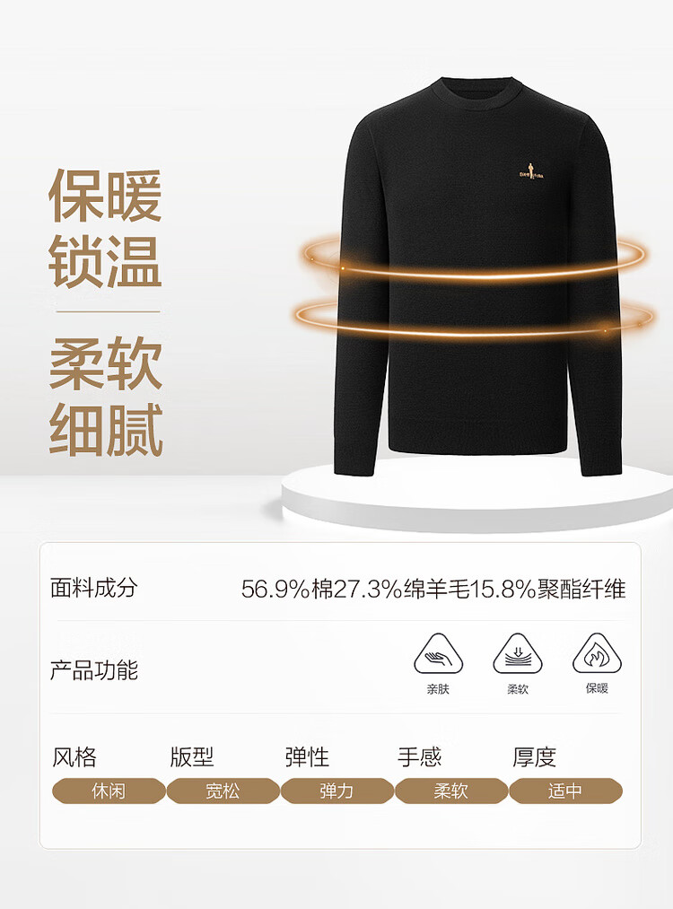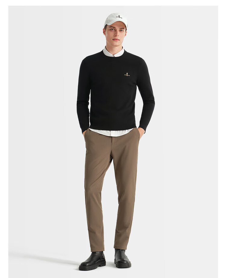Biyinlefen sheep wool spring and autumn men's casual all-match sweater warm round neck textured wool sweater skin-friendly 75 light green S