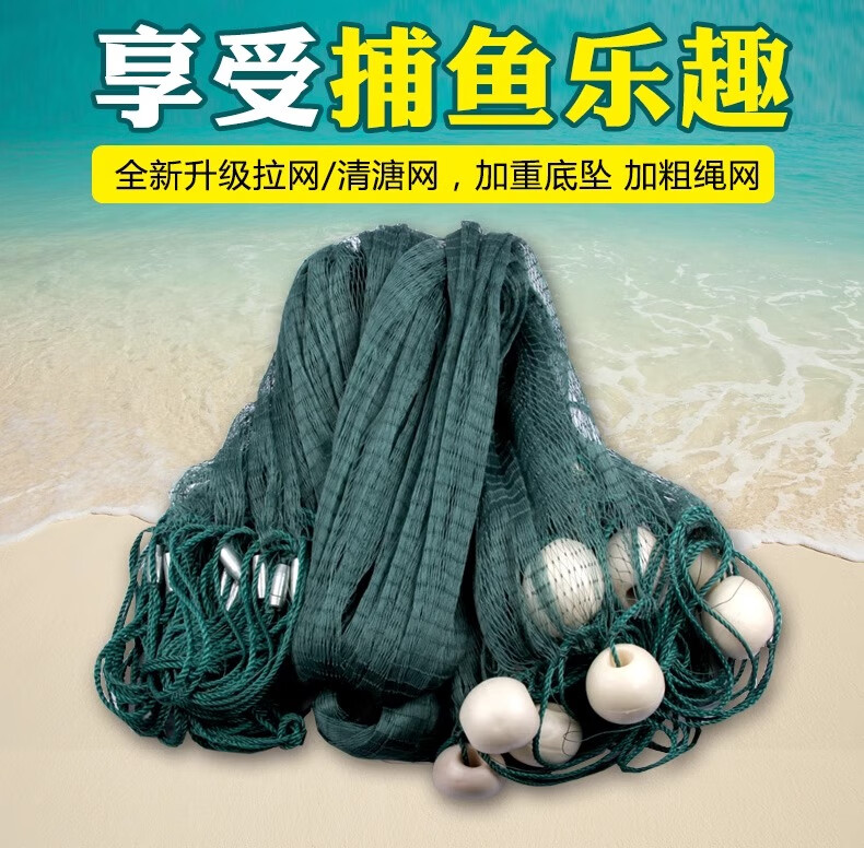 Fishing fun zone drag net fishing net drag net river fish pond fish scraping seine 2-finger partition clearing net 10m long 2m high 2-finger drag net weighted steel pendant new material mesh, strong and reliable