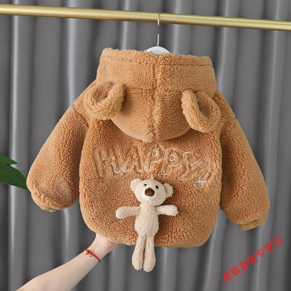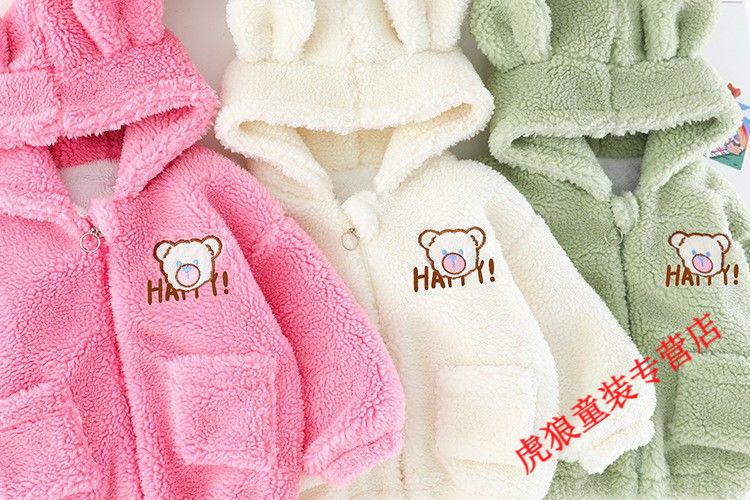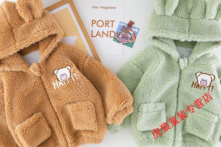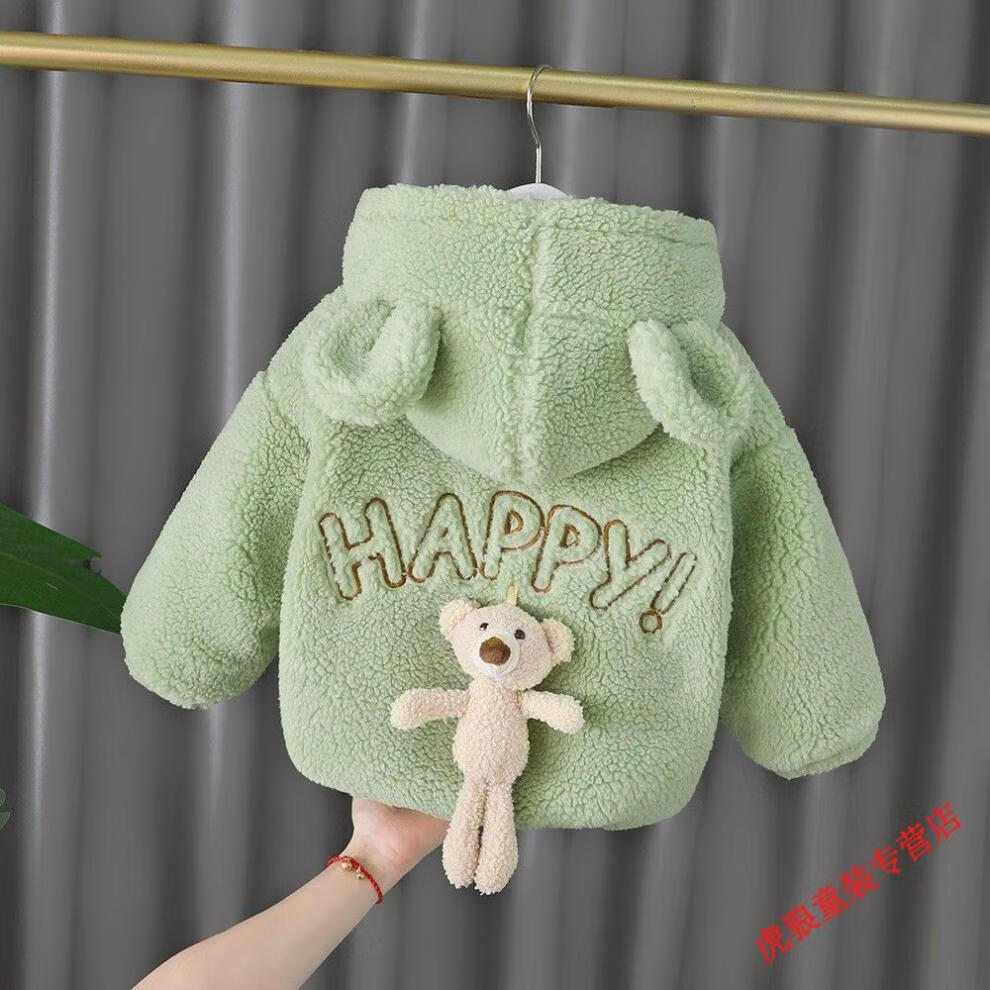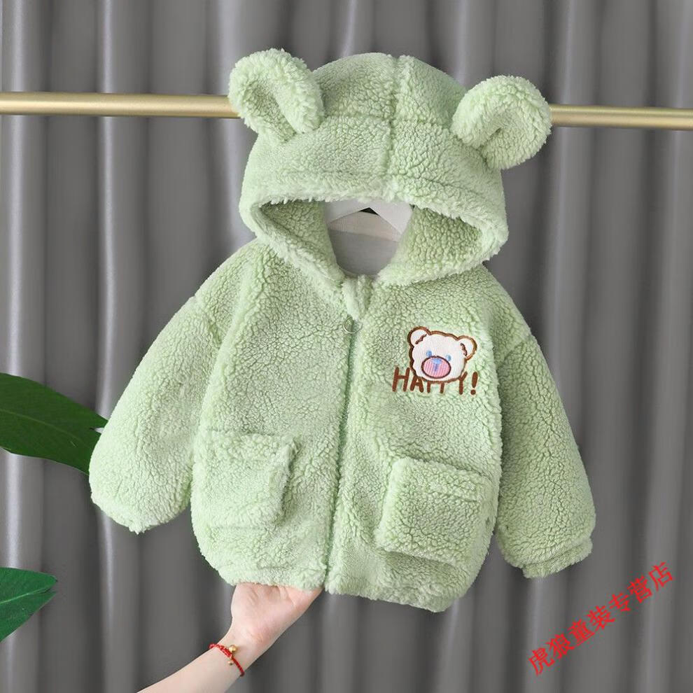 G.DUCKKIDS girls' lambswool jacket winter new product plus velvet thickened children's clothing fashionable baby boy winter woolen sweater light green 100 cm