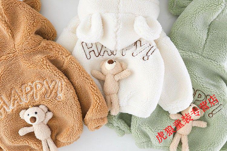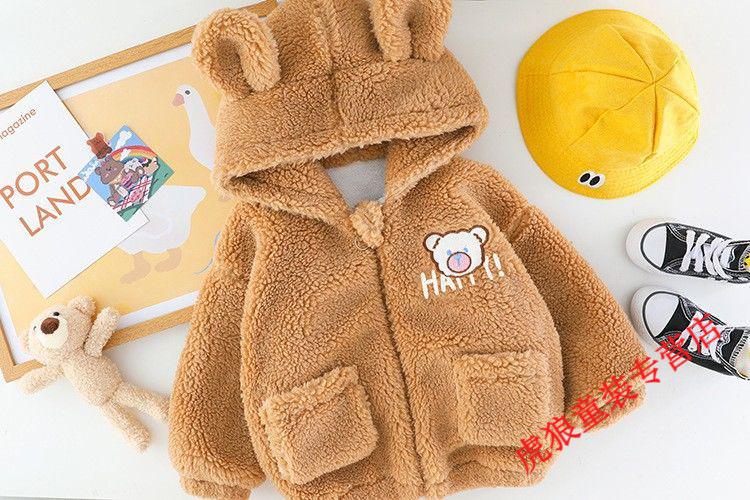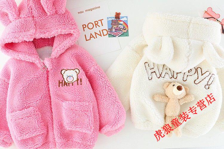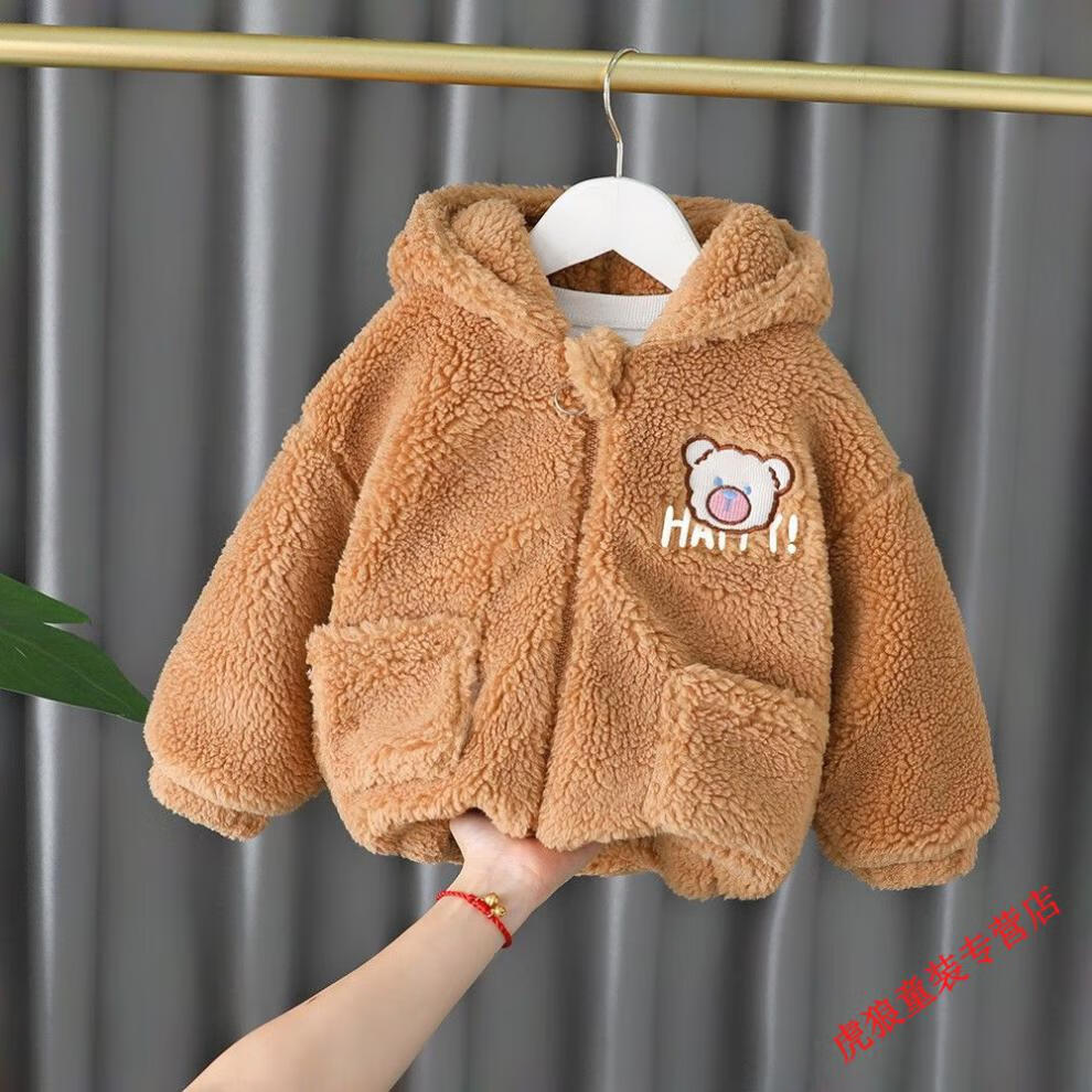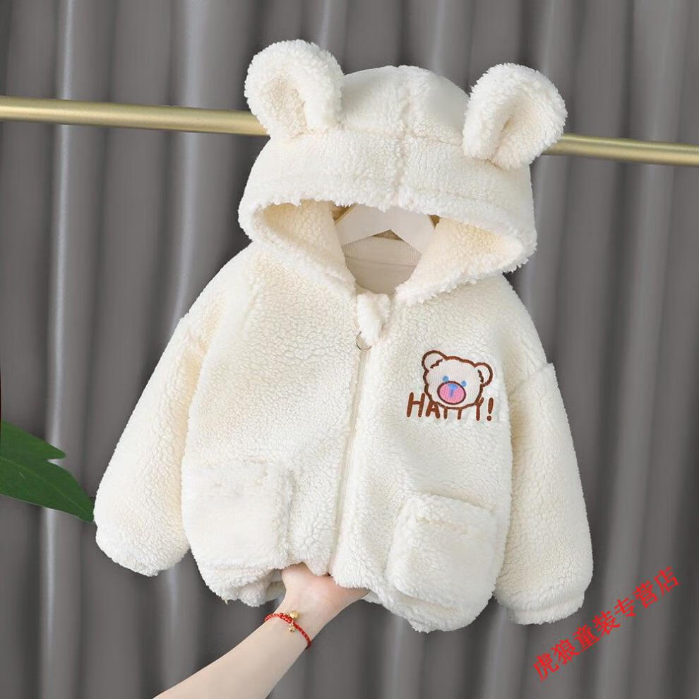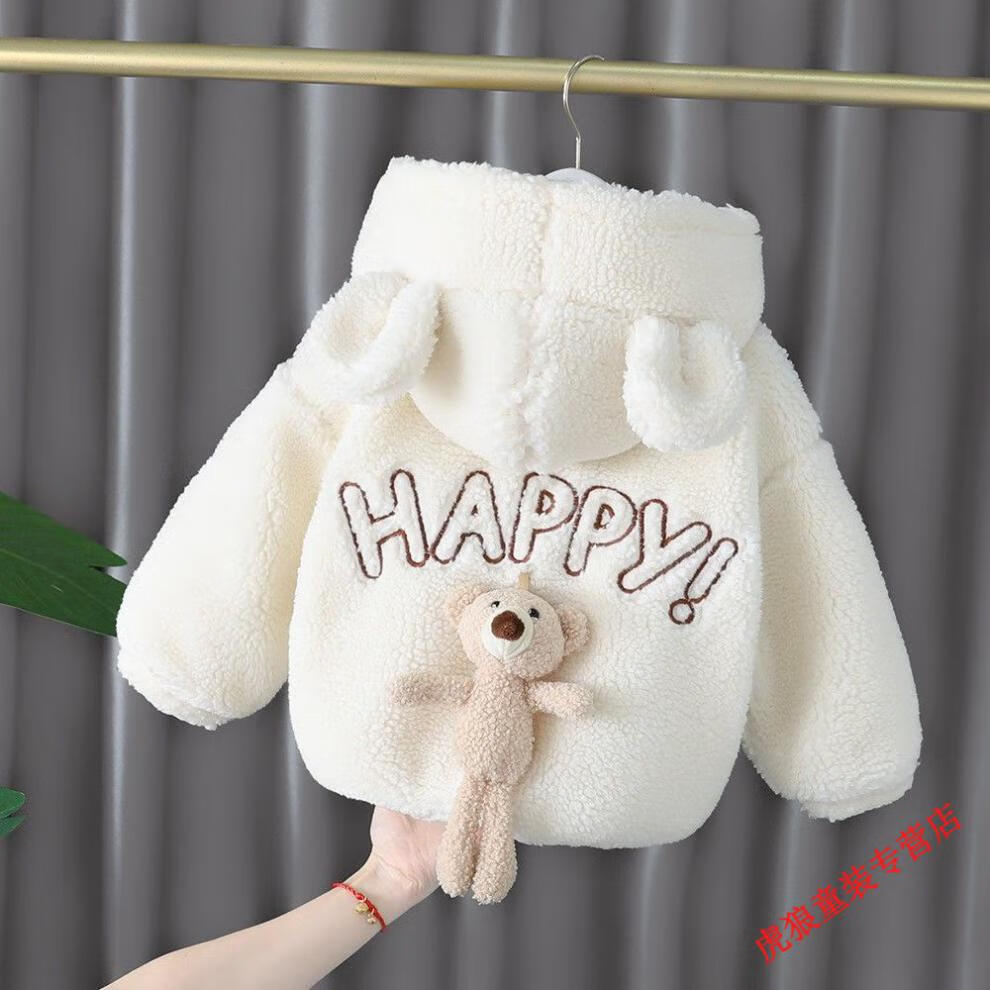 G.DUCKKIDS girls' lambswool jacket winter new product plus velvet thickened children's clothing fashionable baby boy winter woolen sweater light green 100 cm
