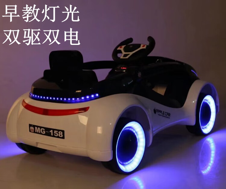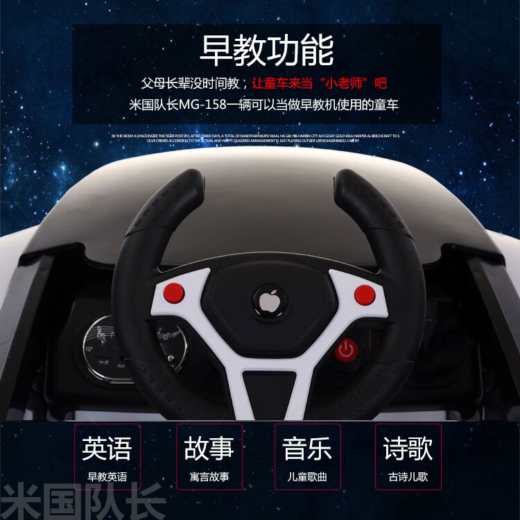 Captain America sci-fi children's car can drive baby remote control toy car can sit four-wheel flash swing children's electric car white + leather seat + blue light + remote control + swing