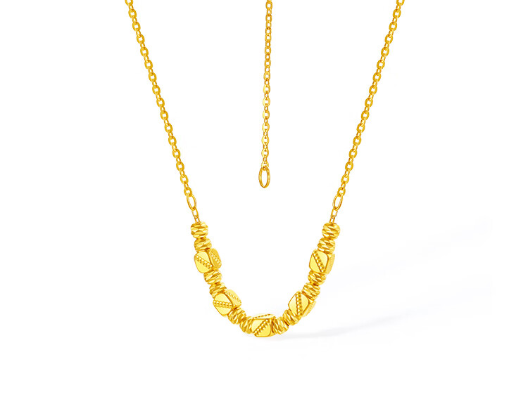Saturday Blessing Yellow 18K gold necklace for women simple gold bead pendant clavicle chain as a holiday gift for girlfriend 40+5cm tail chain