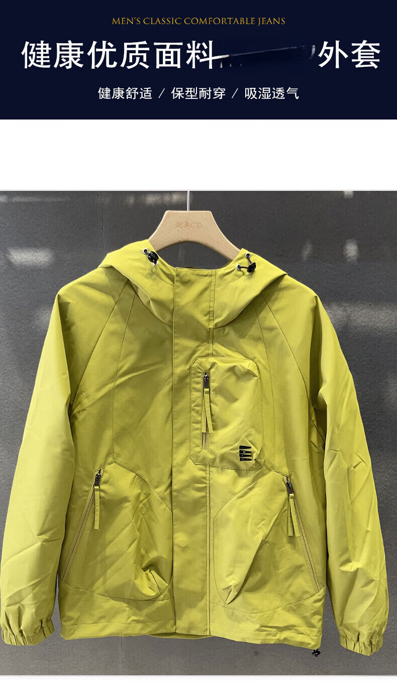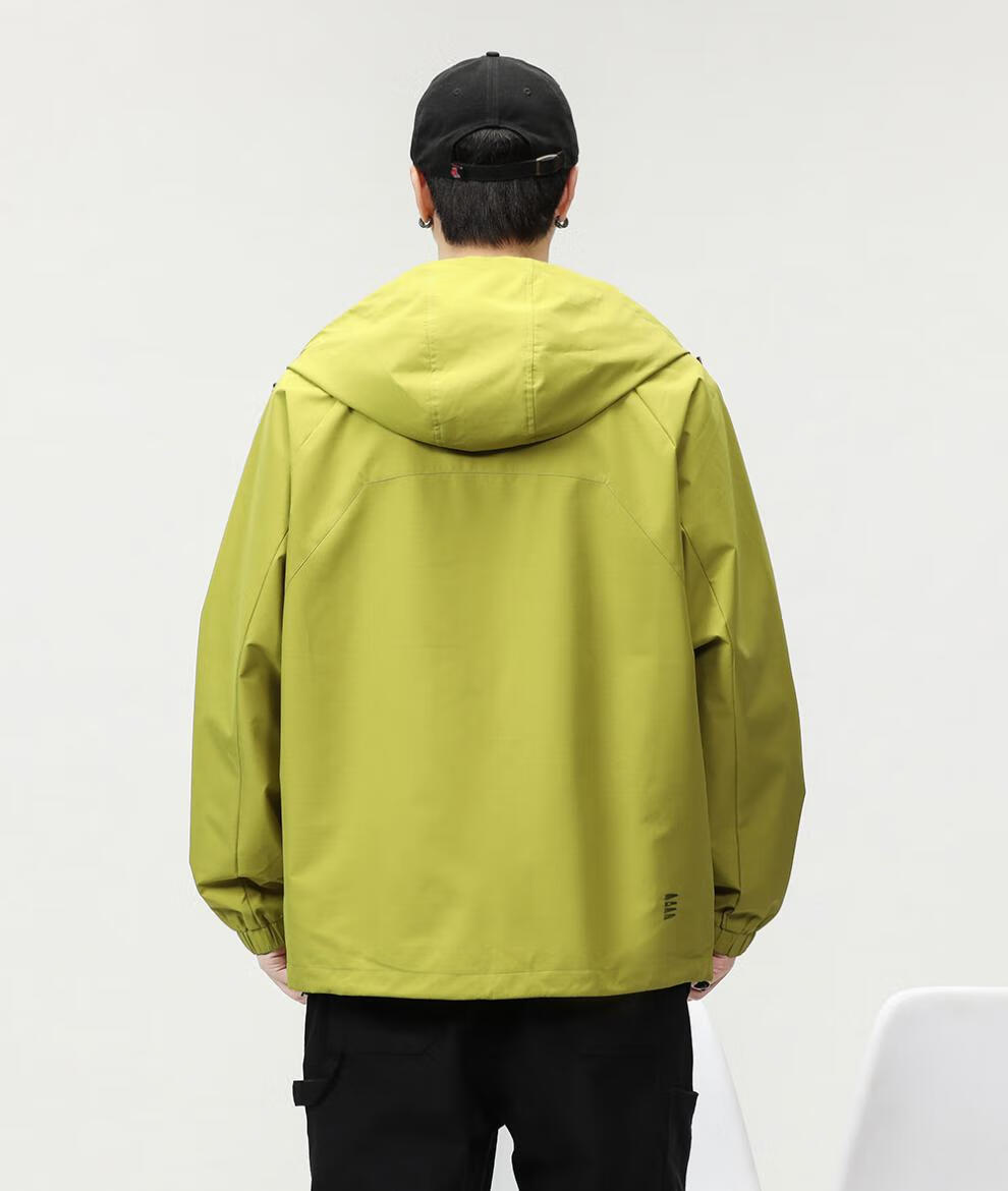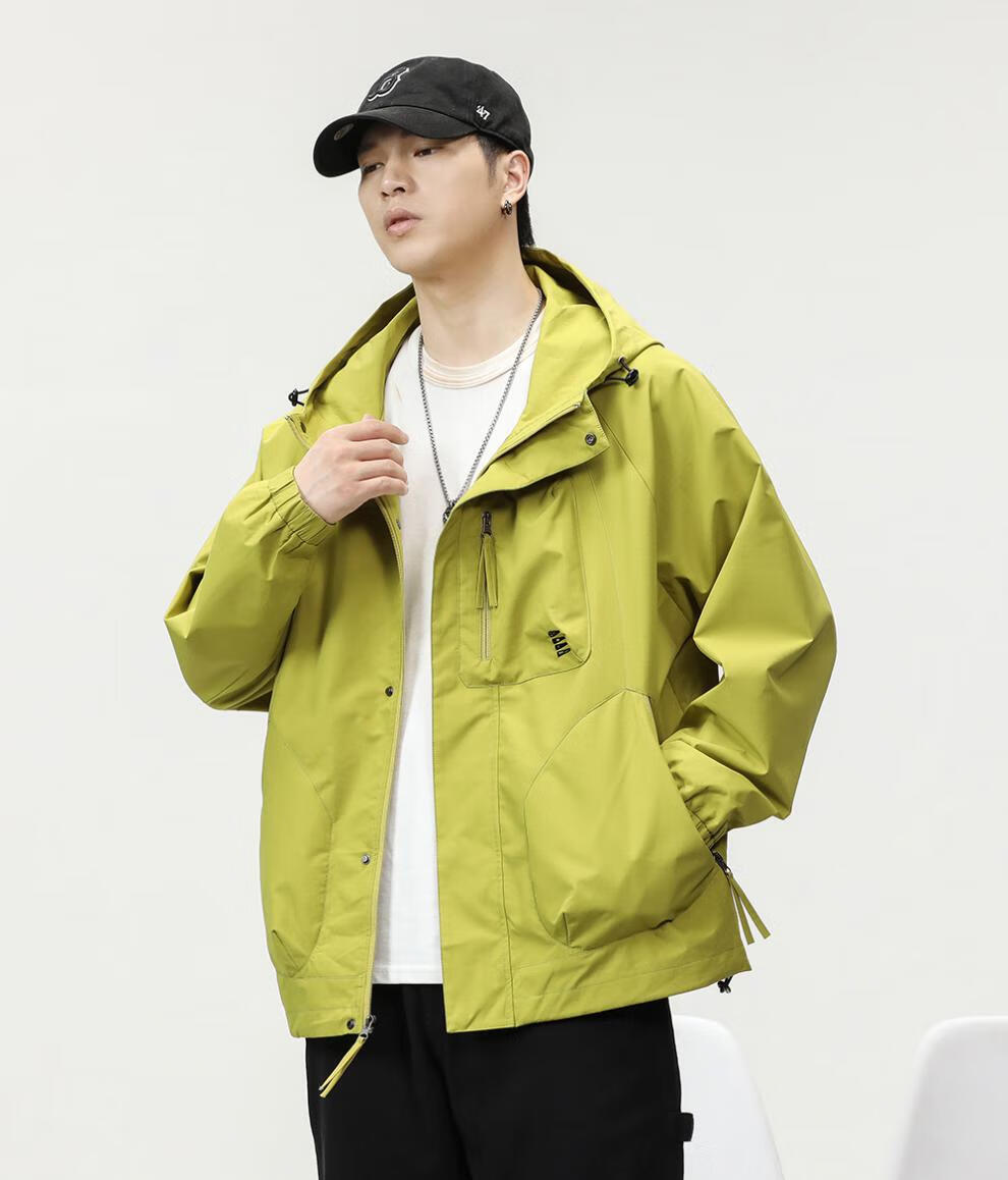 GUANGAN AEPE Hong Kong counter windproof and waterproof high-end green men's jacket hooded loose trendy brand design outer jacket fluorescent green L 125-140Jin Jin equals 0.5 kg