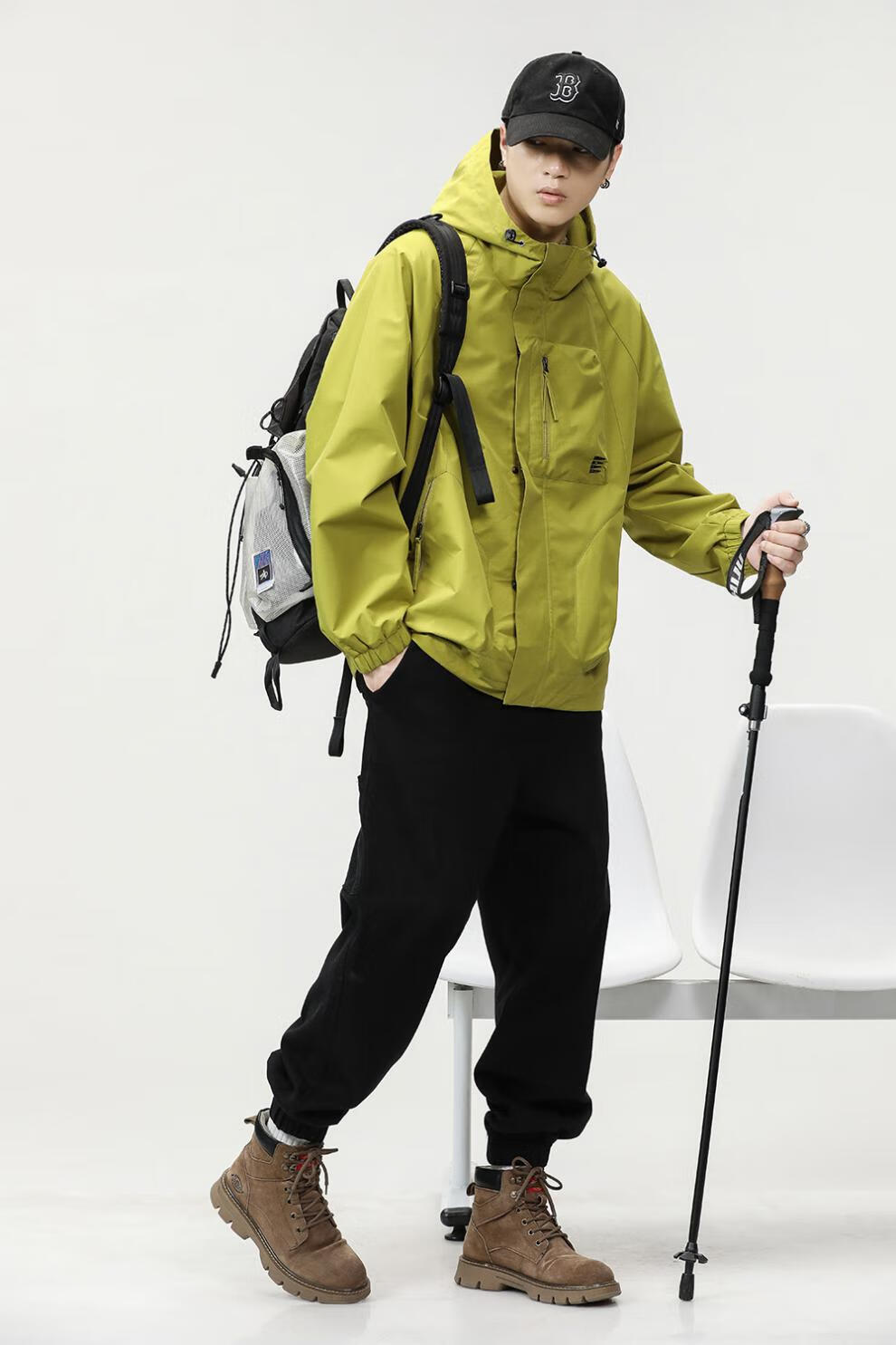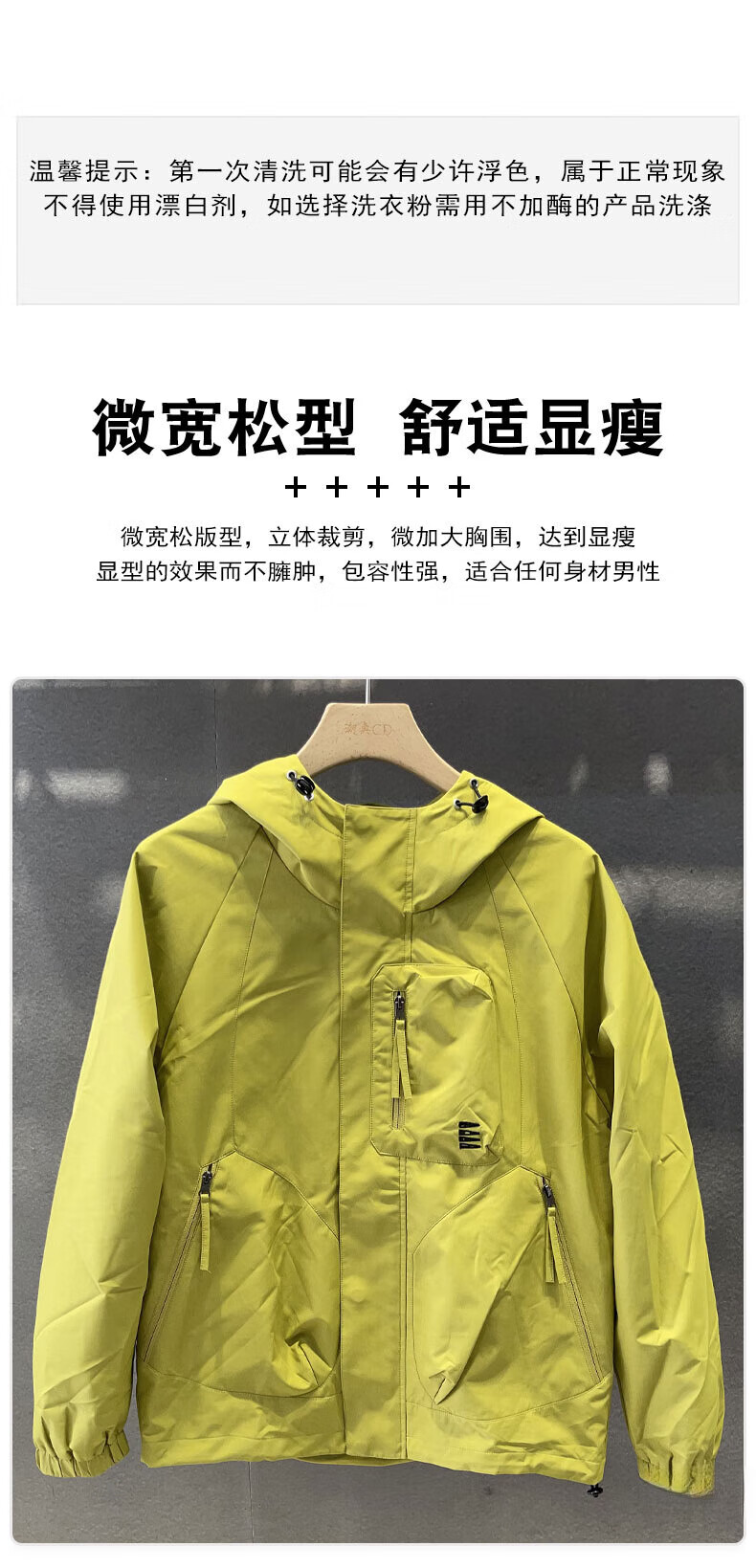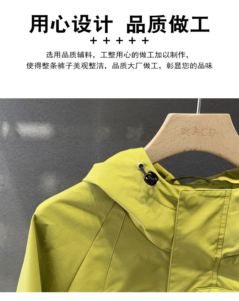 GUANGAN AEPE Hong Kong counter windproof and waterproof high-end green men's jacket hooded loose trendy brand design outer jacket fluorescent green L 125-140Jin Jin equals 0.5 kg