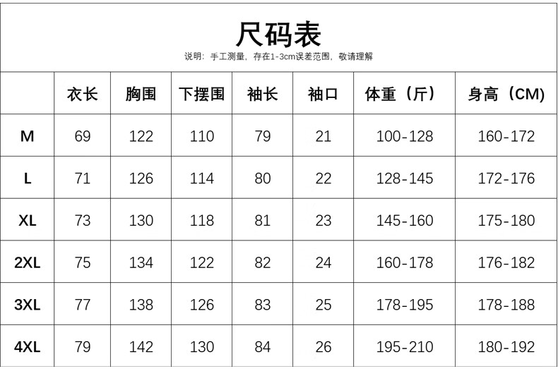 China (cm) 160-165/84-86 165-170 / 88-90 167-172 / 92-96 168-173 / 98-102 170-176 / 106-110