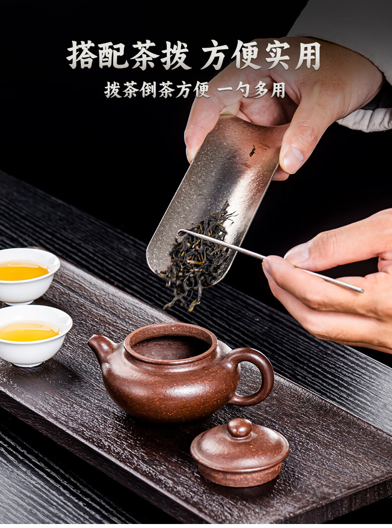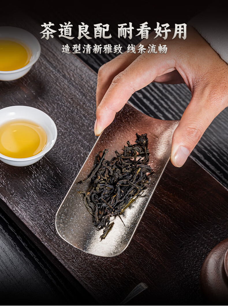 Rongshantang pure titanium tea tea spoon tea spoon tea lotus tea divider tea waker tea ceremony six gentlemen tea accessories pure titanium ice crystal tea two-piece set - Pingchuan silver style
