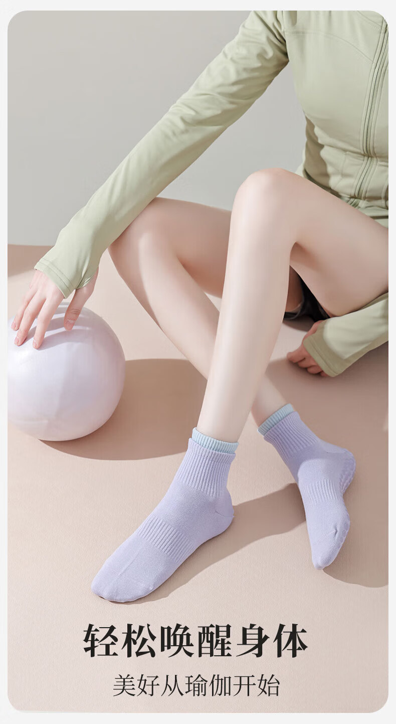 Duwek yoga socks women's summer mid-calf socks professional fitness Pilates sports non-slip stockings spring and autumn multi-color-3 pairs