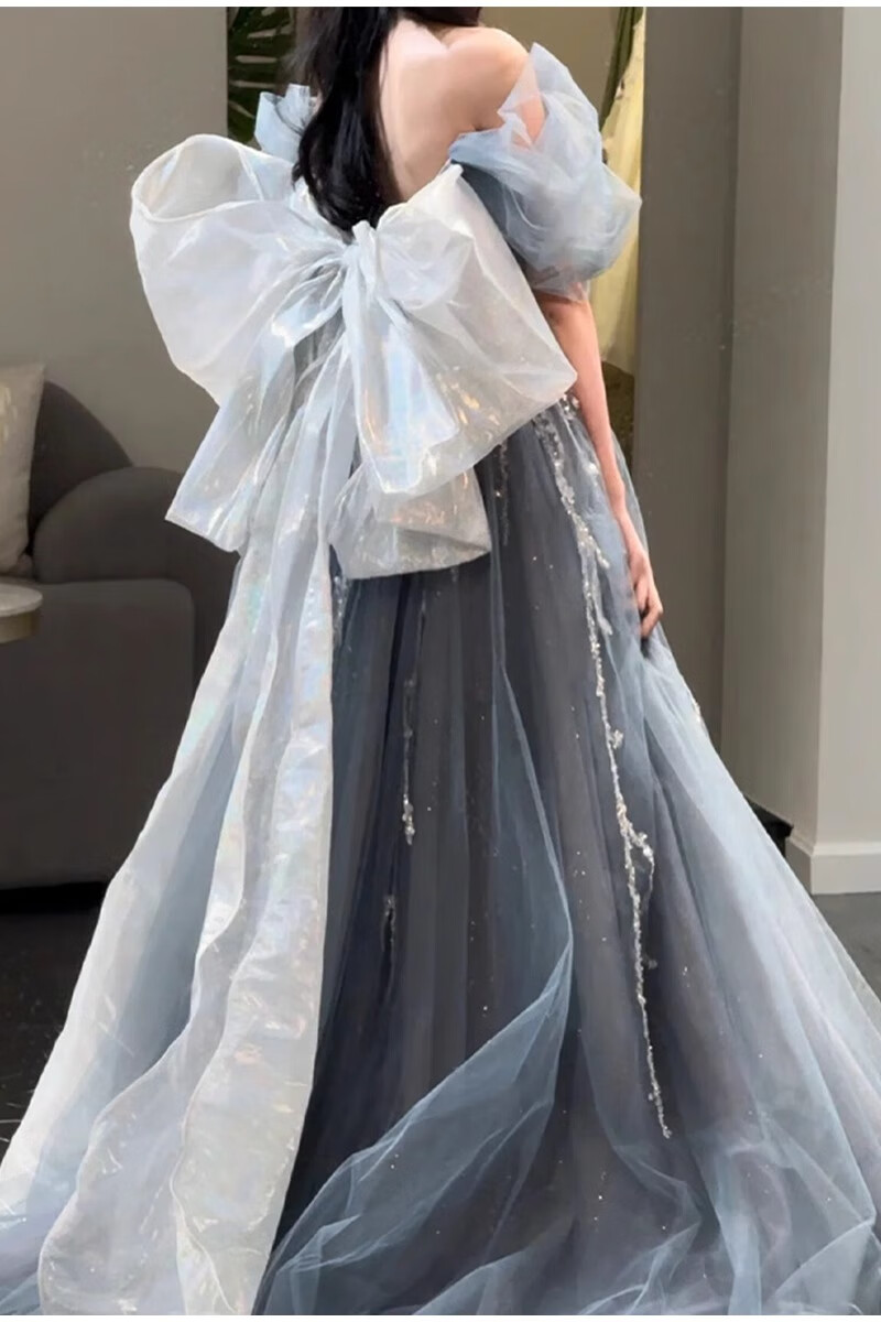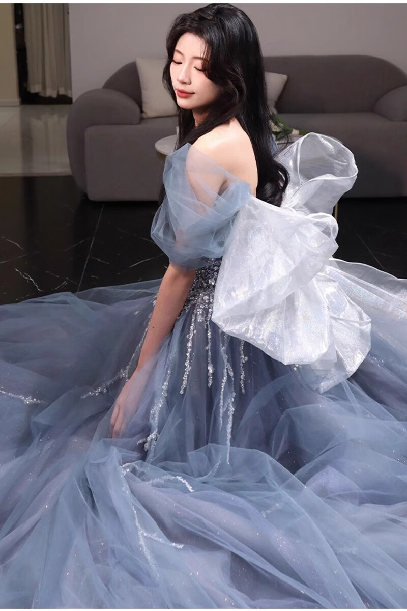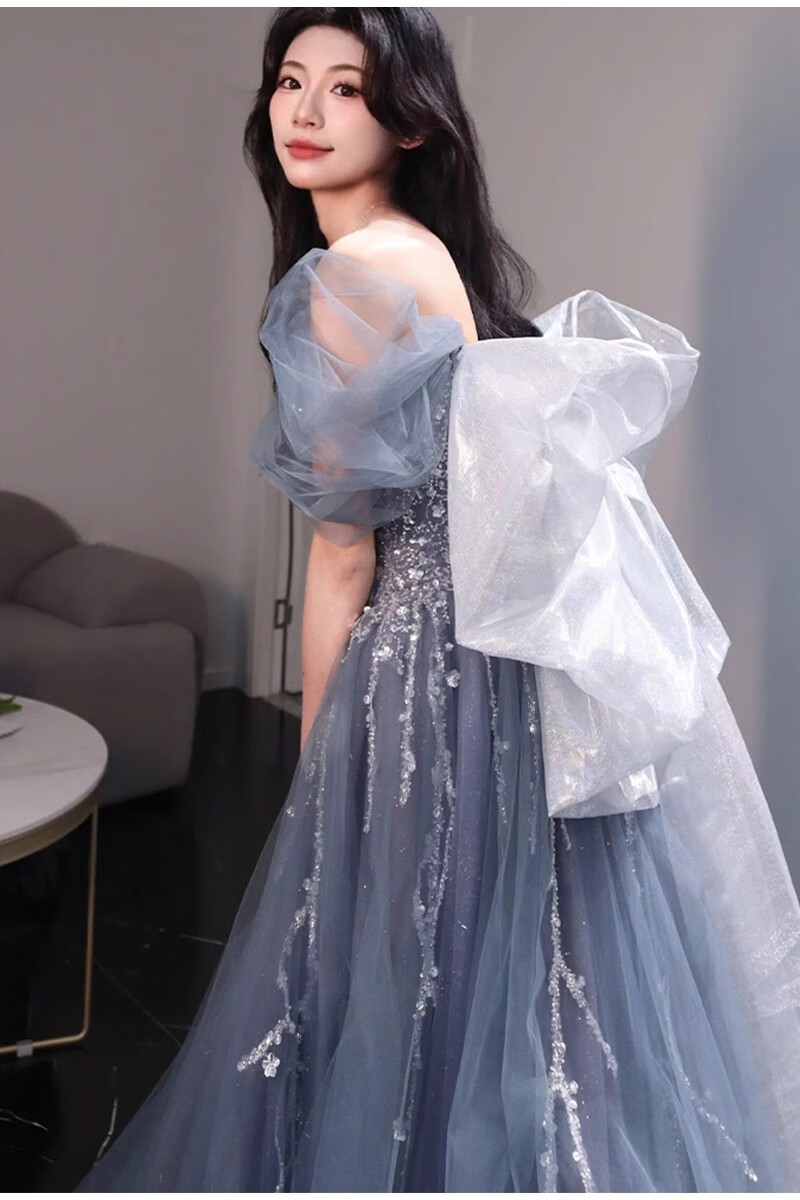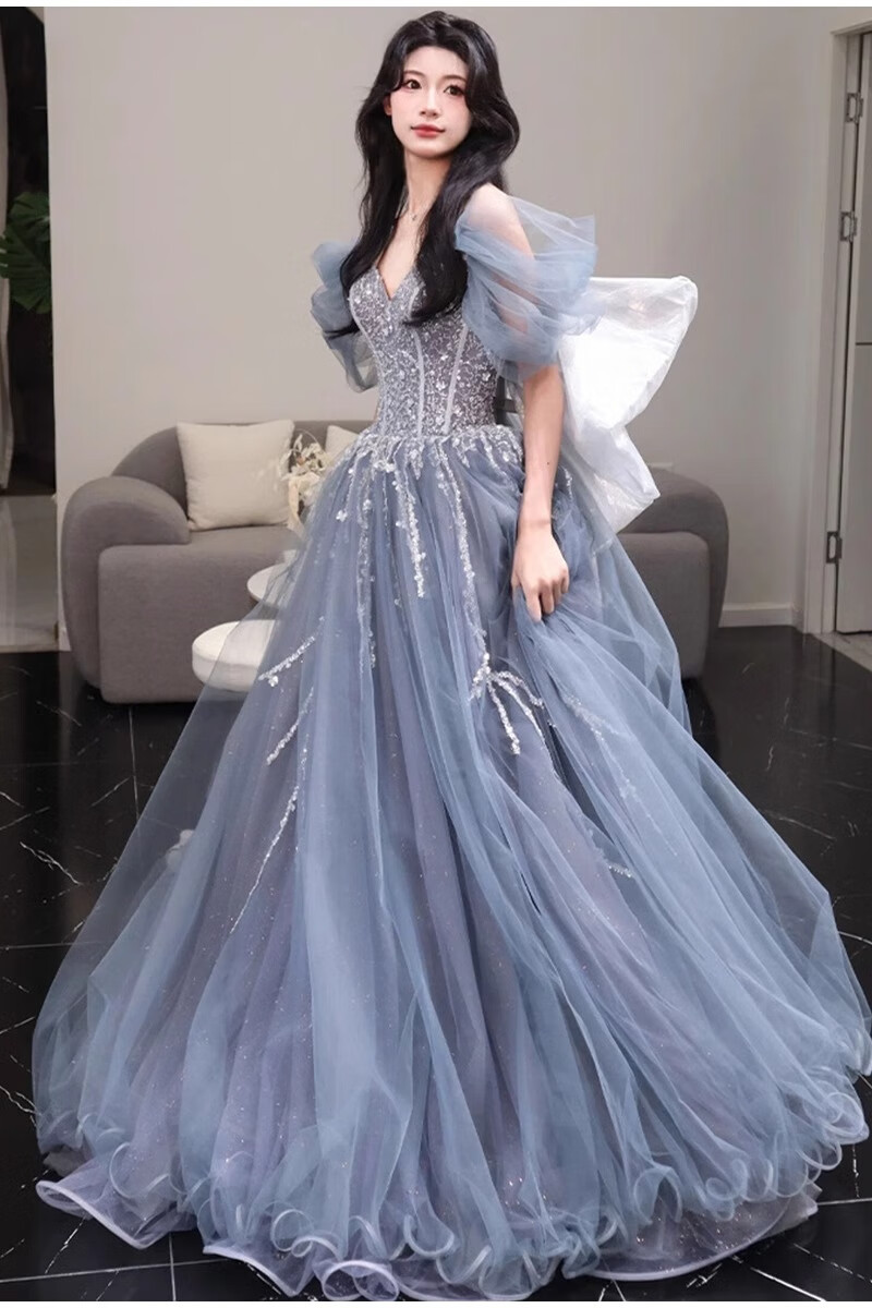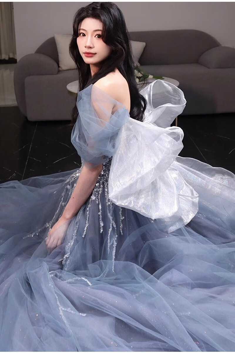 Chuang Jingyi chooses the Vocal Arts Examination Dress for Women Evening Dress for Women with High Sensibility and Temperament French Adult Ceremony Light Host Vocal Arts Examination Girls Blue XS