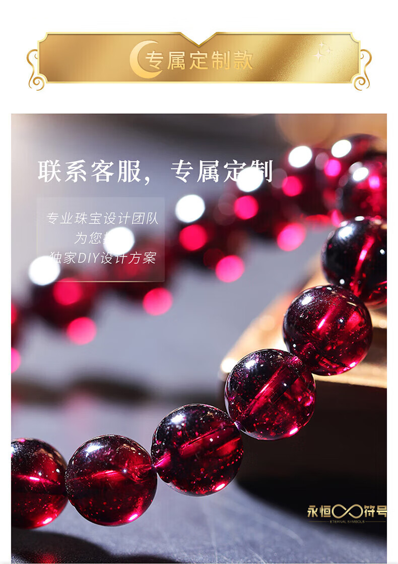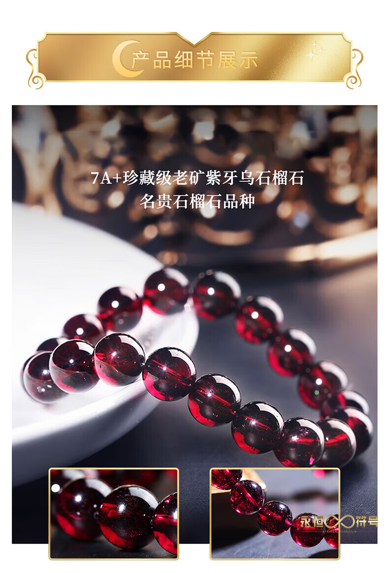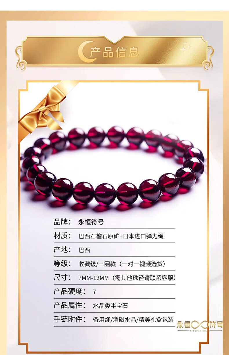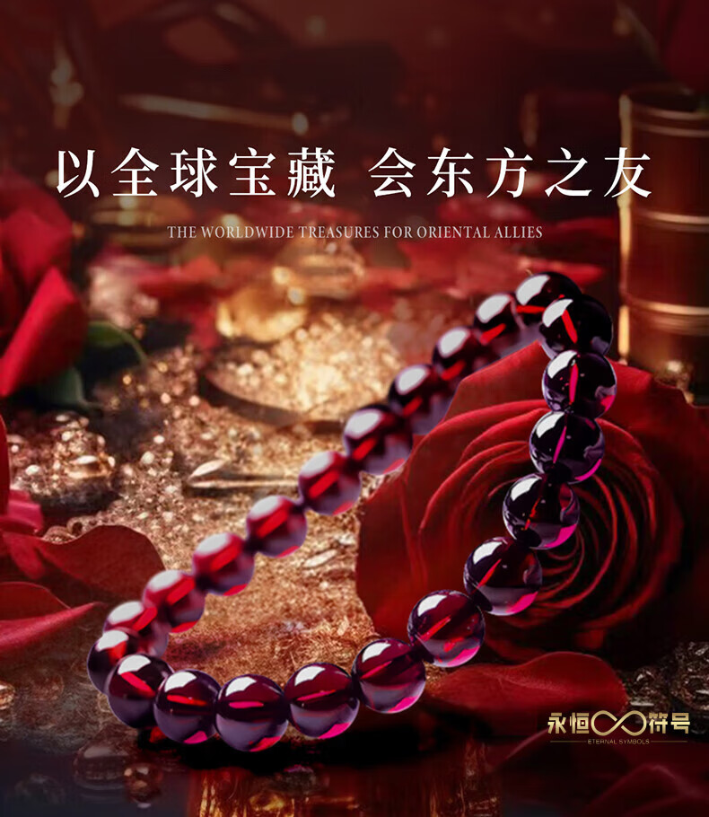 Eternal symbol natural garnet bracelet for women, purple tooth black crystal bracelet for girlfriend, gift for wife, lover in the year of birth, collection grade purple tooth black 6mm three circle style