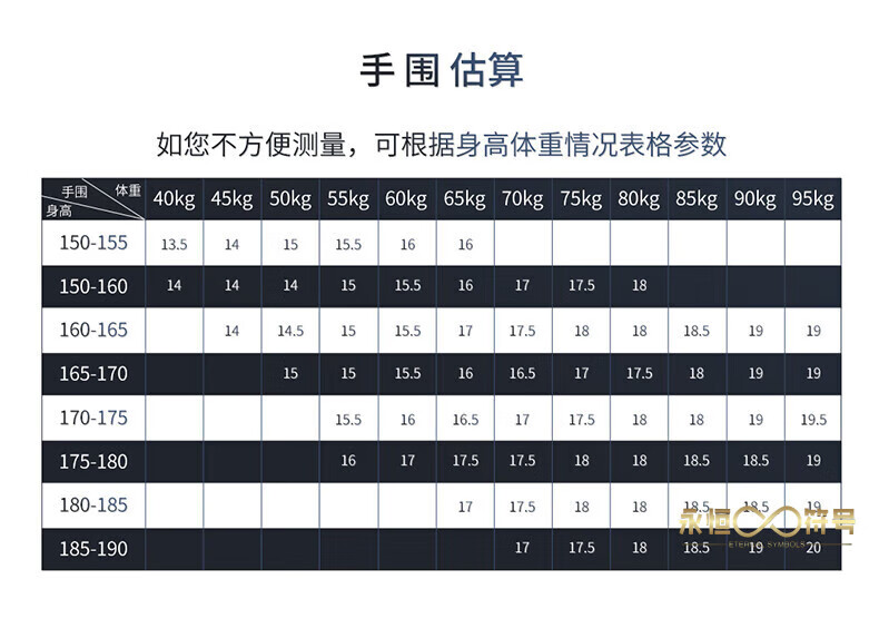 China (cm) 165 / 88-90 170 / 96-98 175 / 108-110 180 / 118-122 185 / 126-130