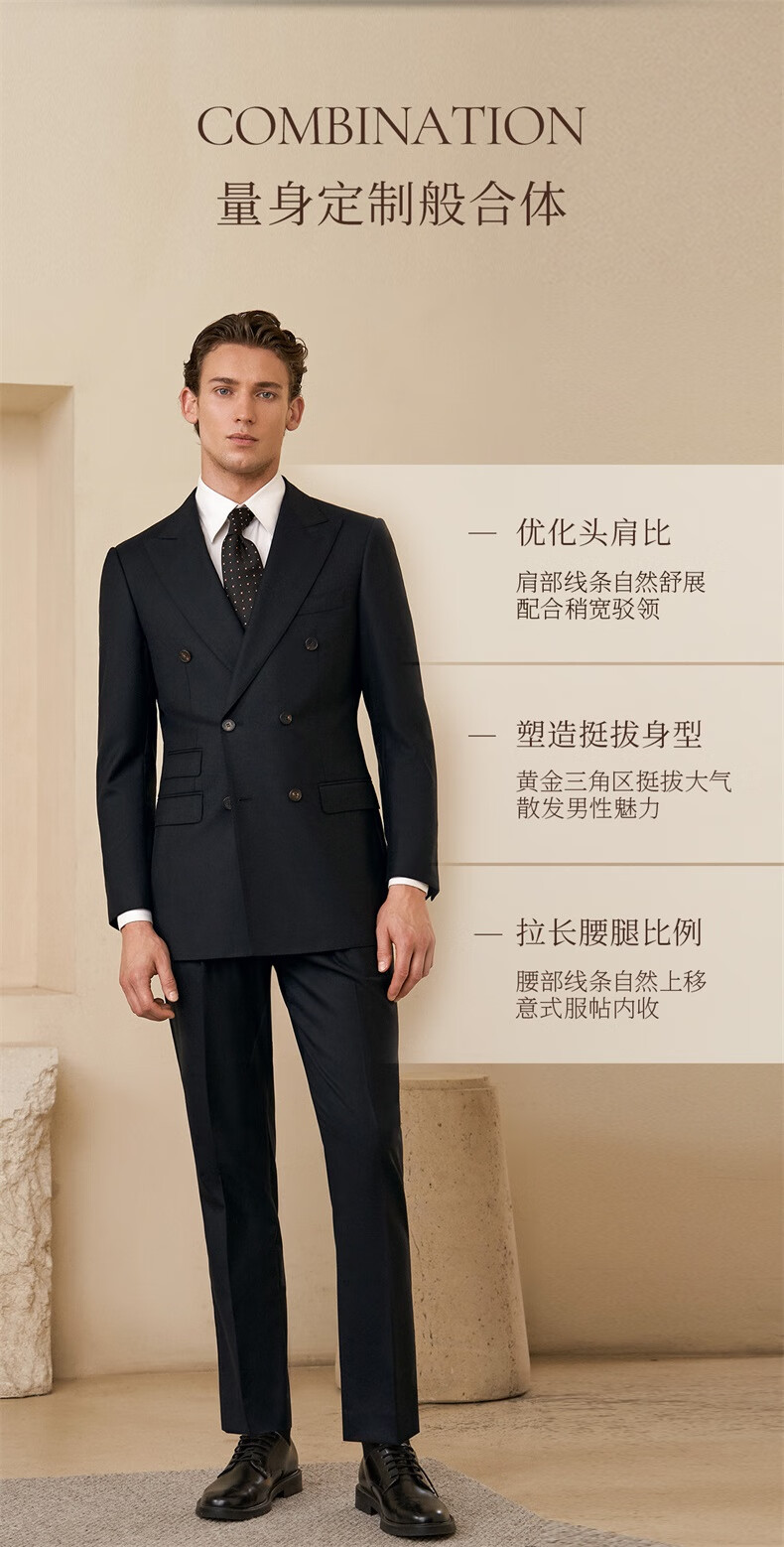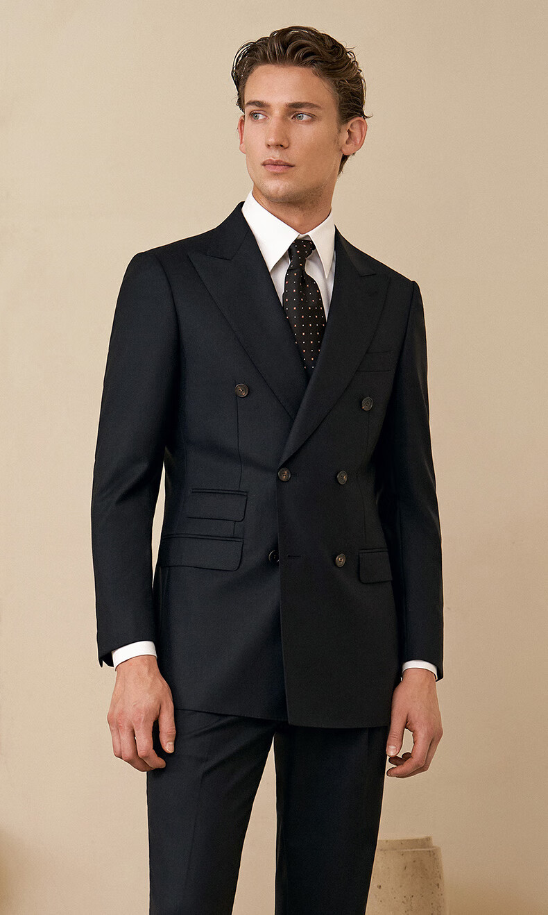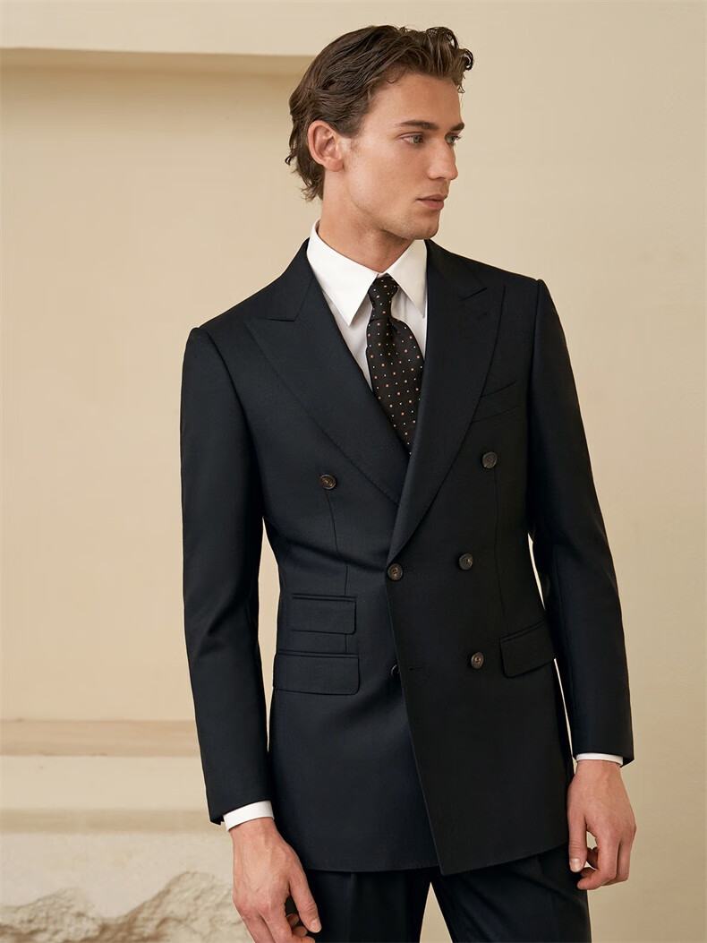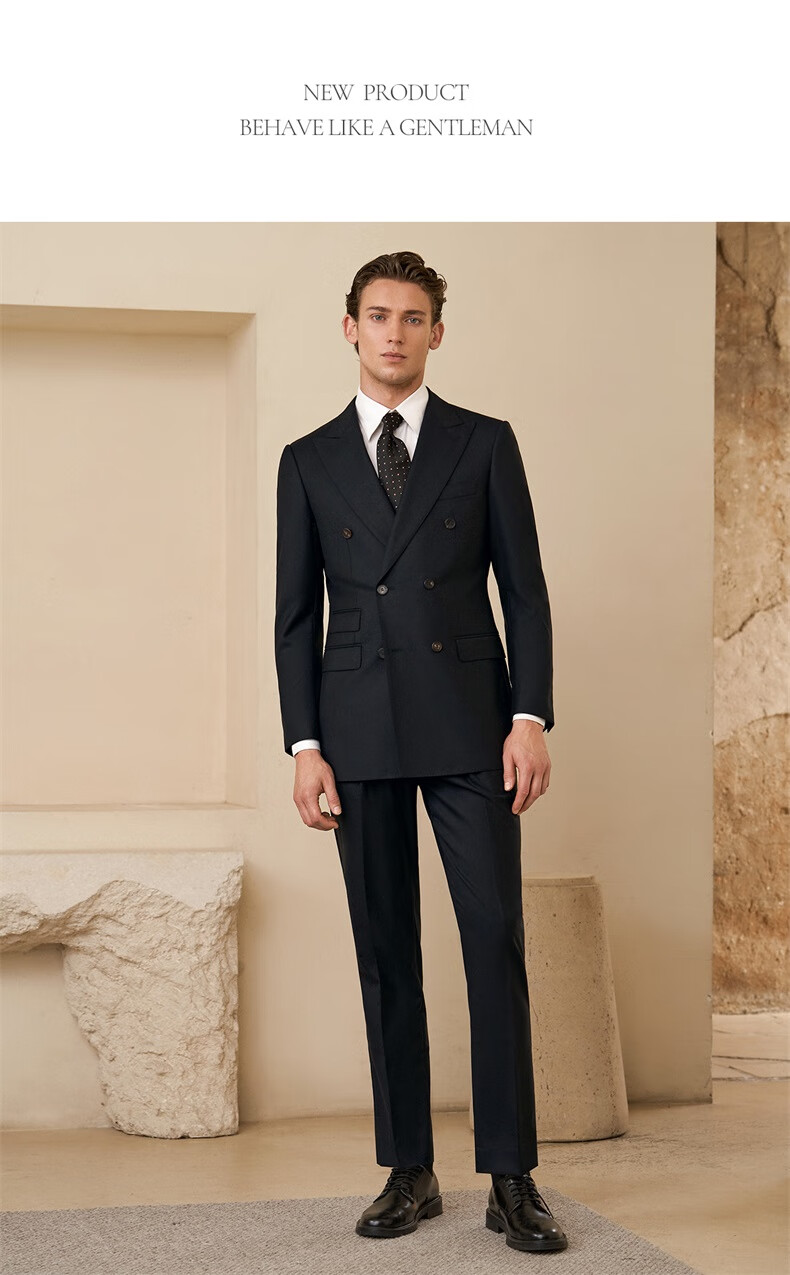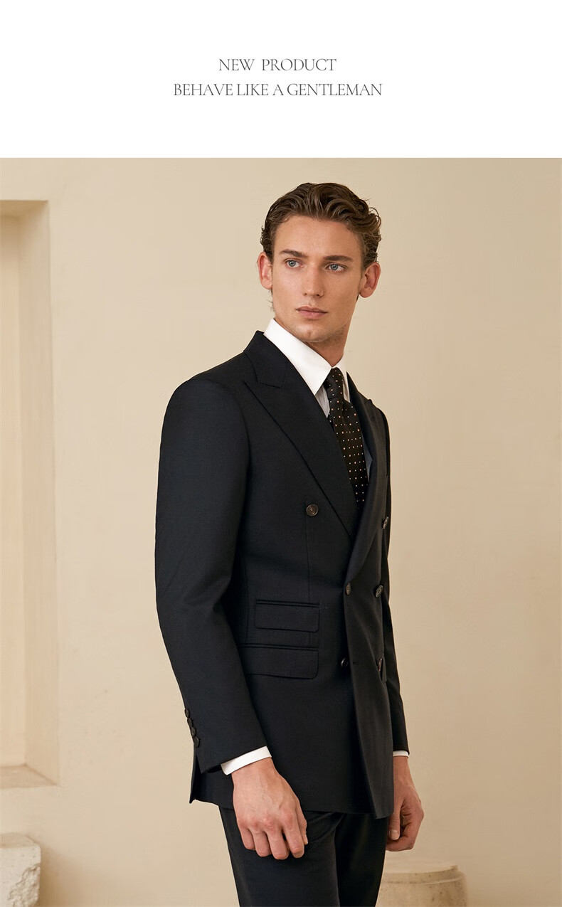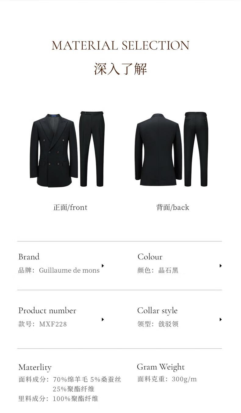 Guillaume de Mons machine washable wool suit new casual men's high-end business formal wedding men's suit crystal black top + trousers 56