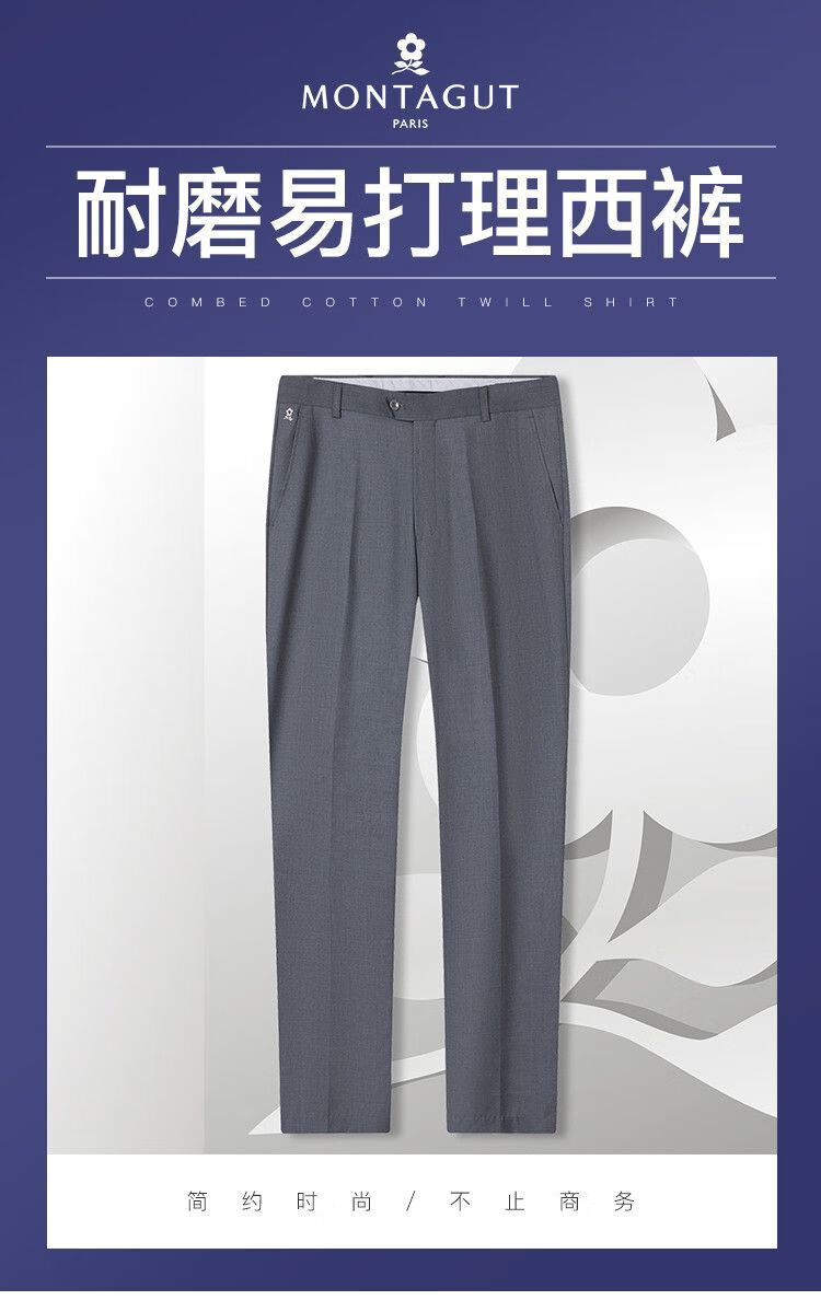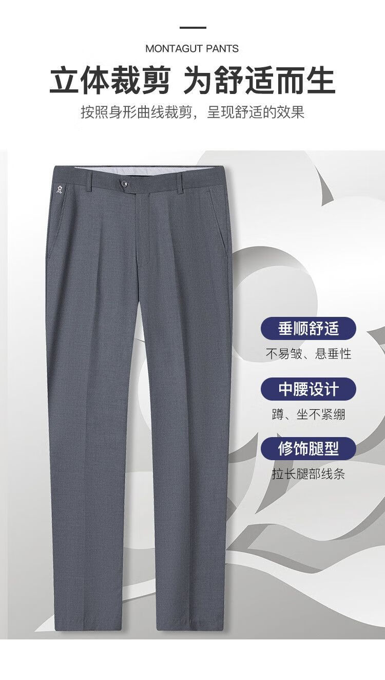 Montagut anti-wrinkle and wear-resistant trousers for middle-aged men business solid color straight formal men's trousers no ironing high-end men's trousers medium gray 30 170/76A