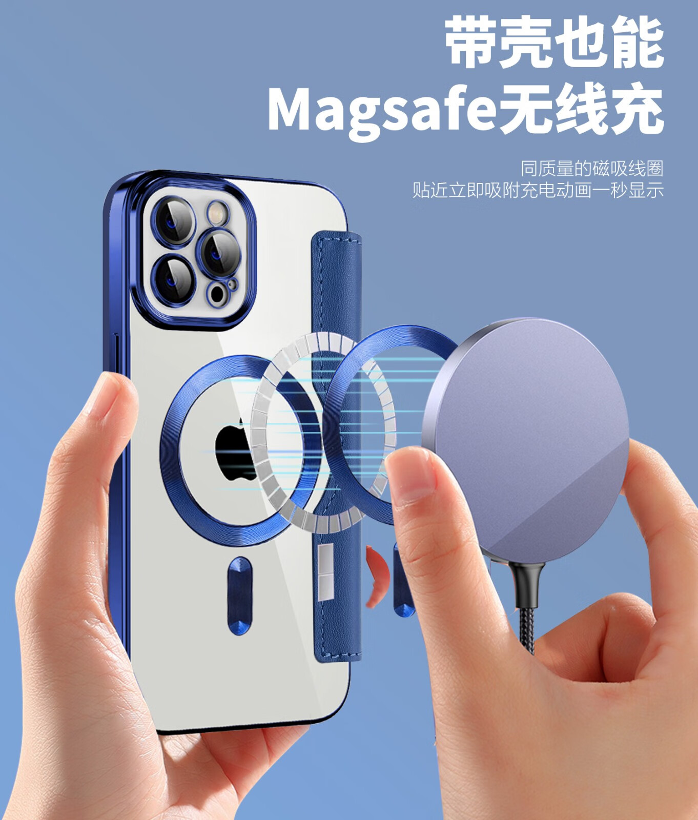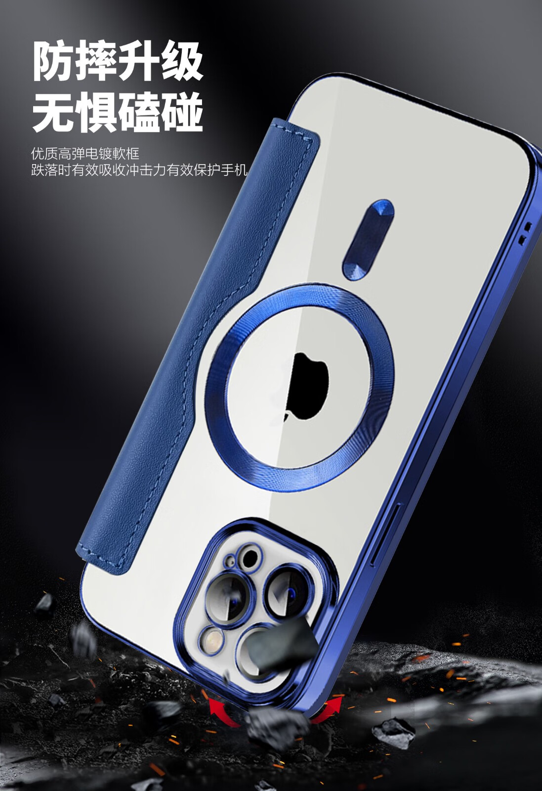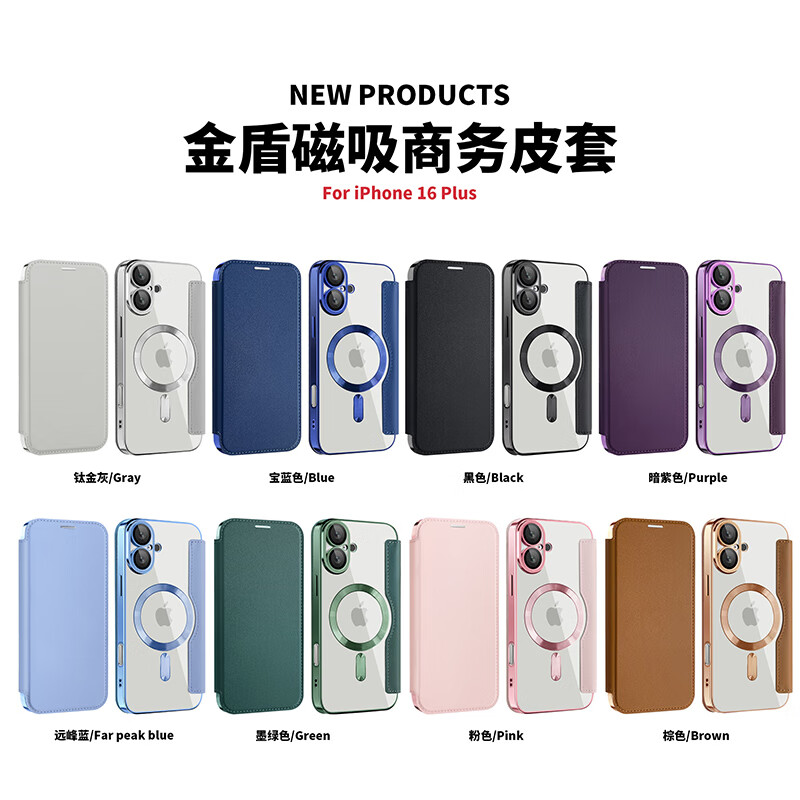 Lebeilian suitable for iPhone16 mobile phone case flip leather case Apple 16promax anti-fall magnetic gold shield business 16plus men and women new electroplating soft edge internet celebrity trendy brand Apple 16ProMax dark purple flip leather case