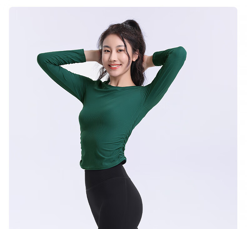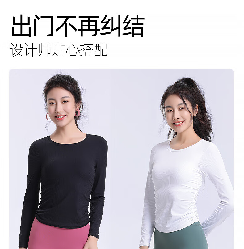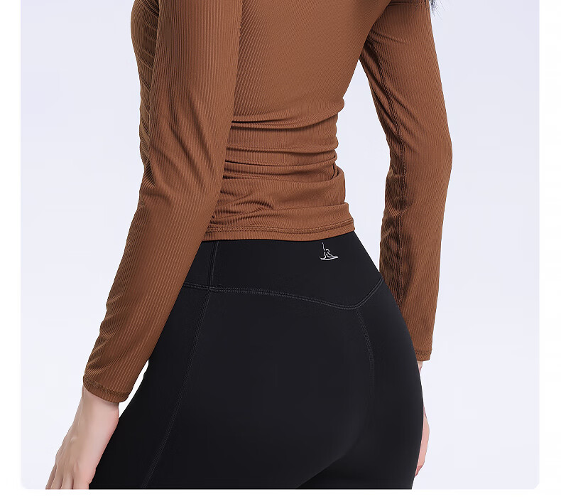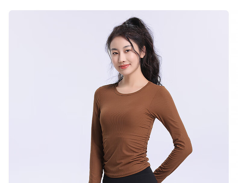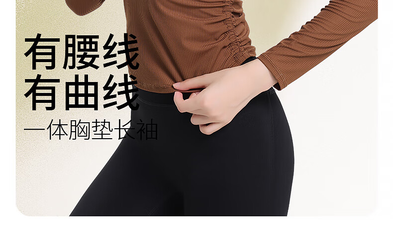 Vanmei Yoga Wear Integrated Chest Pad Pilates Training Wear Long Sleeve Threaded Running T-Shirt Fitness Sports Top Yuhui Brown/Integrated Chest Pad 2XL