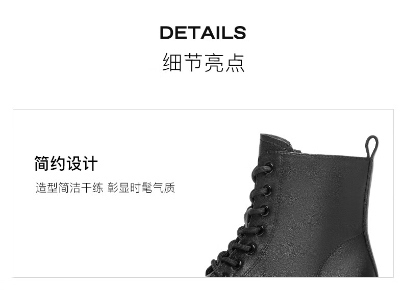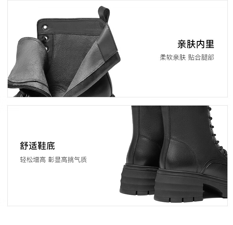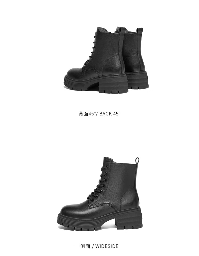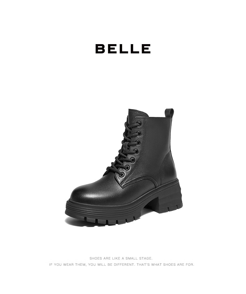 Belle Sheepskin Thick-Soled Martin Boots Women's Shopping Mall Outdoor Short Boots 3N140DD4 Off the Shelf Black - Single Liner 39 (245mm)