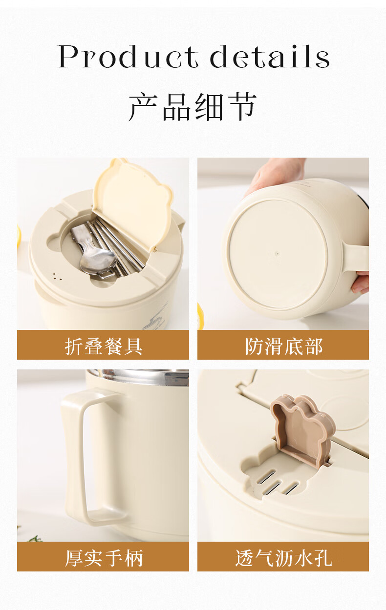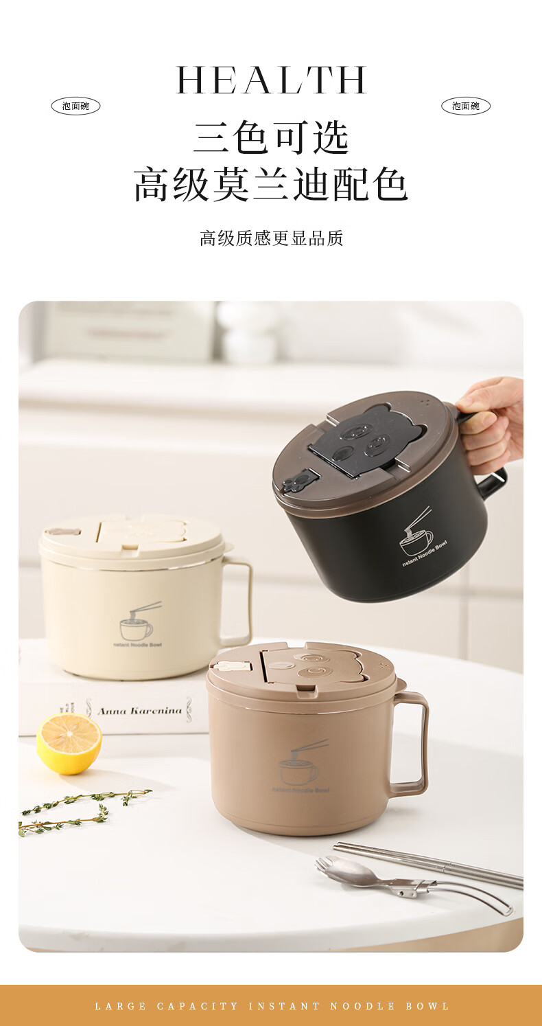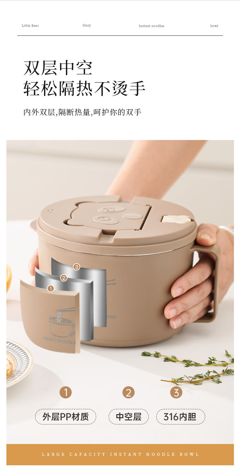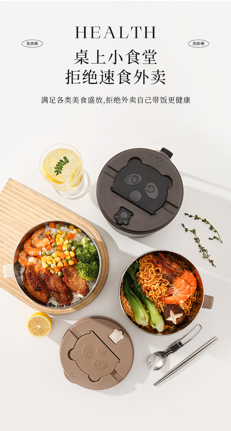 ABDT instant noodle bowl for dormitory students with lid Japanese-style 316 stainless steel thermal insulation large capacity canteen instant noodle artifact milky white food grade 304 1600ML+ tableware
