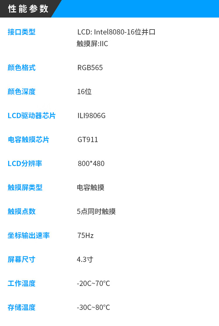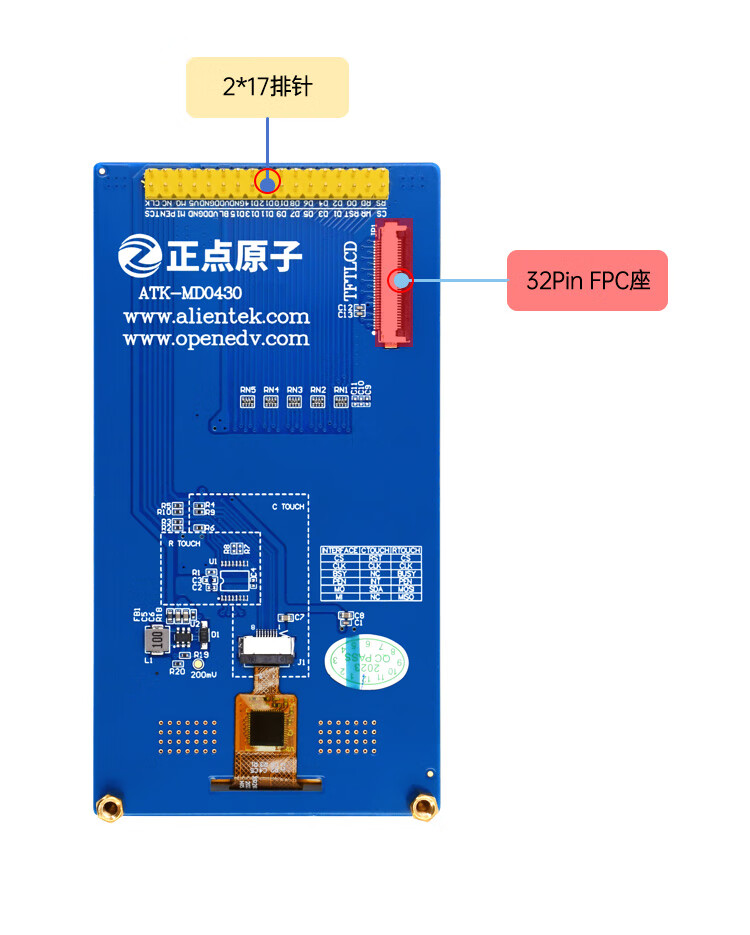 MCU screen 800*480 Punctual Atom 4.3-inch TFT LCD module capacitive touch LCD display 4.3-inch capacitive screen 800 + 32P FPC cable