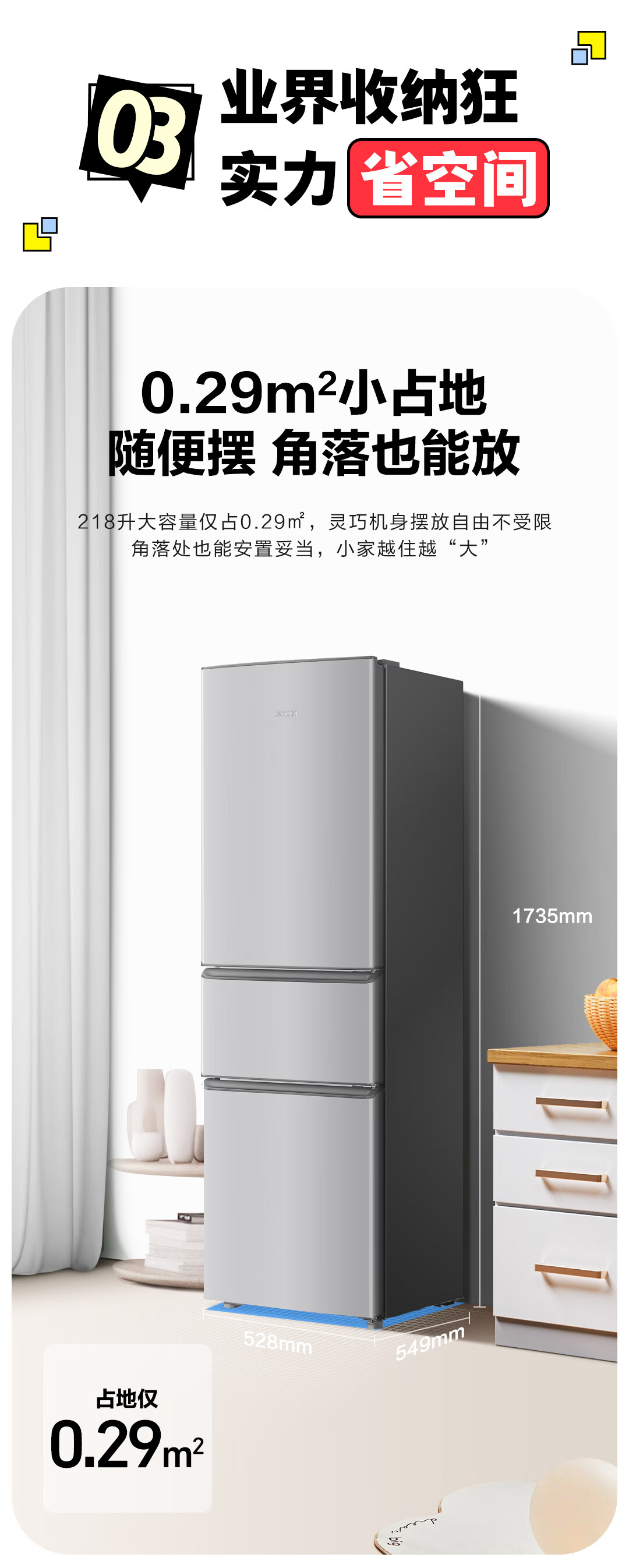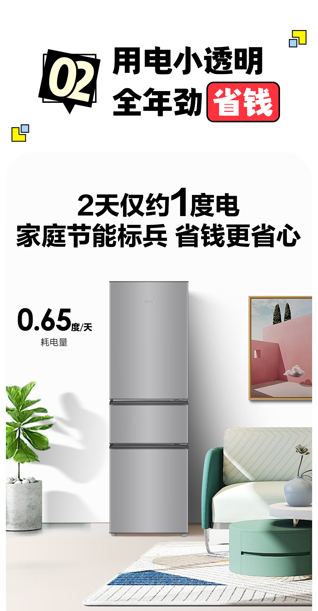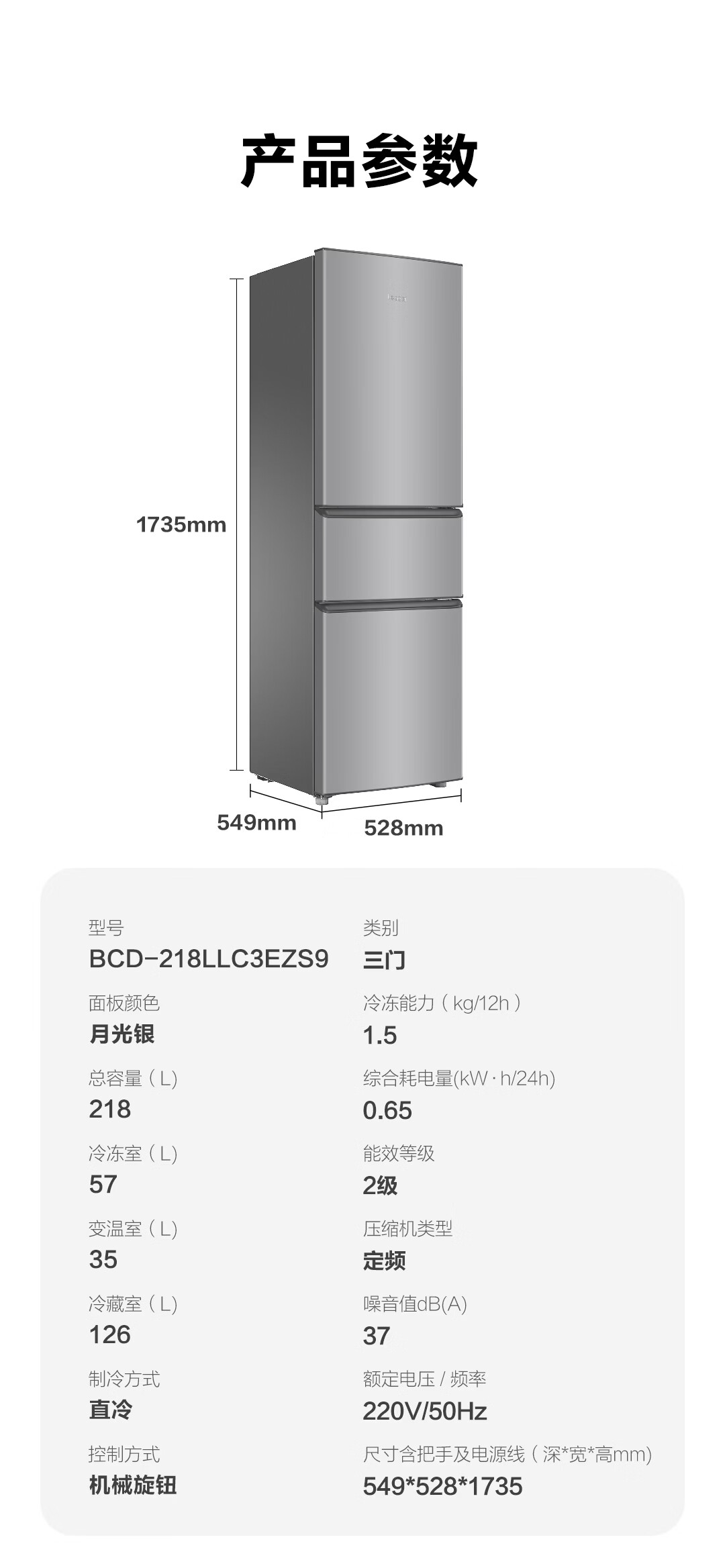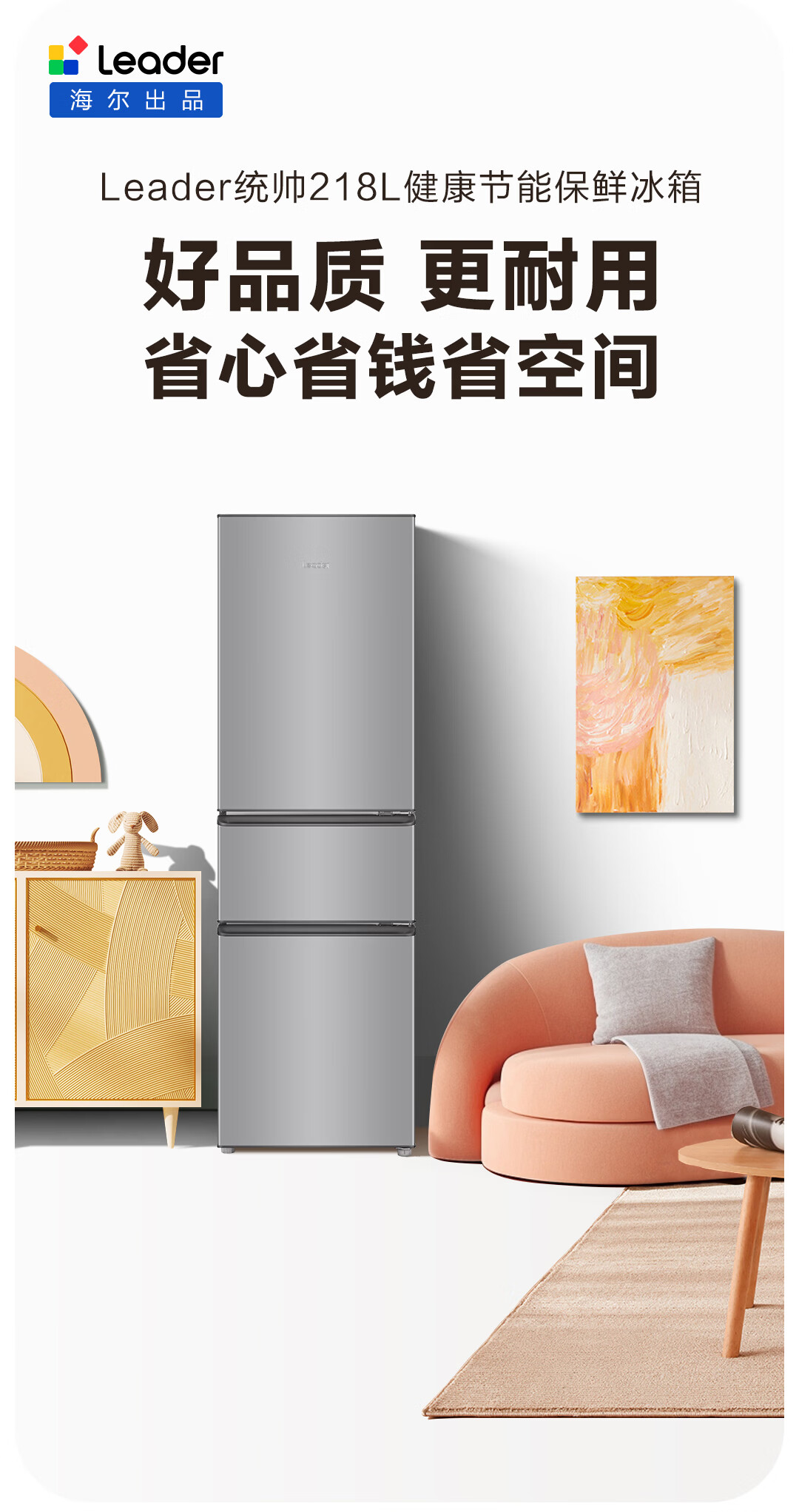 Leader Haier Refrigerator produces Yuexiang series 218L three-door small refrigerator, energy-saving, low-noise, soft-frozen and fresh-locking BCD-218LLC3EZS9 BCD-218LLC3EZS9