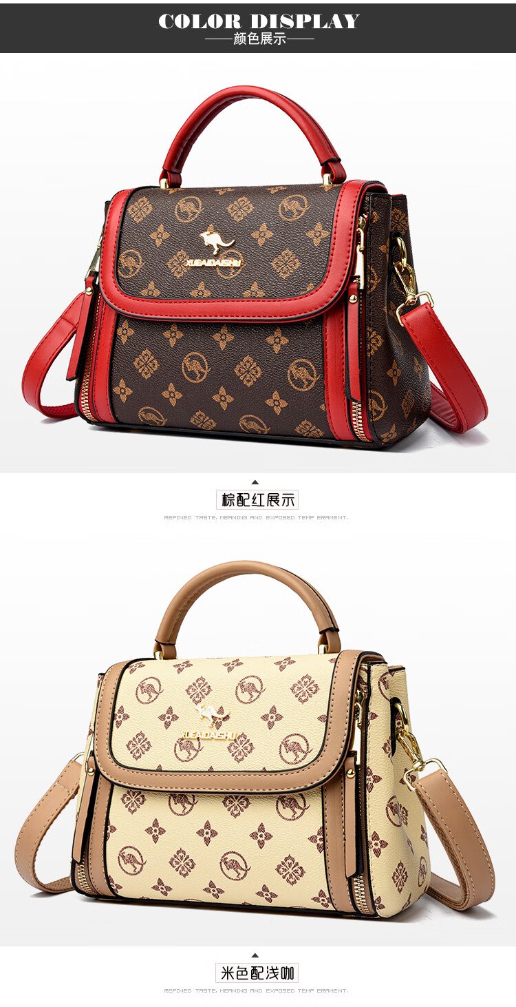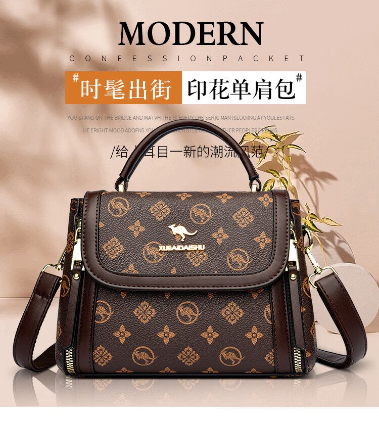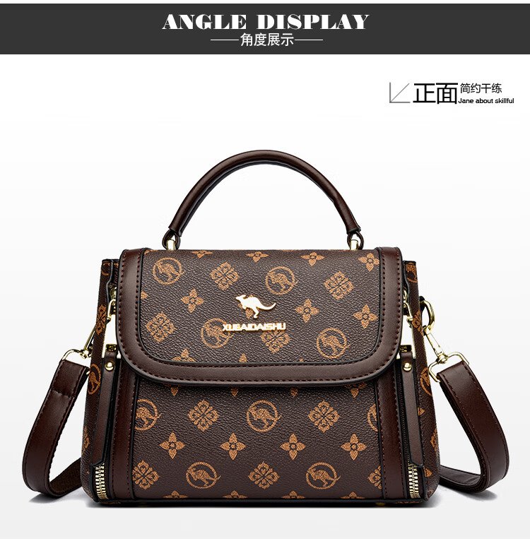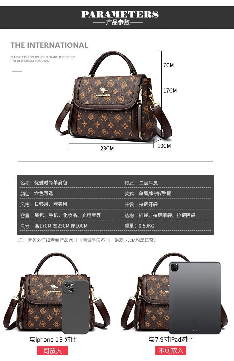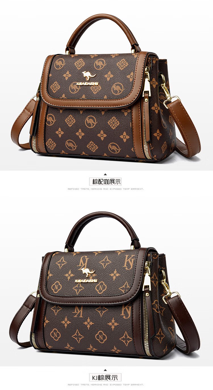 Snow Love Kangaroo high-end brand genuine leather women's crossbody bag 2025 new high-end shoulder bag small bag gift for mother and mother brown with brown gift box + gift bag + hand bag card bag