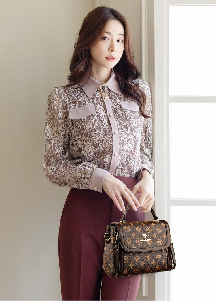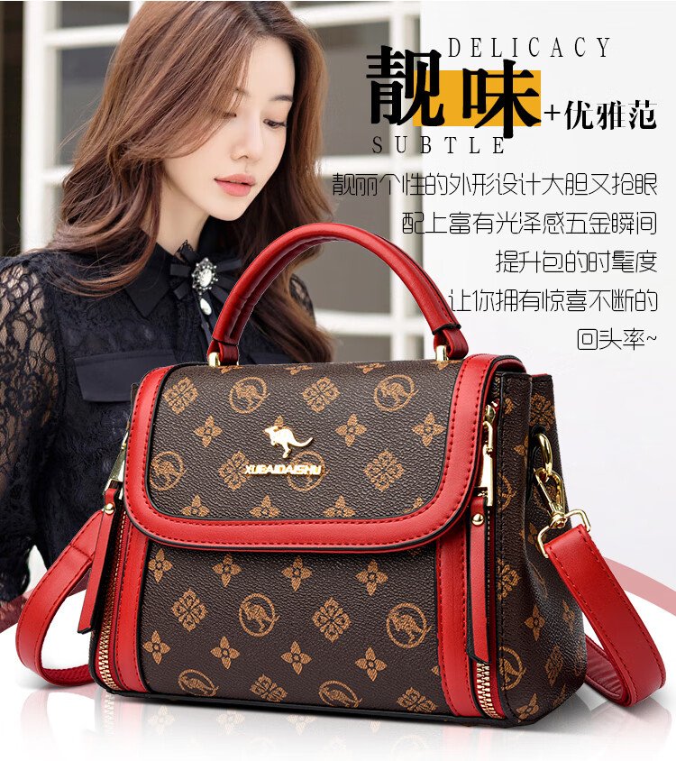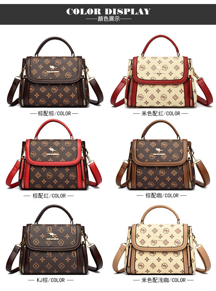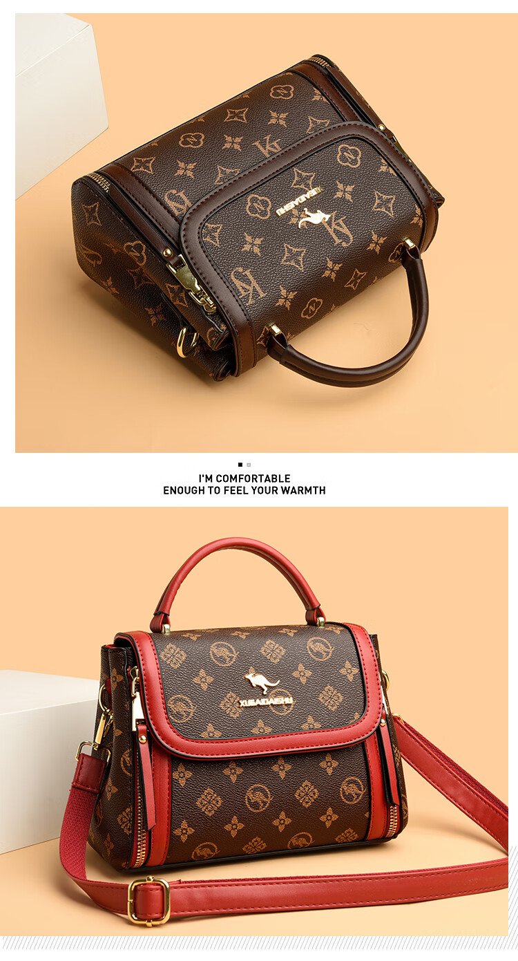 Snow Love Kangaroo high-end brand genuine leather women's crossbody bag 2025 new high-end shoulder bag small bag gift for mother and mother brown with brown gift box + gift bag + hand bag card bag