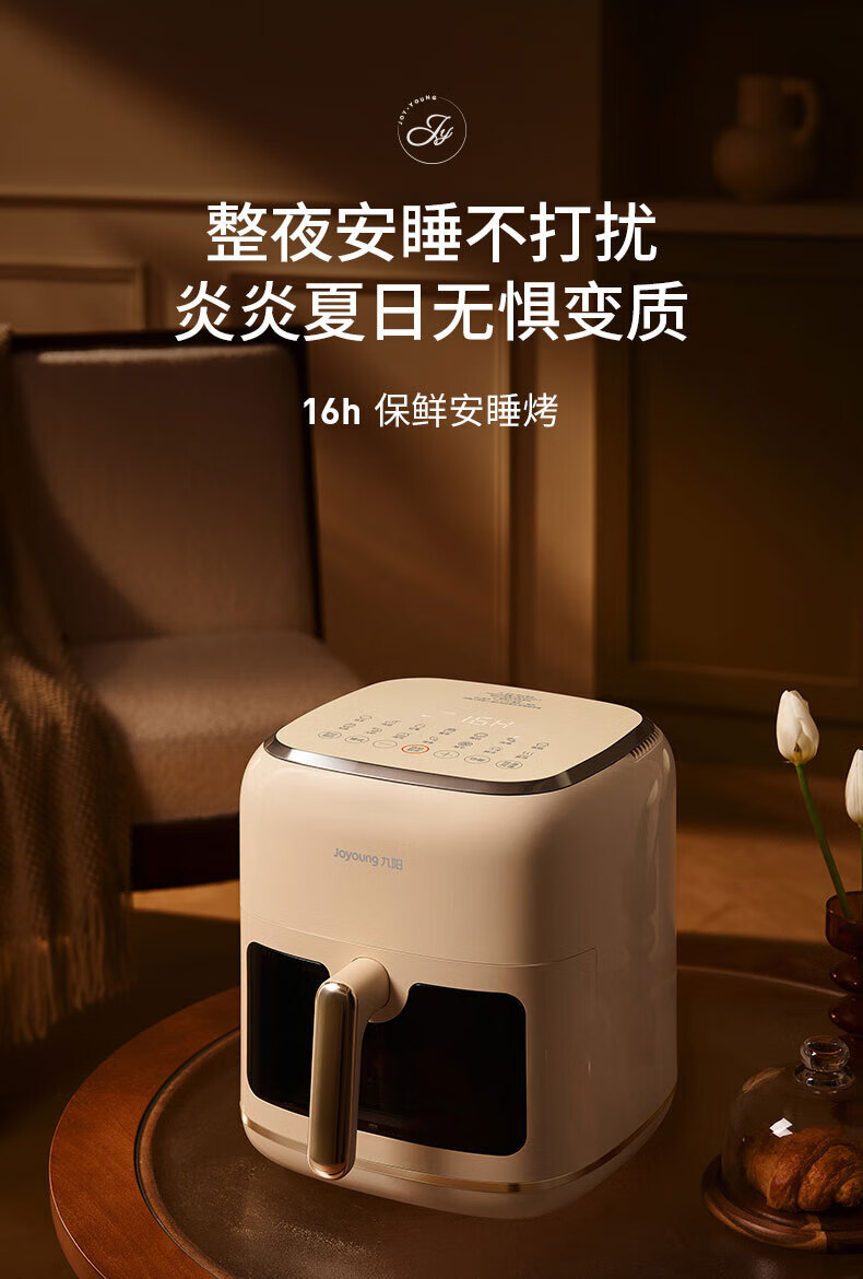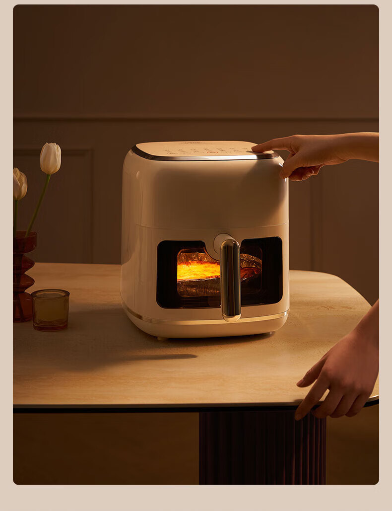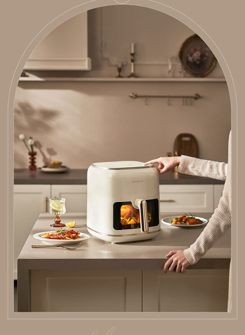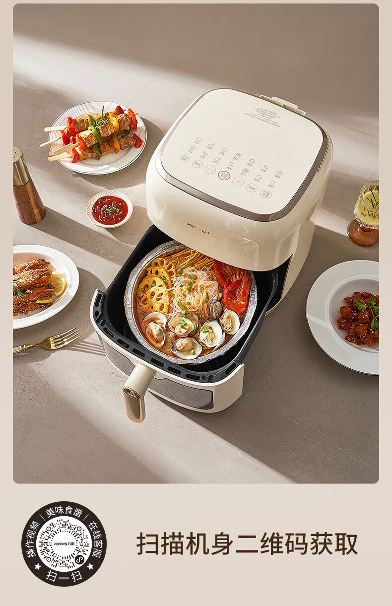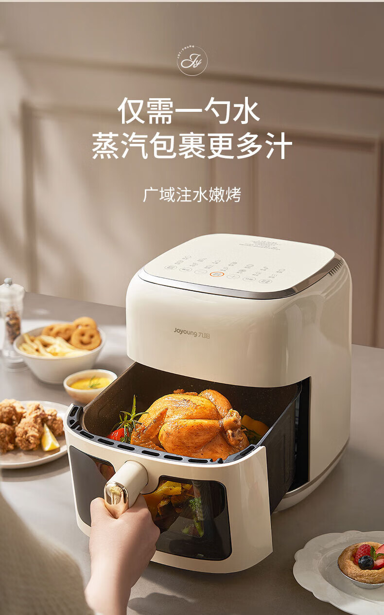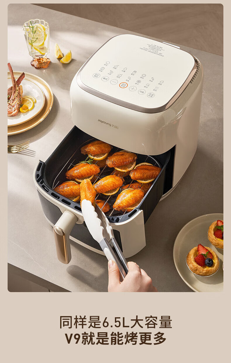 Joyoung Skim Air Fryer No need to turn over 6.5L large capacity One-button smart touch Ultra-thin visible metal inner cavity Steam tender frying Oil-free frying V9 6.5L