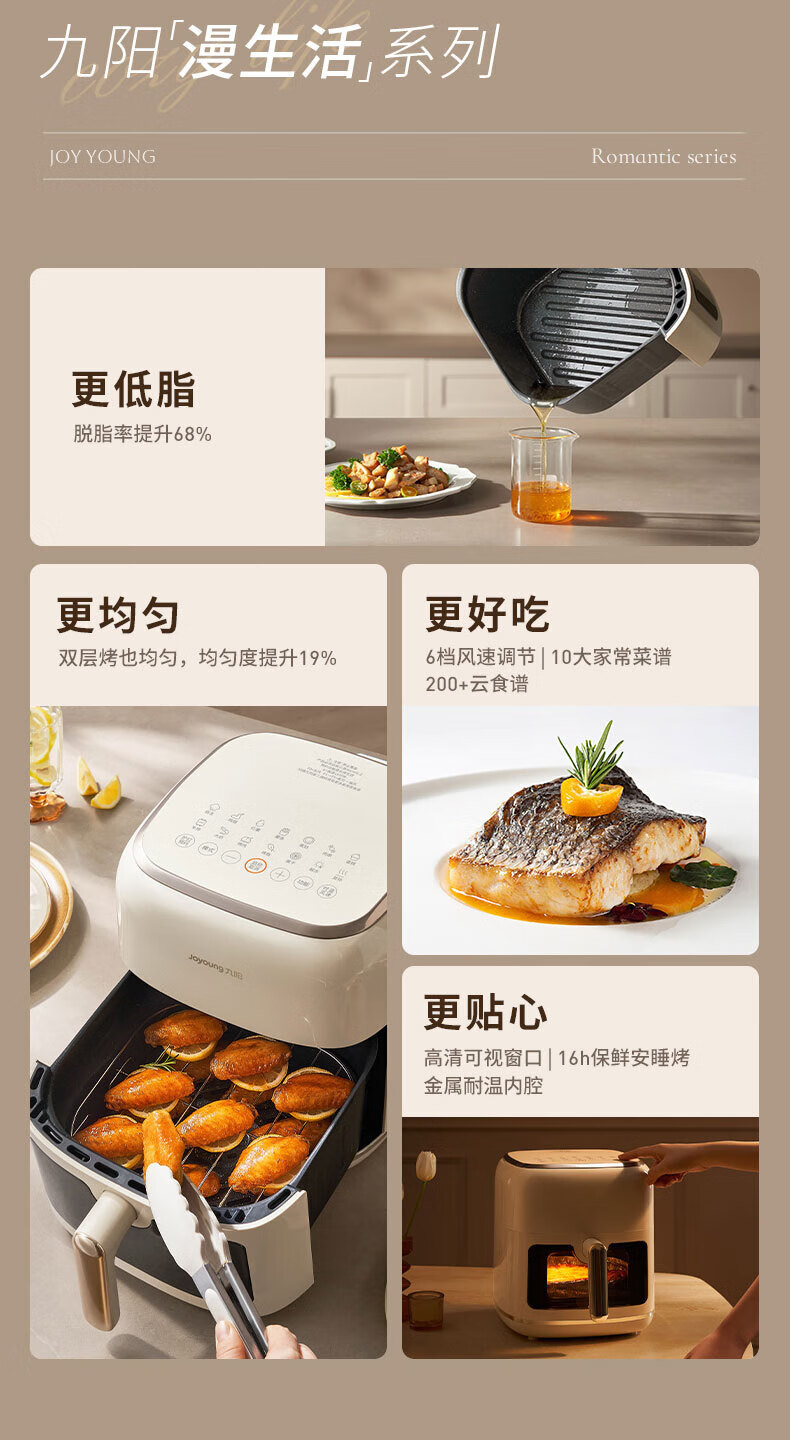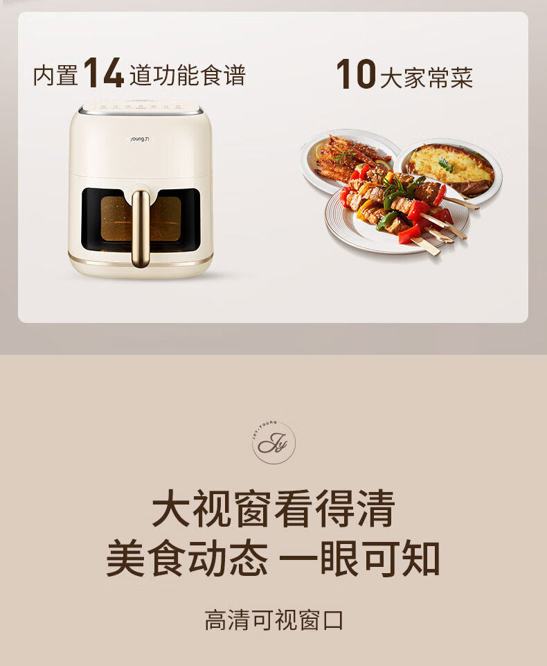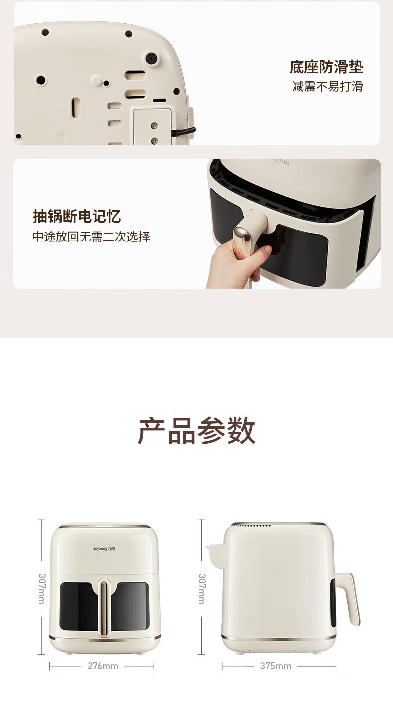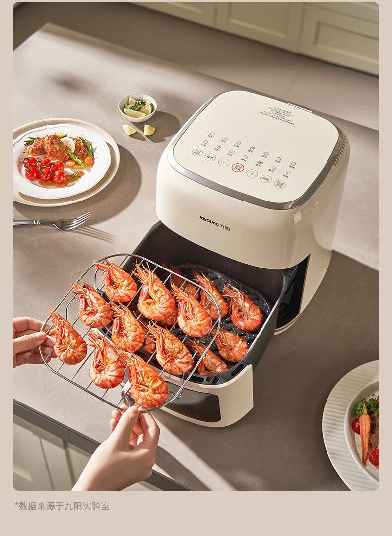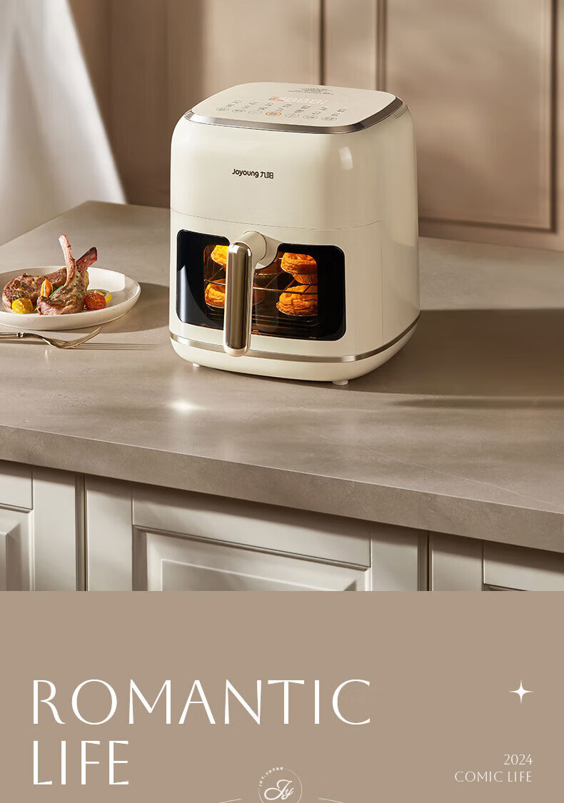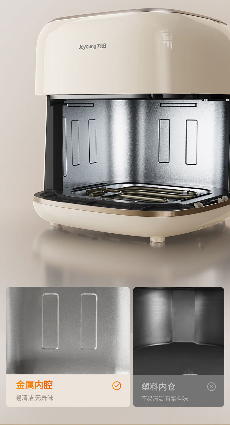 Joyoung Skim Air Fryer No need to turn over 6.5L large capacity One-button smart touch Ultra-thin visible metal inner cavity Steam tender frying Oil-free frying V9 6.5L