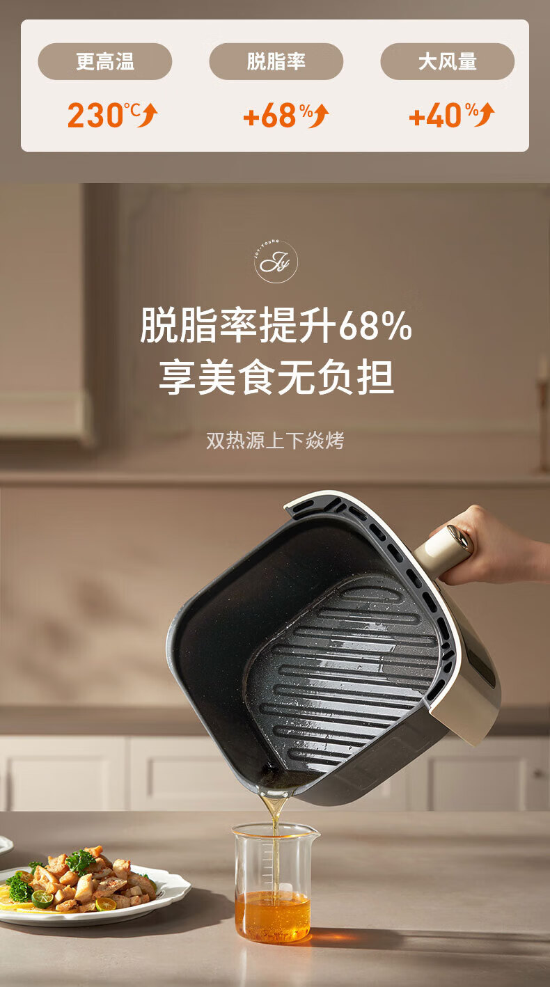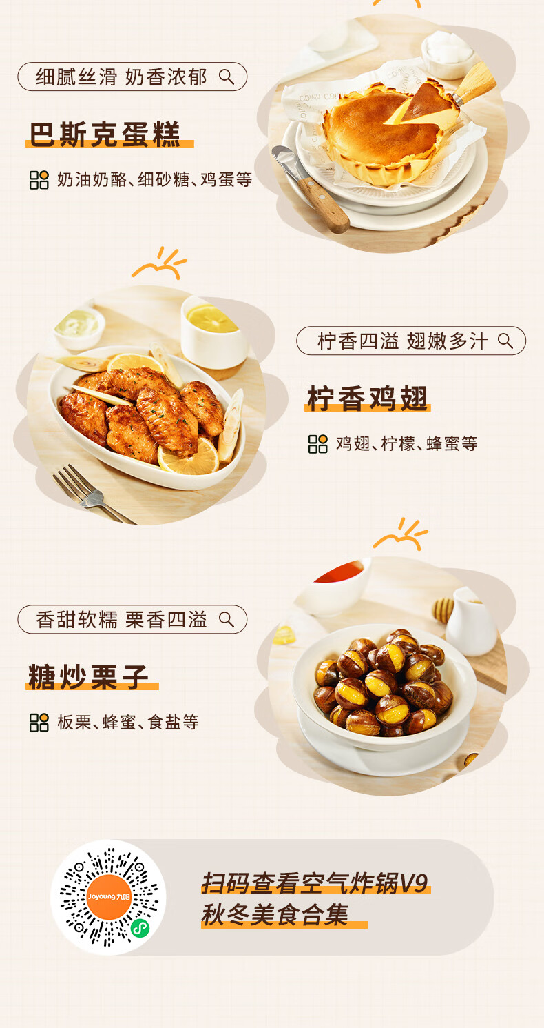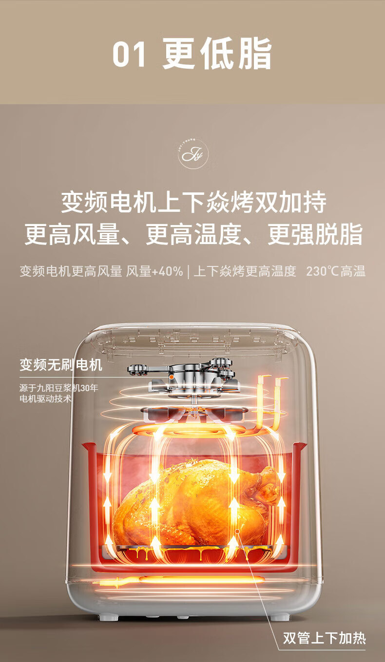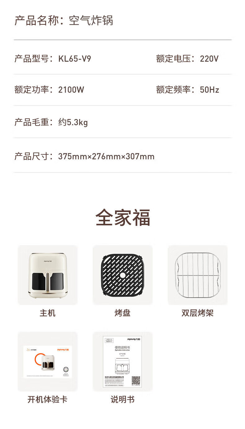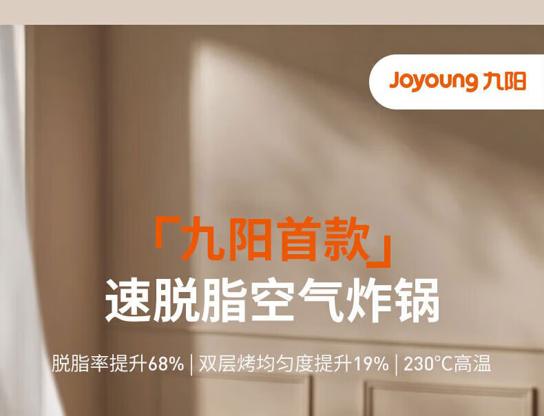 Joyoung Skim Air Fryer No need to turn over 6.5L large capacity One-button smart touch Ultra-thin visible metal inner cavity Steam tender frying Oil-free frying V9 6.5L