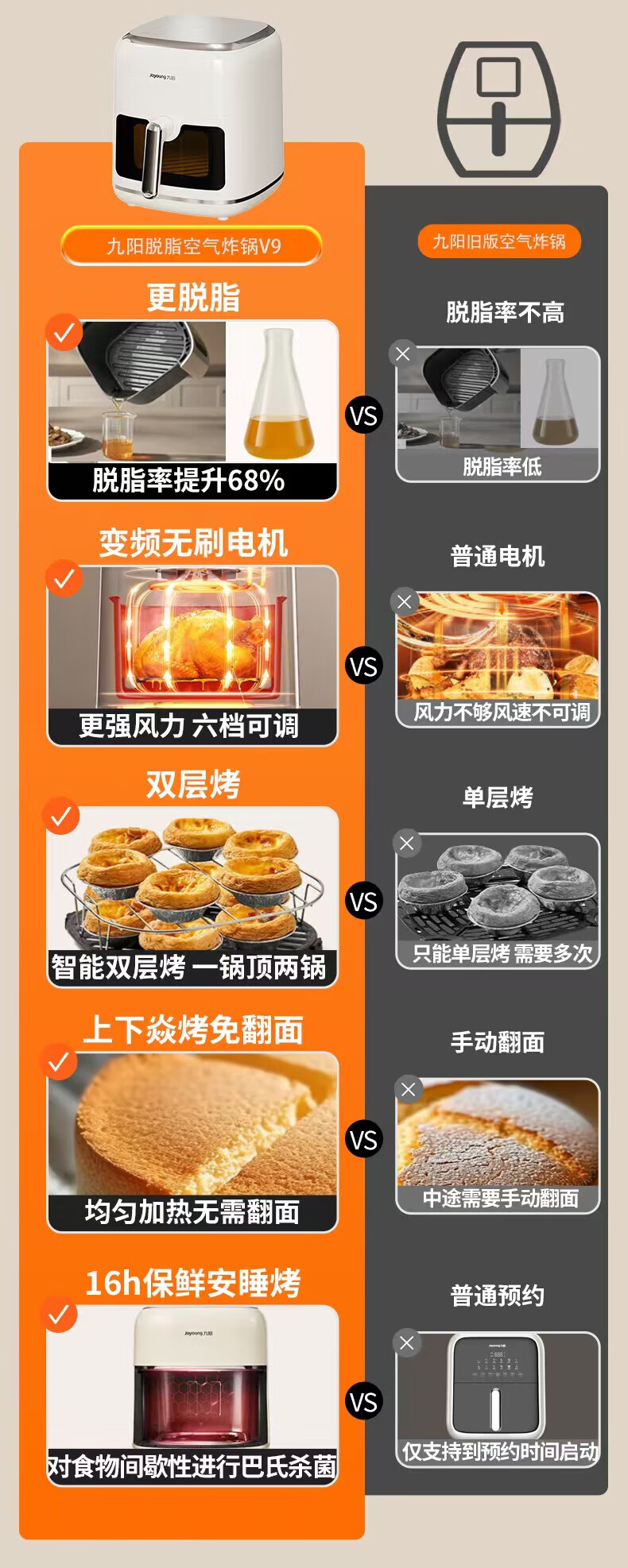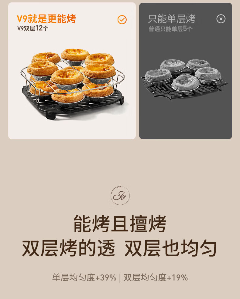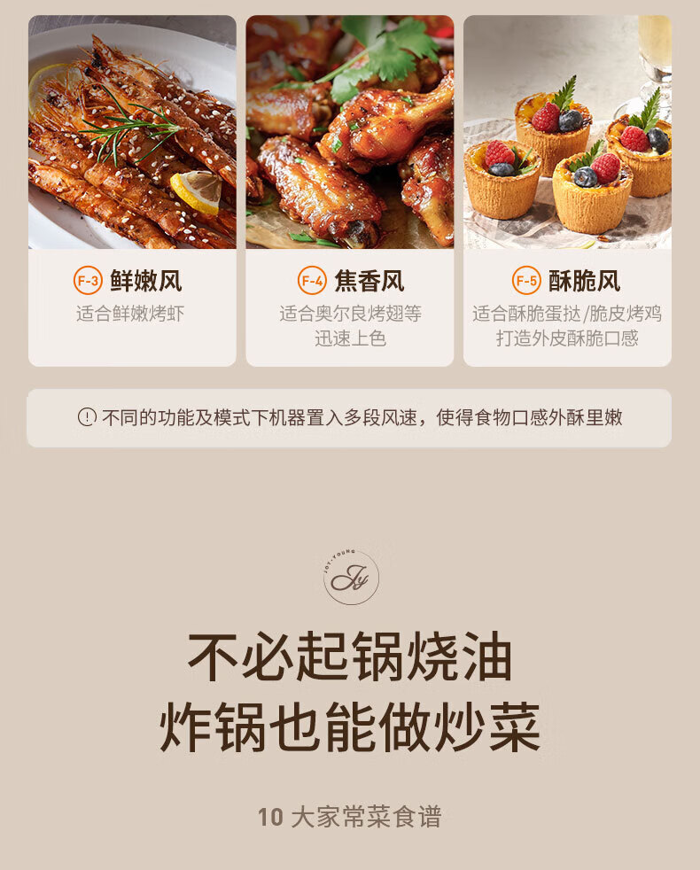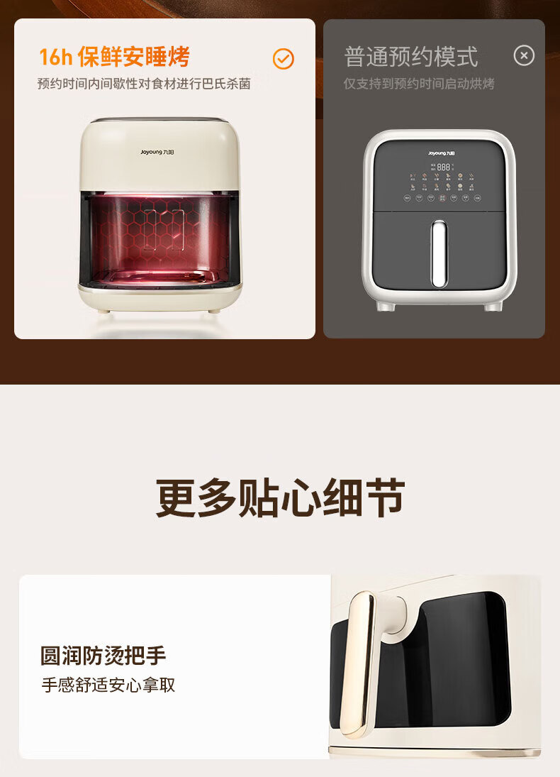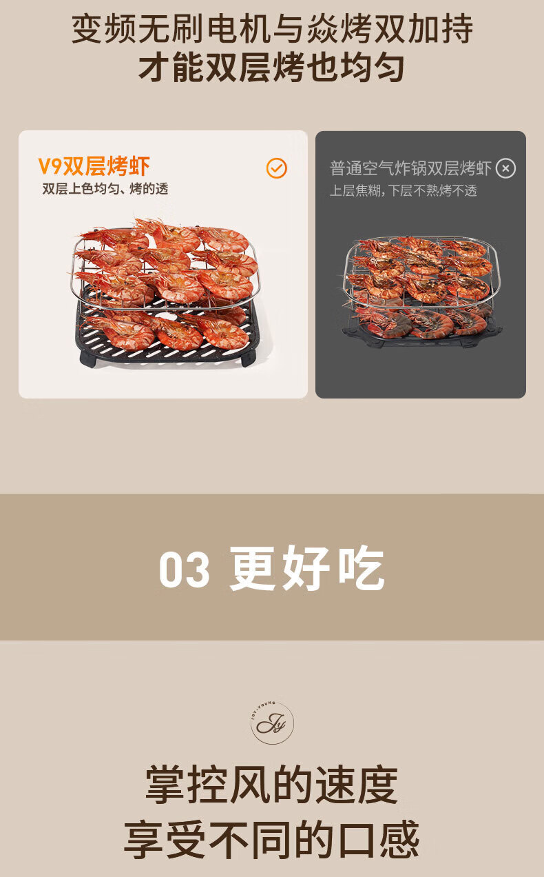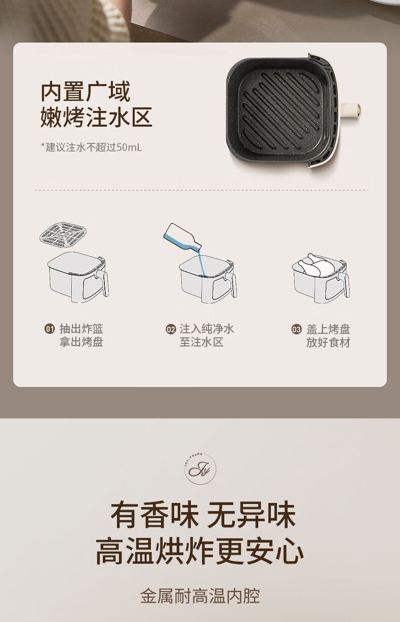 Joyoung Skim Air Fryer No need to turn over 6.5L large capacity One-button smart touch Ultra-thin visible metal inner cavity Steam tender frying Oil-free frying V9 6.5L