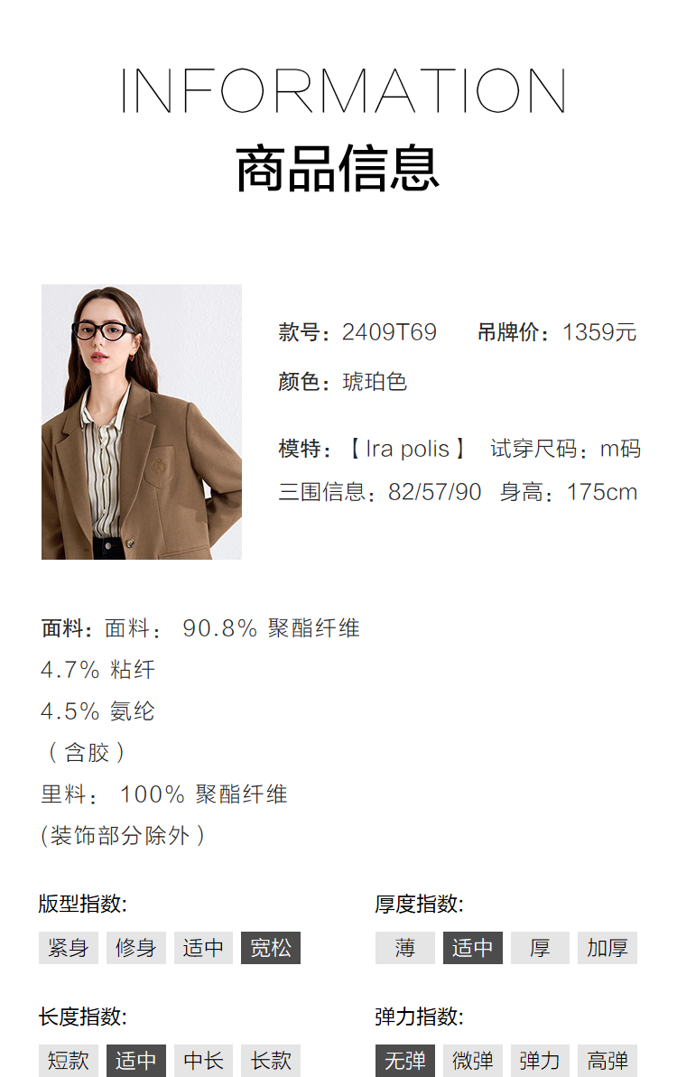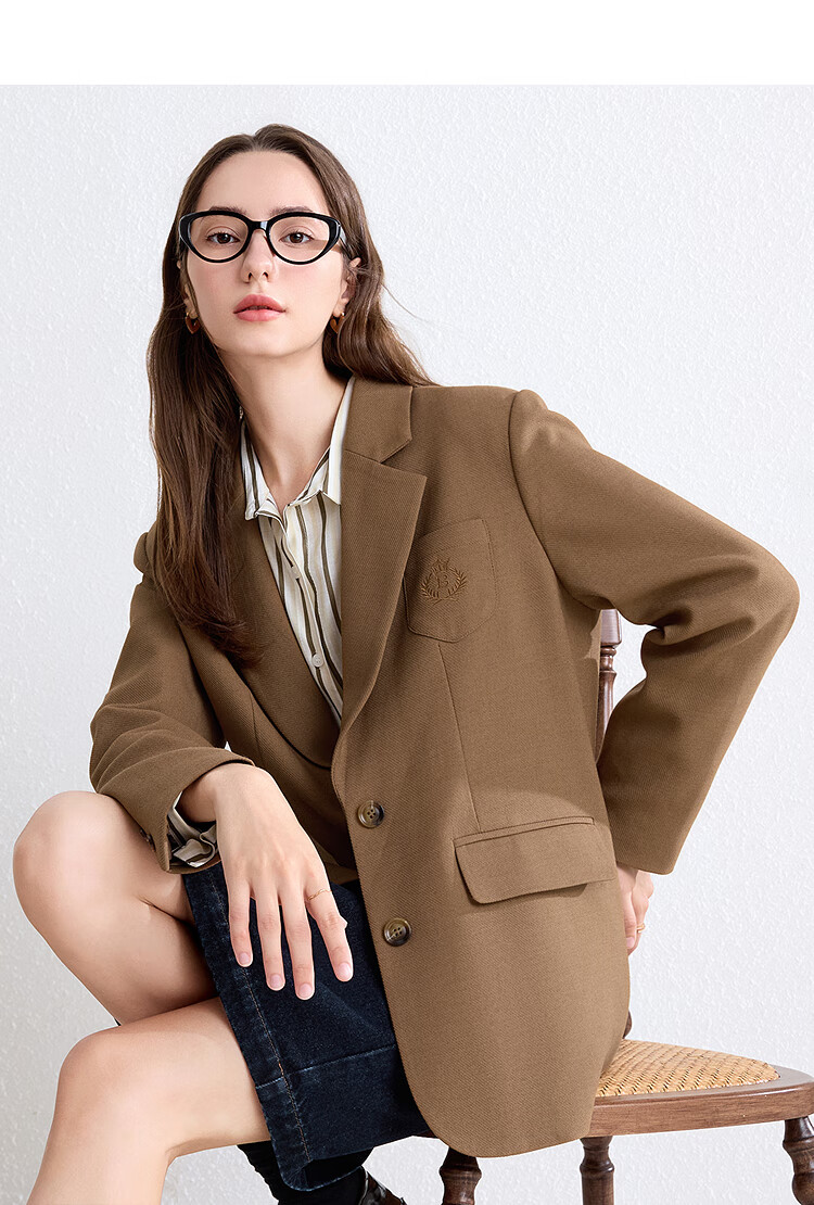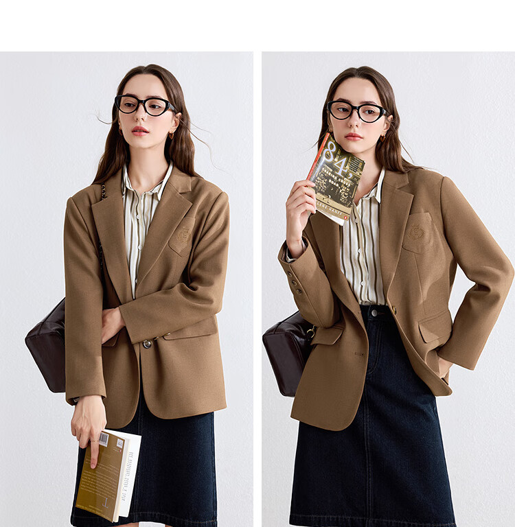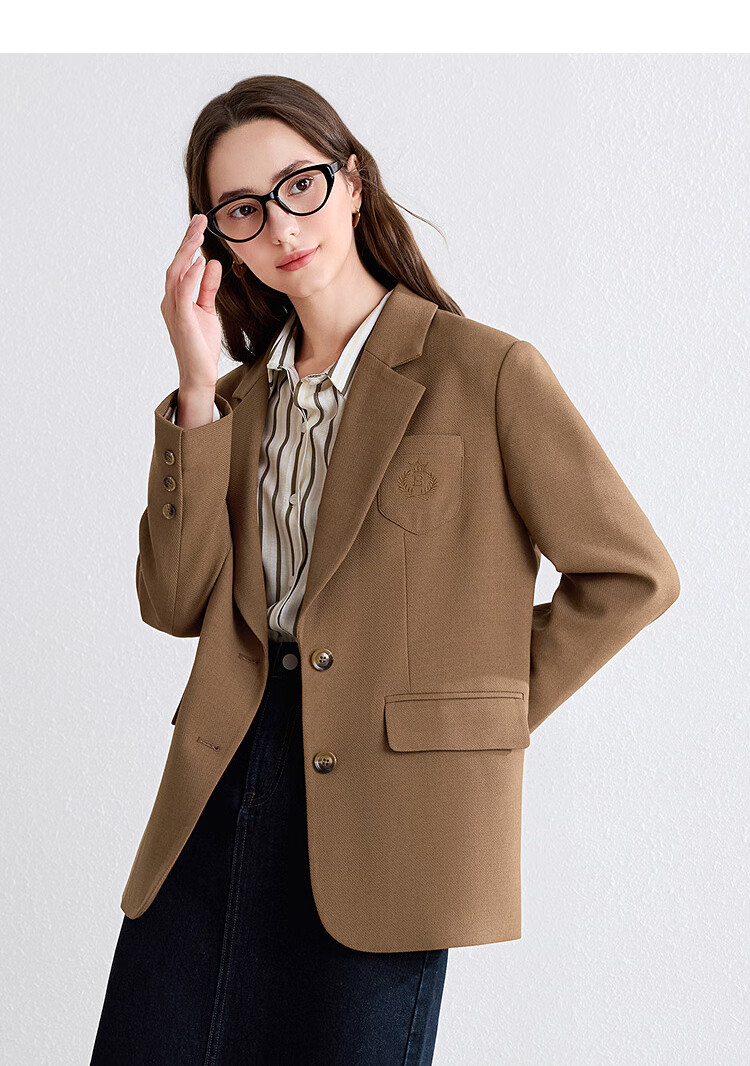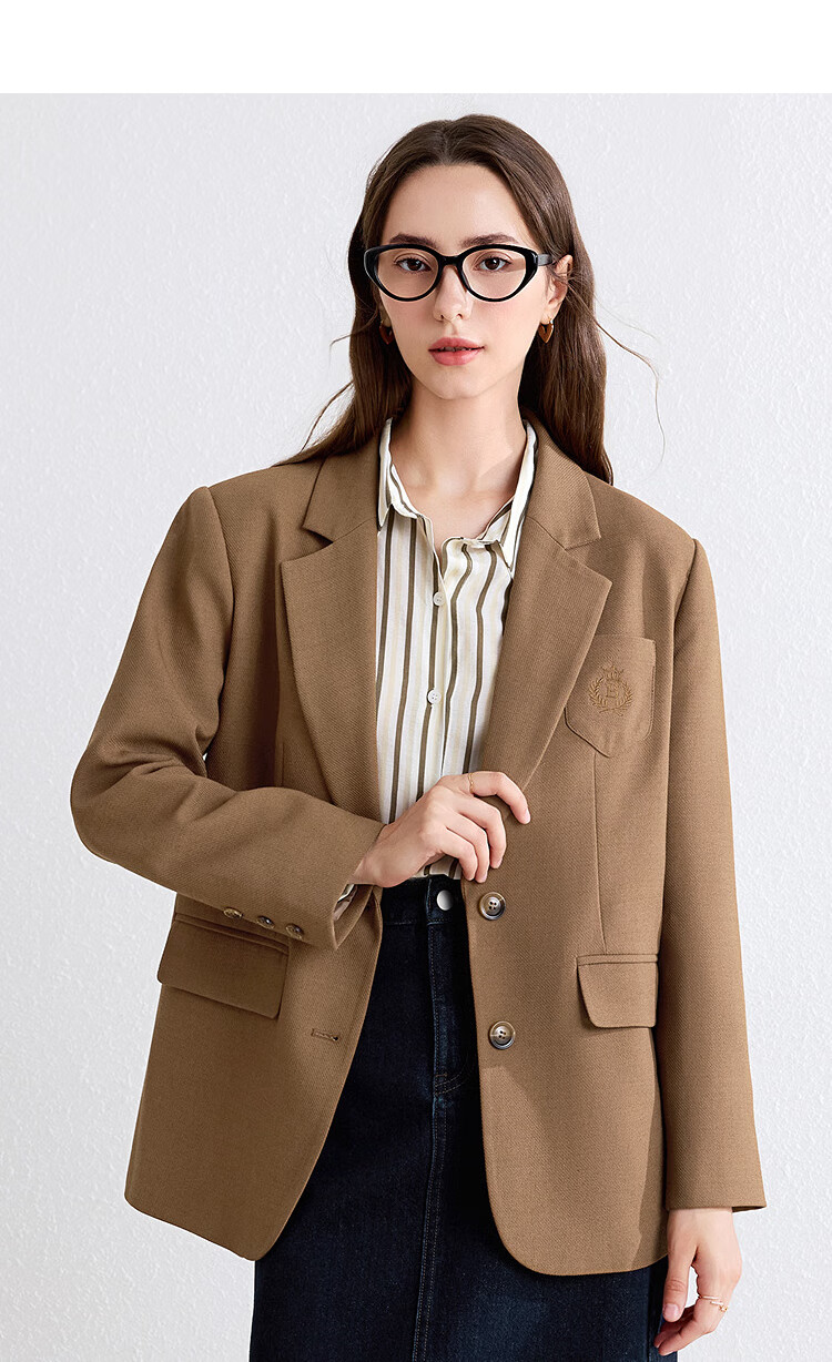 Betu women's autumn new suit twill texture college style suit jacket women 2409T69 Amber M