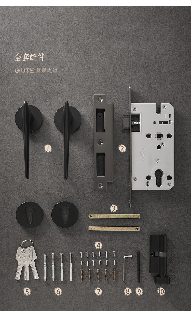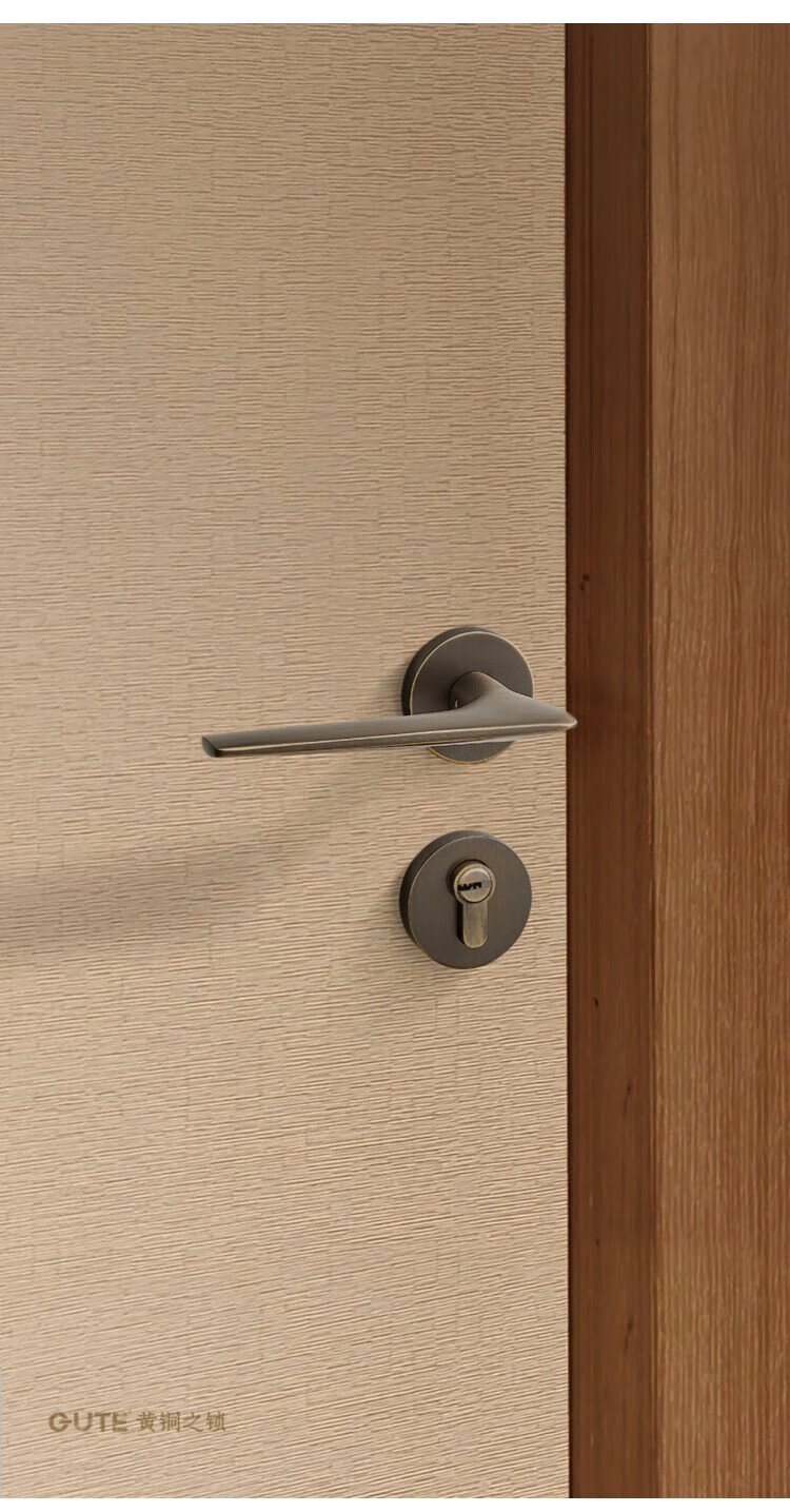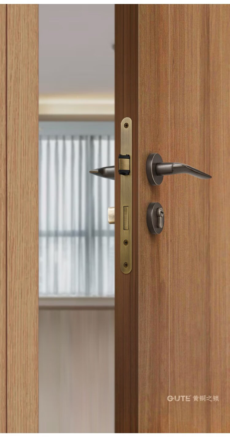 GUTE French brass door lock bedroom door lock indoor silent door lock solid wood door lock room door lock handle universal lock coffee bronze bedroom door lock