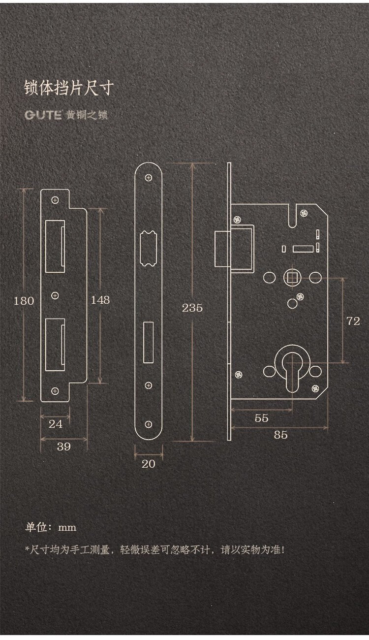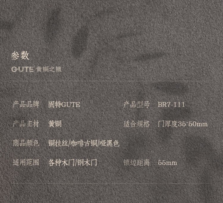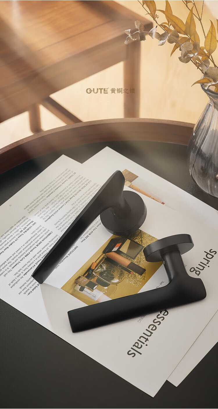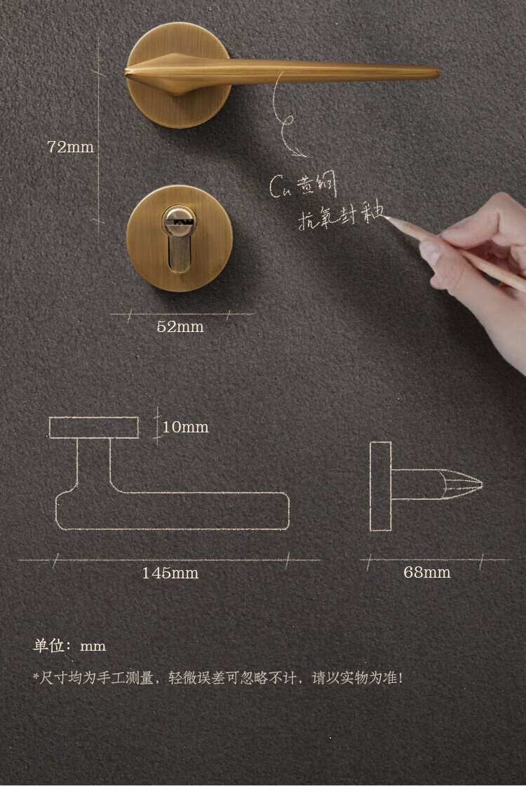 GUTE French brass door lock bedroom door lock indoor silent door lock solid wood door lock room door lock handle universal lock coffee bronze bedroom door lock