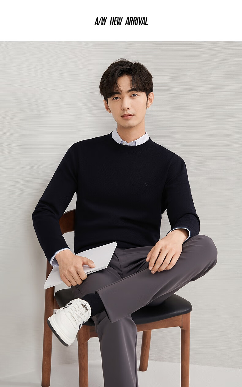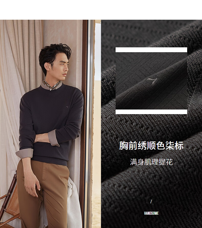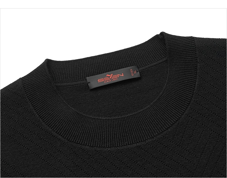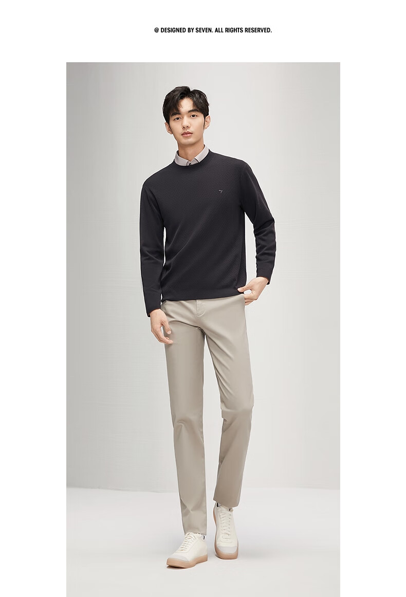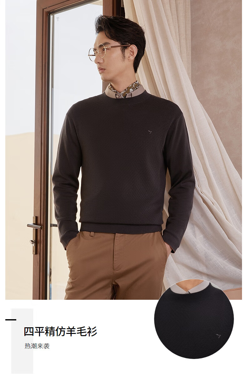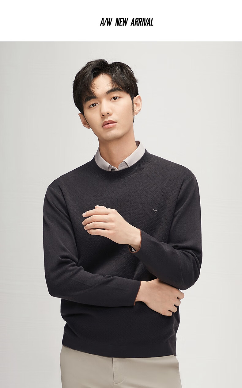 Qipai round neck sweater men's winter jacquard texture comfortable and warm men's casual all-match sweater black S (165)
