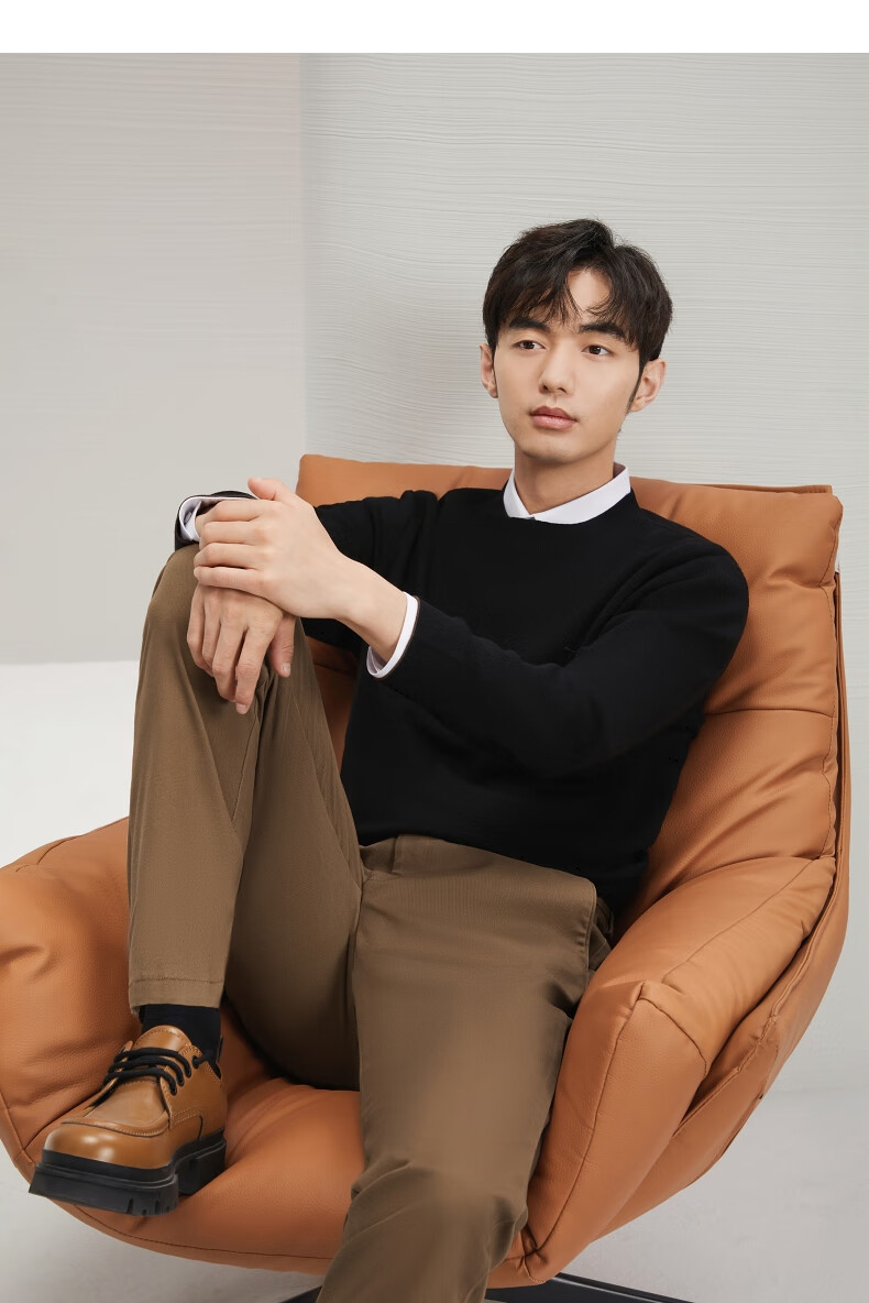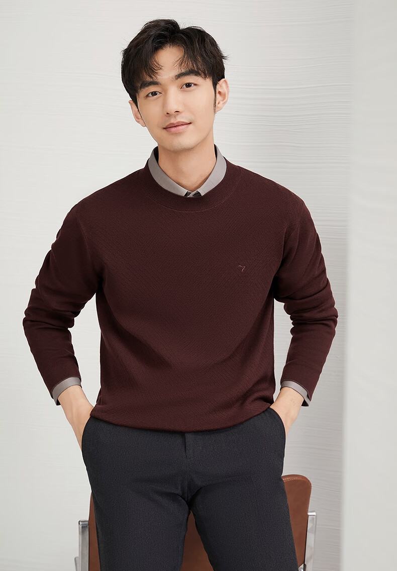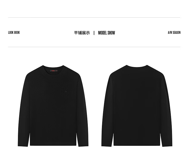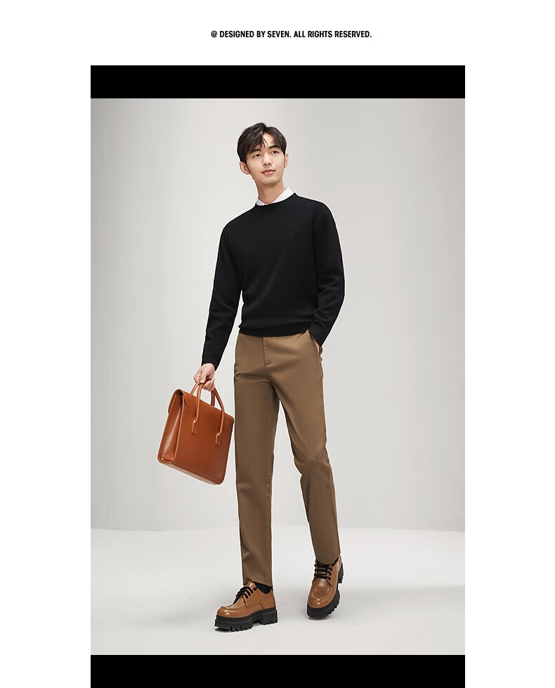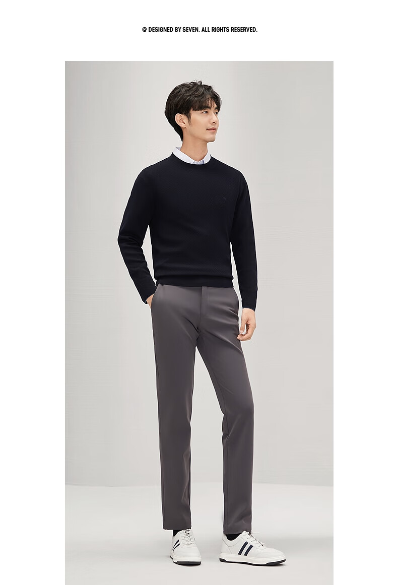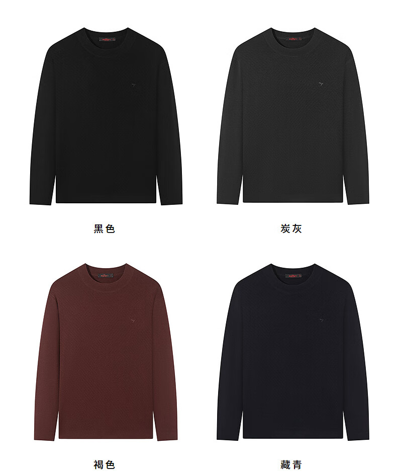 Qipai round neck sweater men's winter jacquard texture comfortable and warm men's casual all-match sweater black S (165)