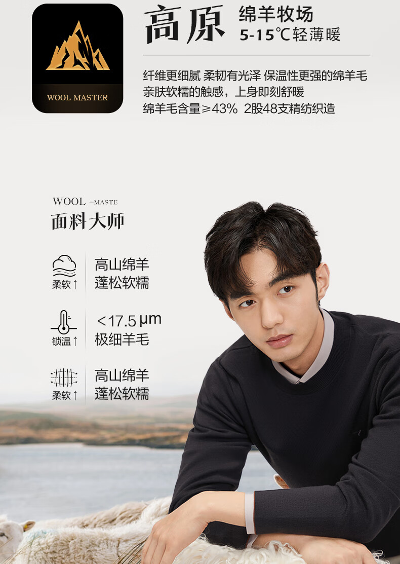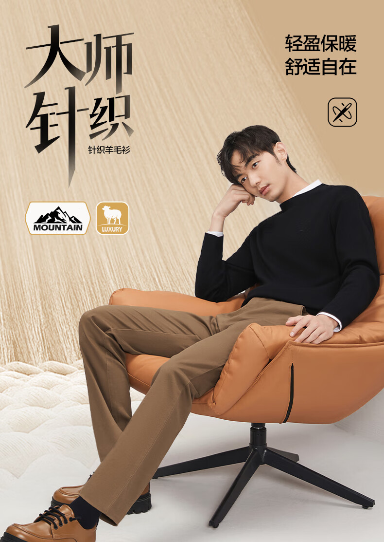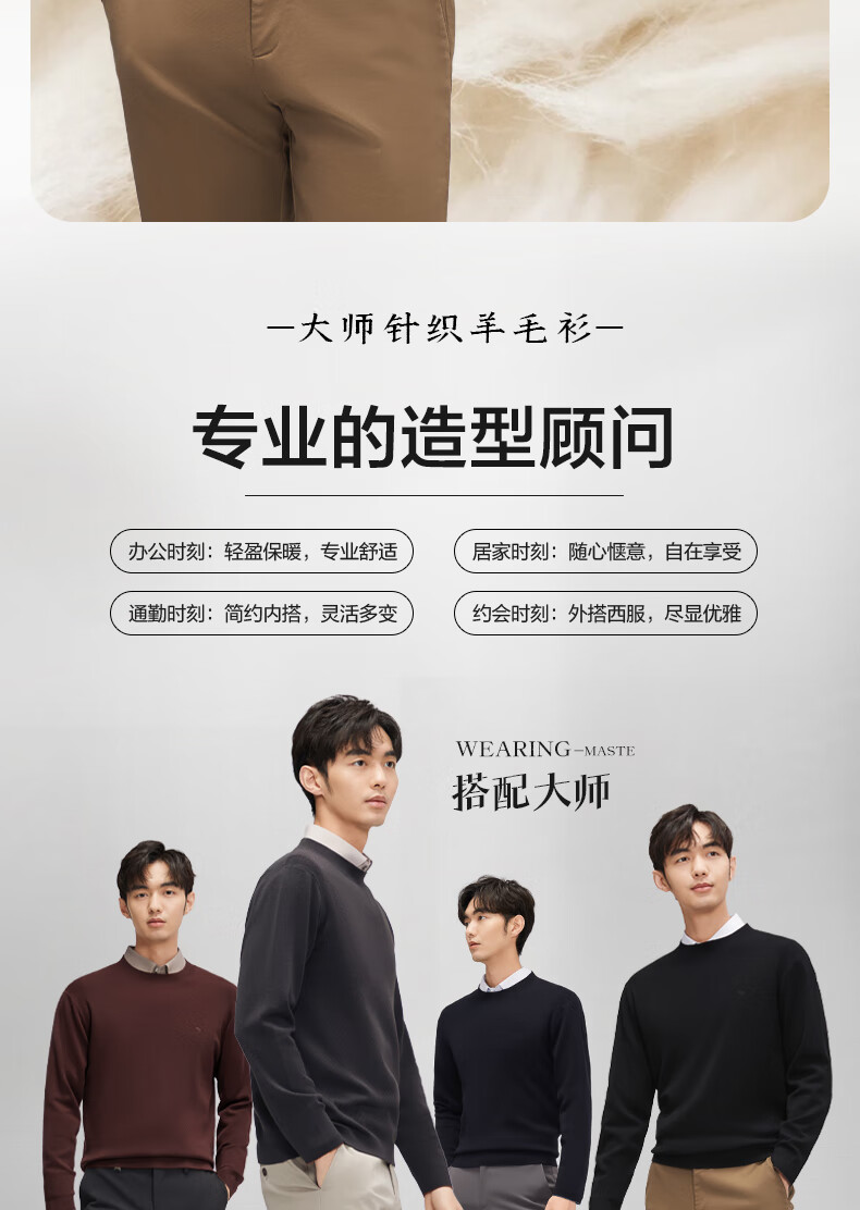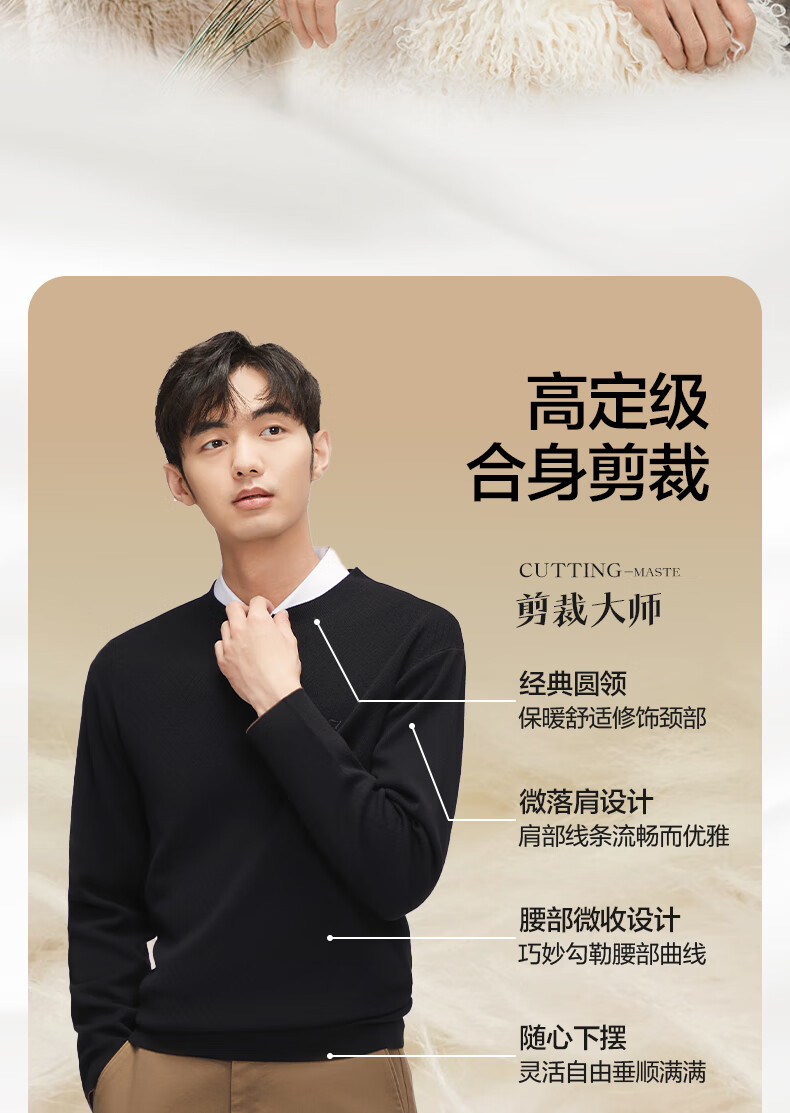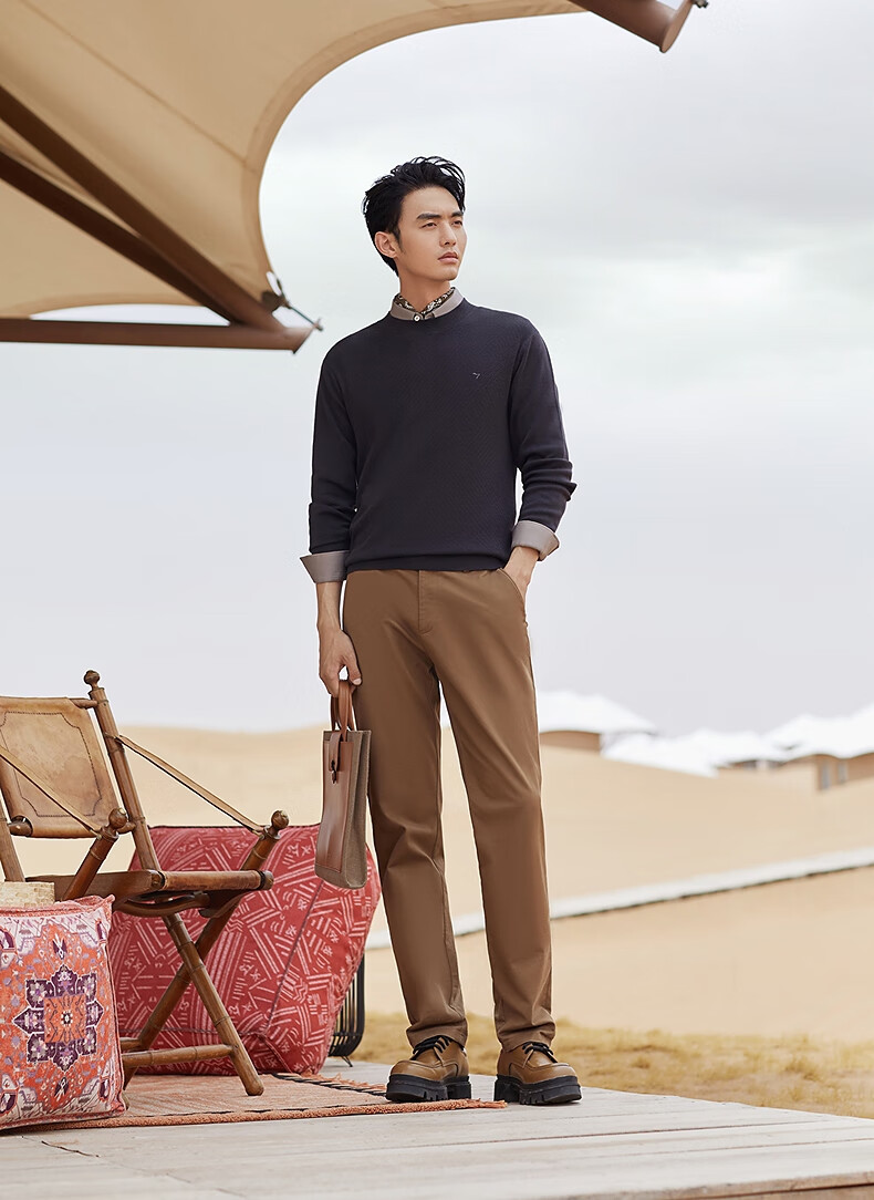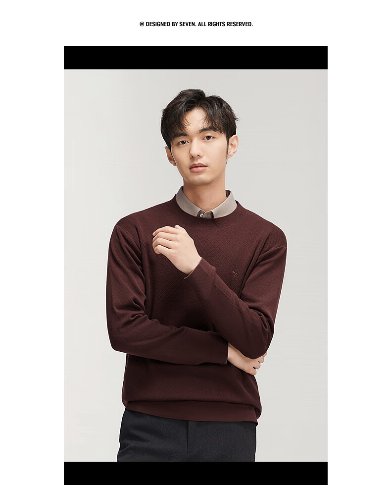 Qipai round neck sweater men's winter jacquard texture comfortable and warm men's casual all-match sweater black S (165)