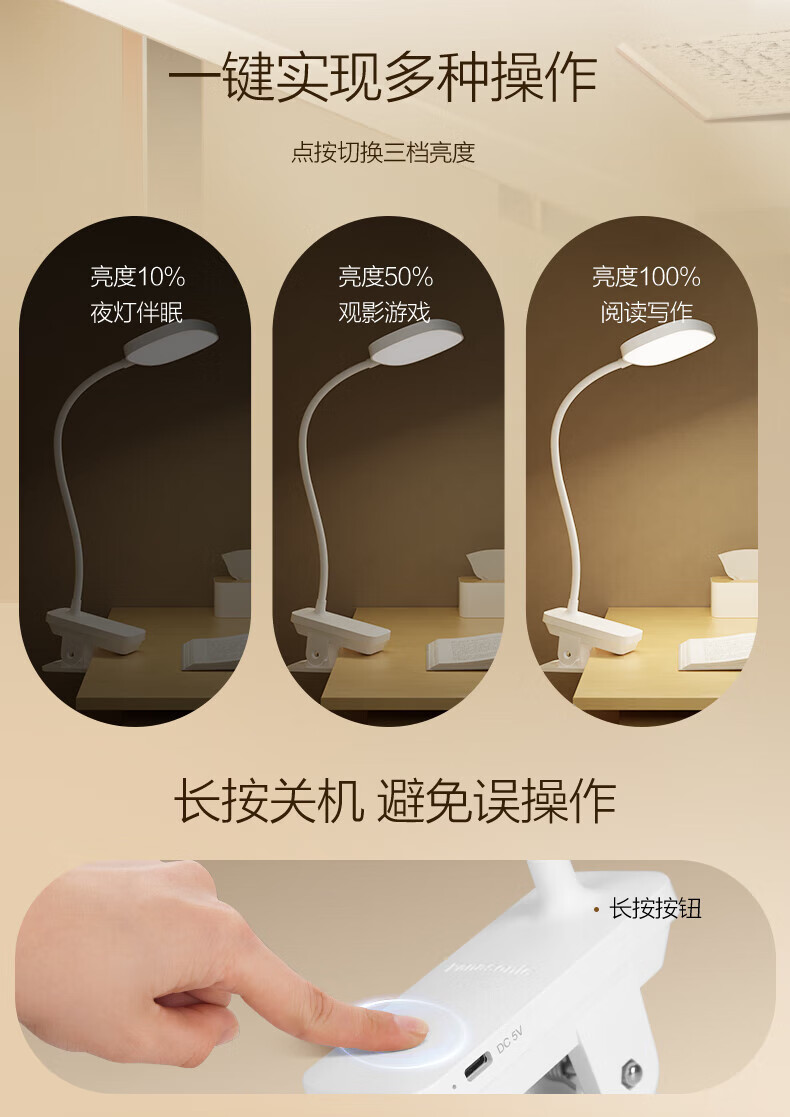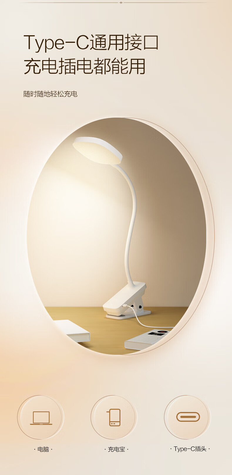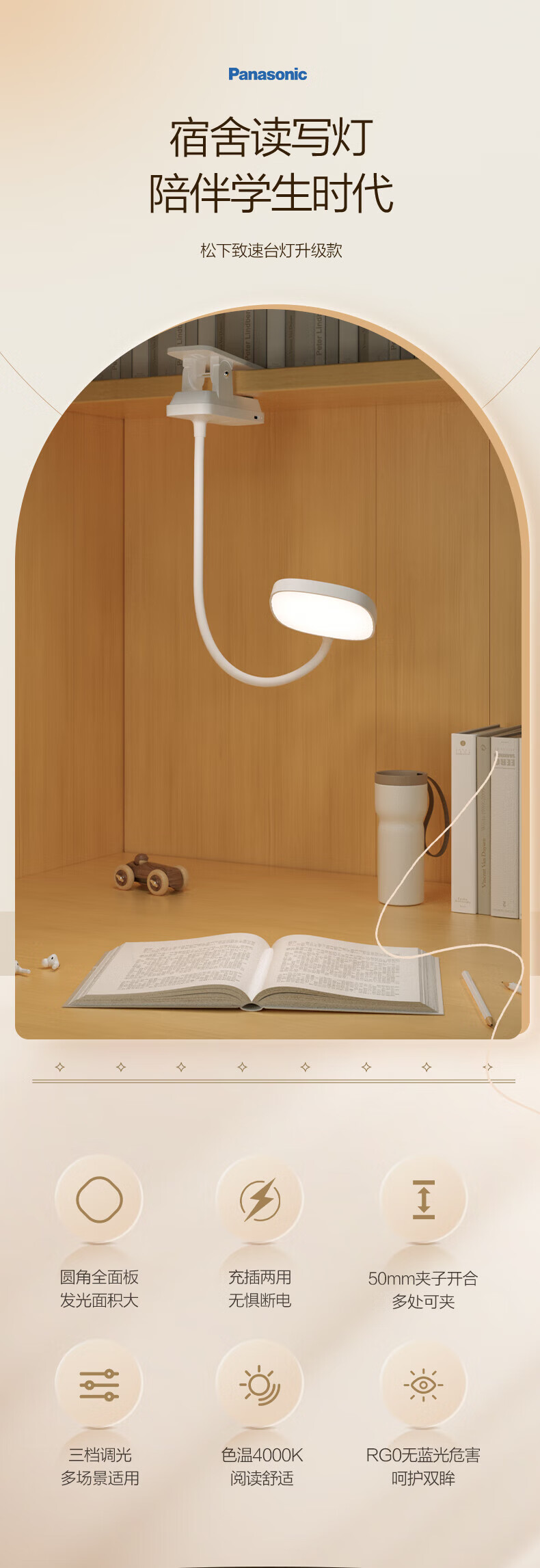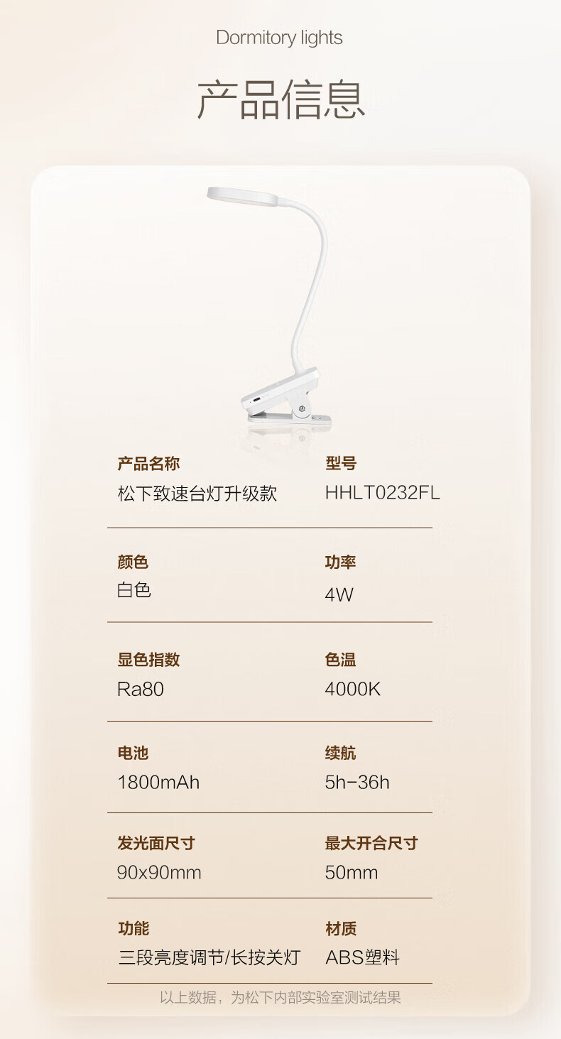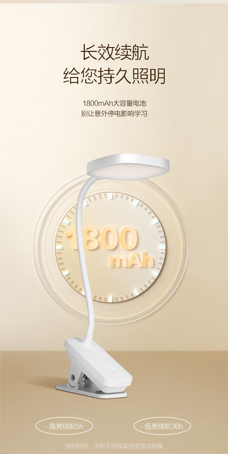 Panasonic Speed Small Desk Lamp USB Rechargeable Learning LED Lamp Reading Eye Protection Student Clip Lamp HHLT0232FL 4W Flicker-Free Clip Desk Lamp HHLT0232FL
