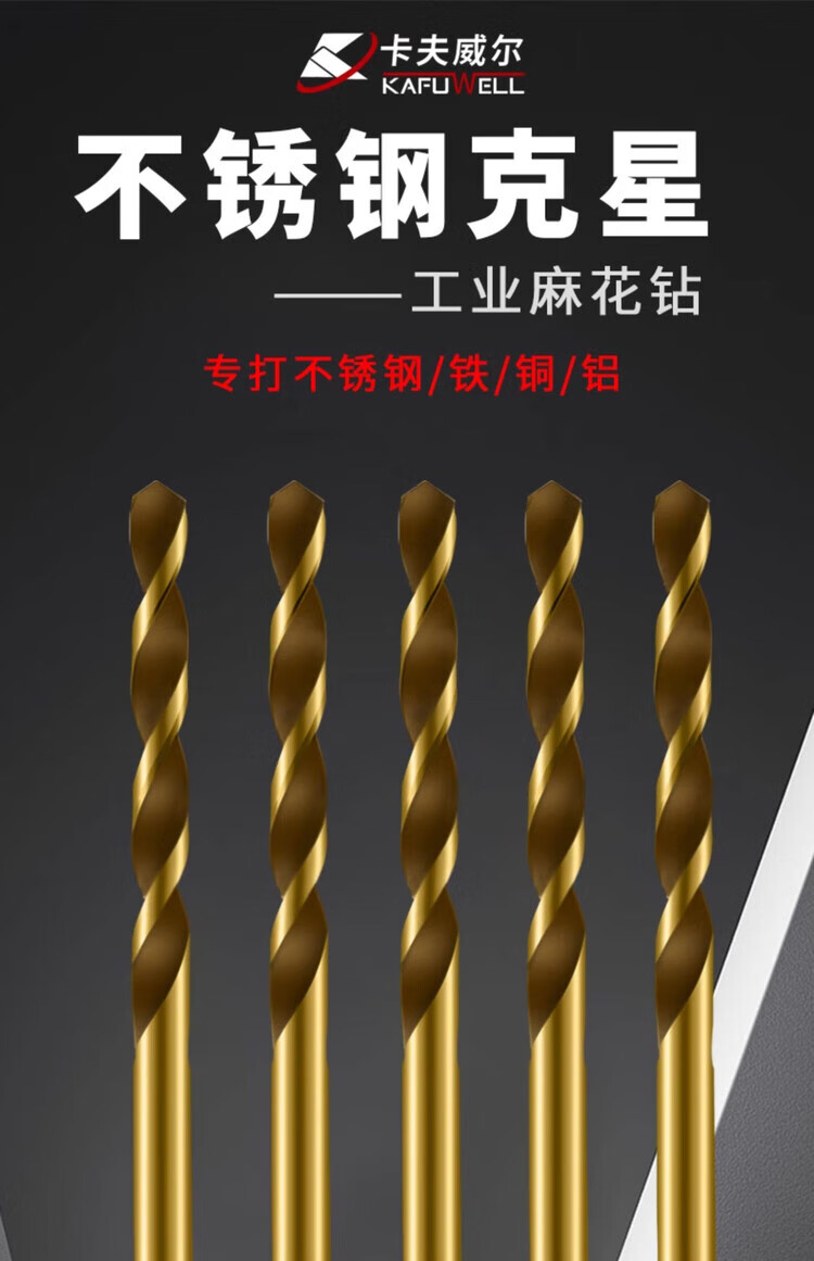 Kraftwell straight handle twist drill stainless steel plastic aluminum alloy electric drill bit metal drilling titanium coated twist drill 2-3-4-5-6mm twist drill 5-pack