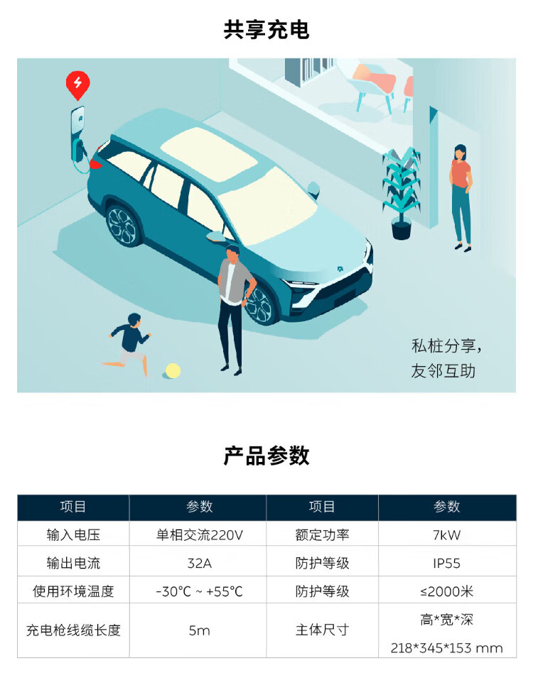 NIO original charging pile gun original NIO ES6/7/8/EC6/7/ET5T/ET7 Ledao L60 new energy NIO 7kw AC does not include installation official standard configuration