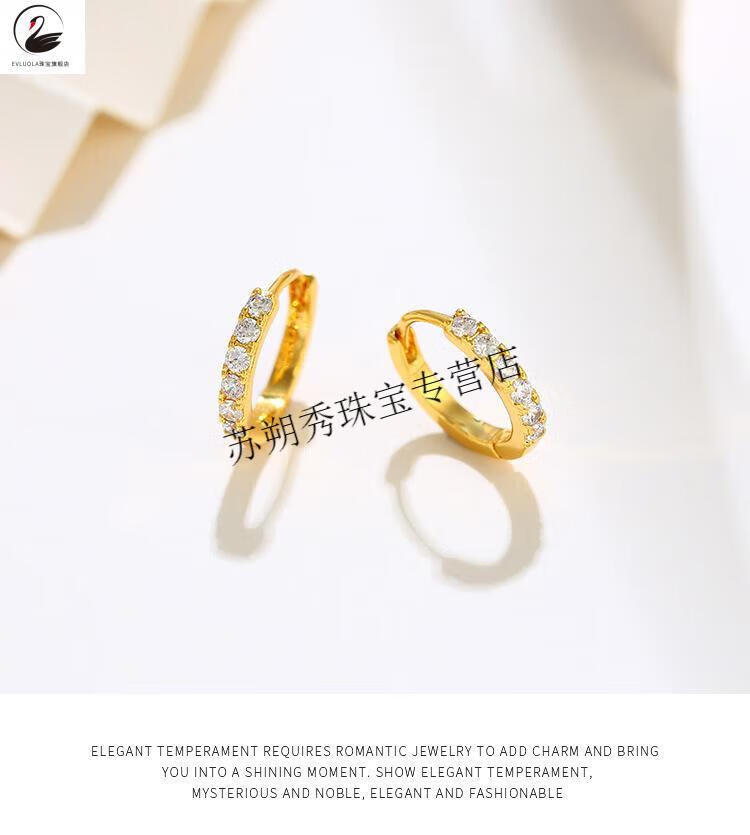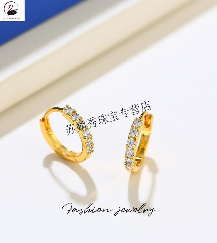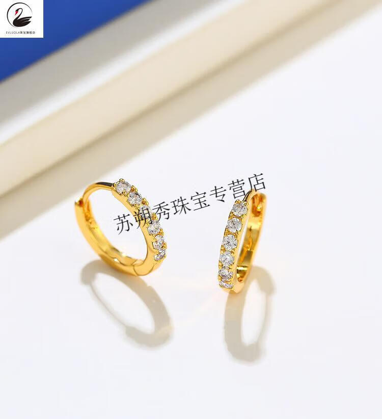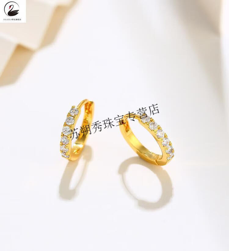 XCL gold earrings earrings earrings buckles pure gold ins retro hoop earrings 18K women's wedding gift thin hoop earrings 1.2g