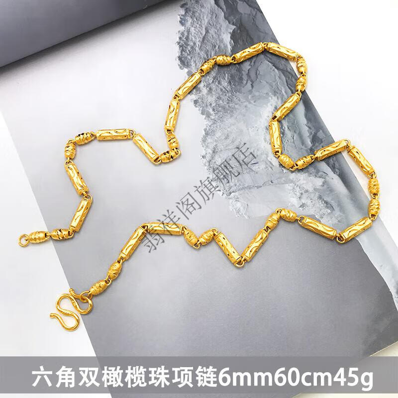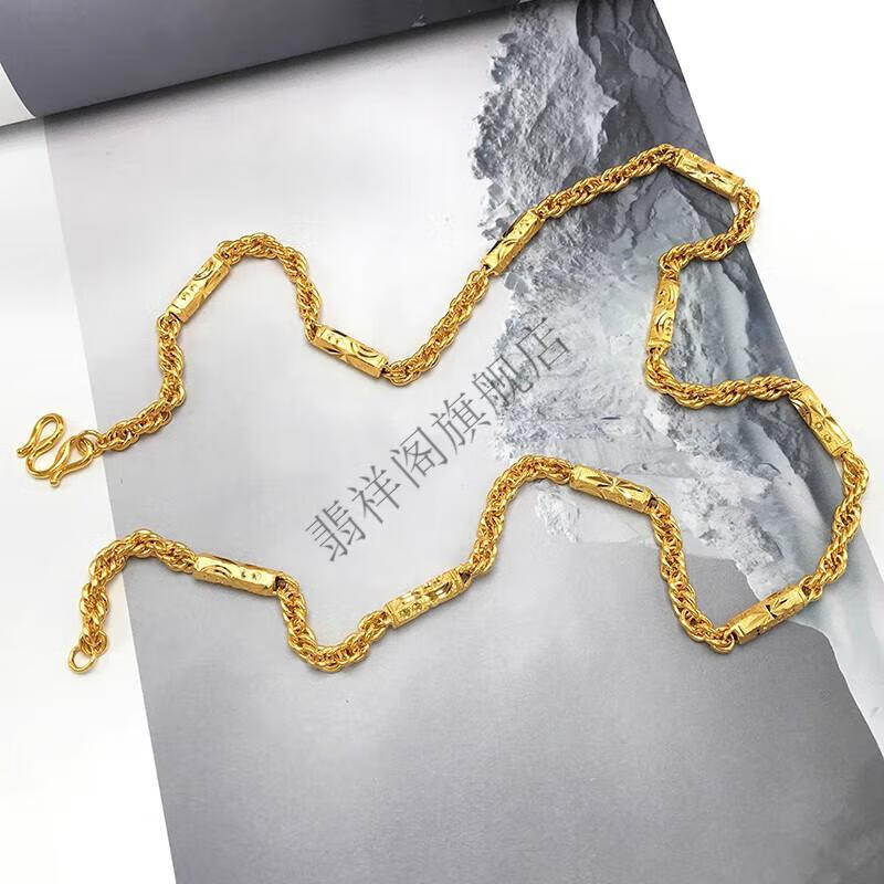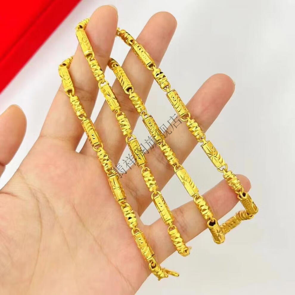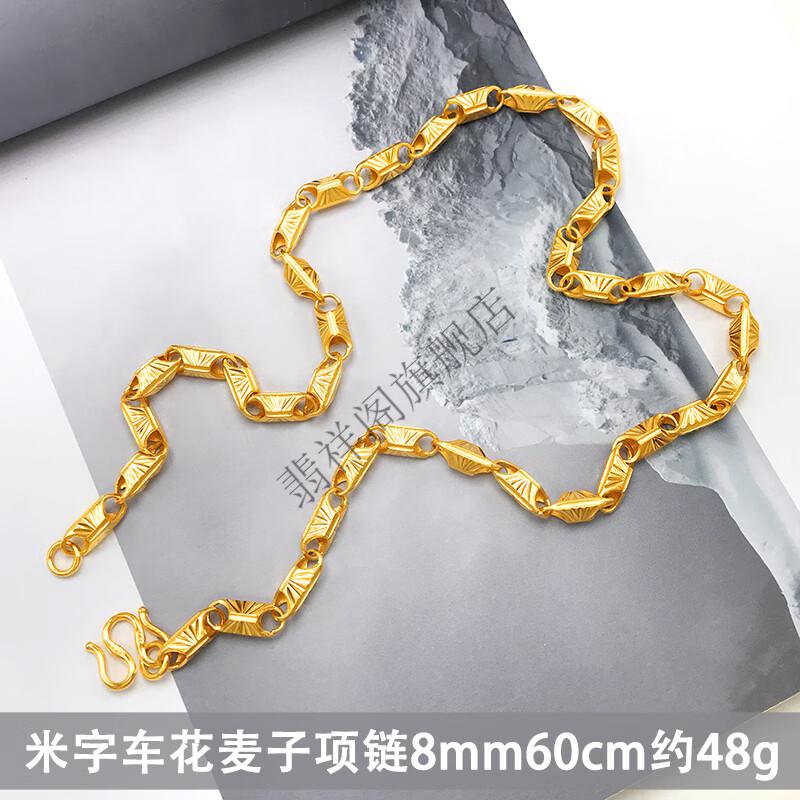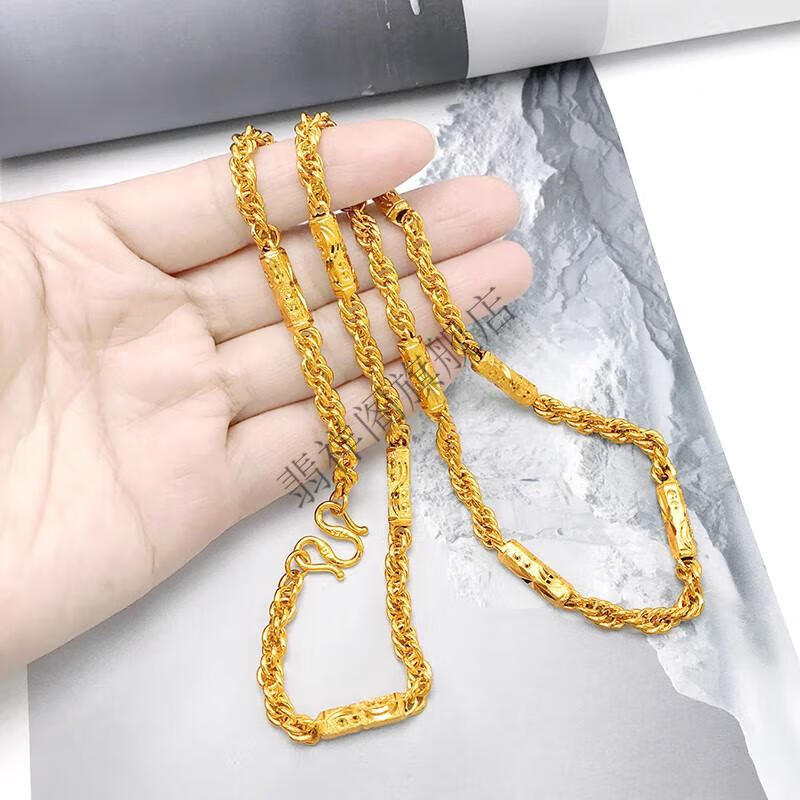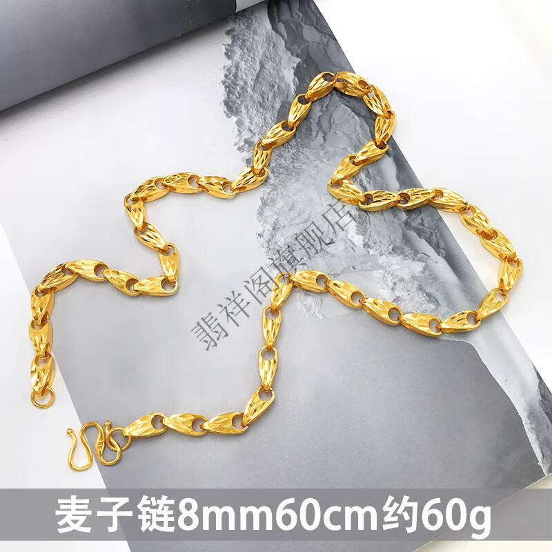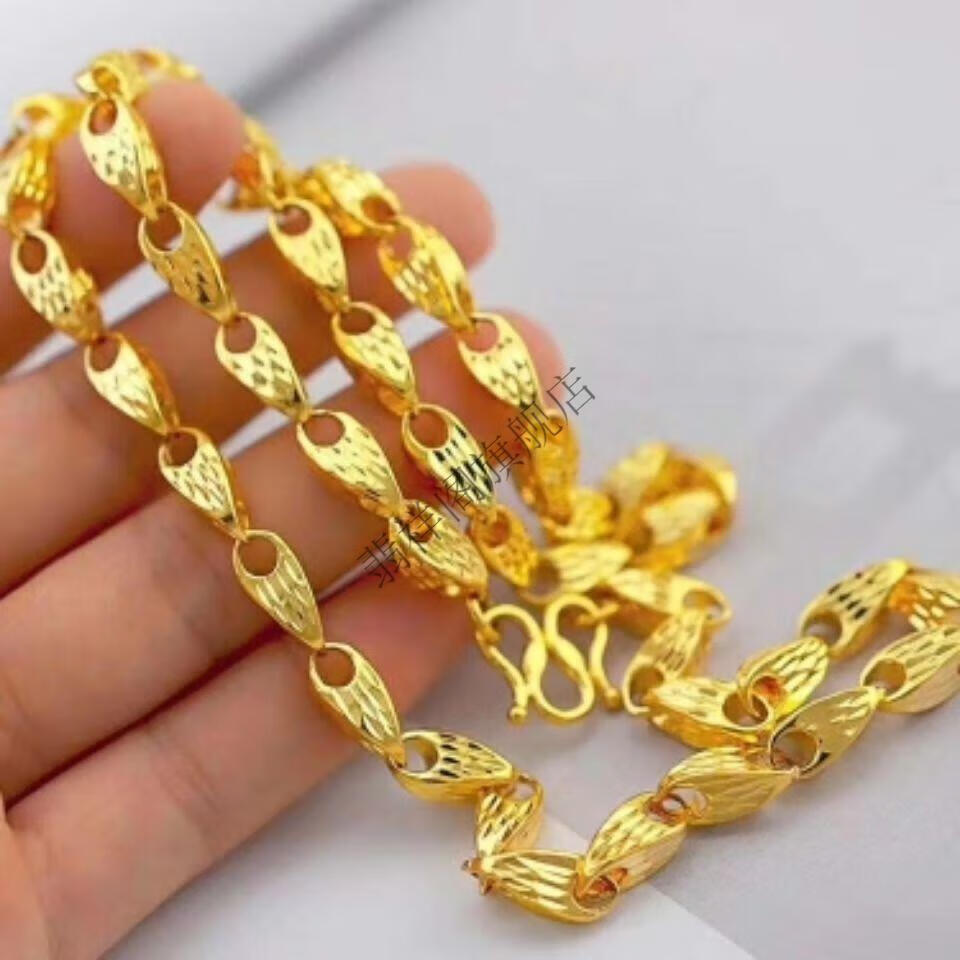 Feixiangge Vietnam Sand Gold Necklace for Men and Women Hollow Wheat Twist Boss Chain Bamboo Olive Gold Shop Same Style Couple Small Solid Wheat Chain 5mm60cm63g