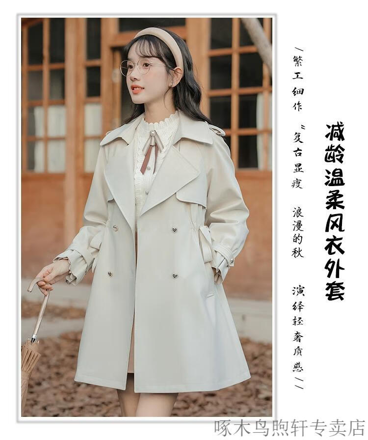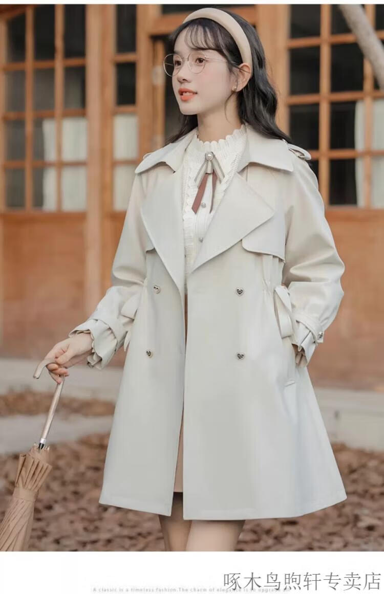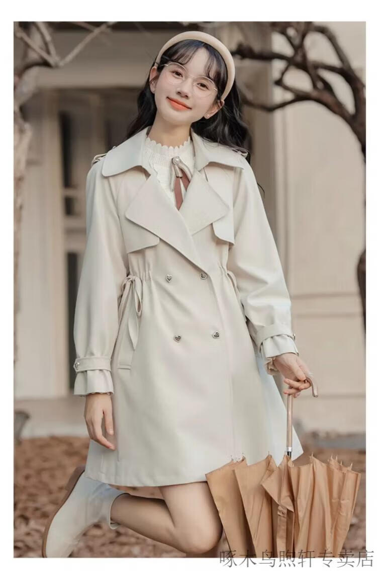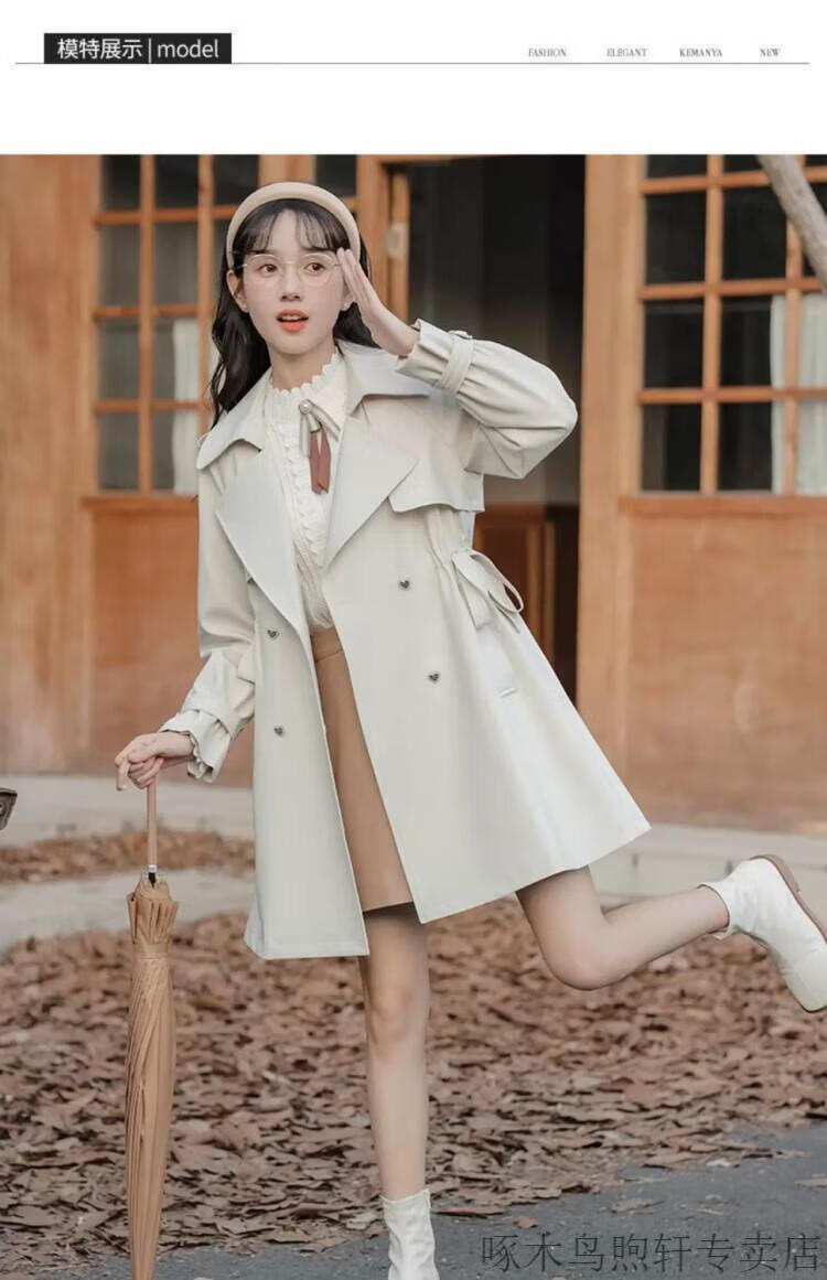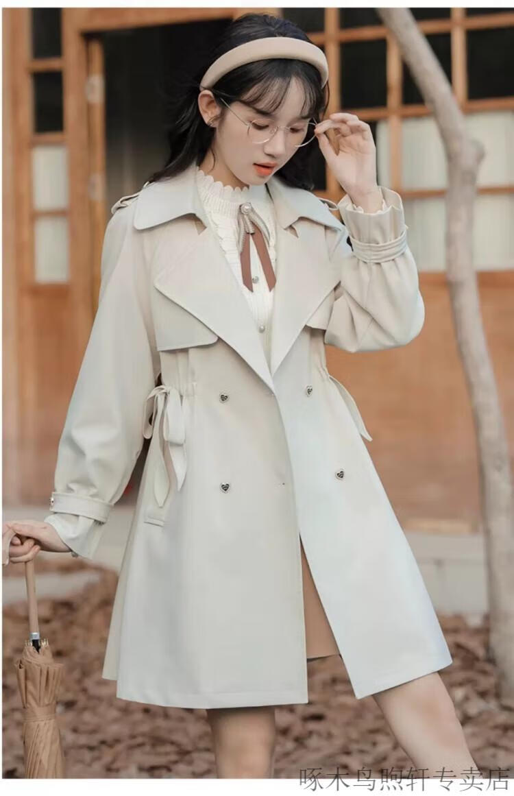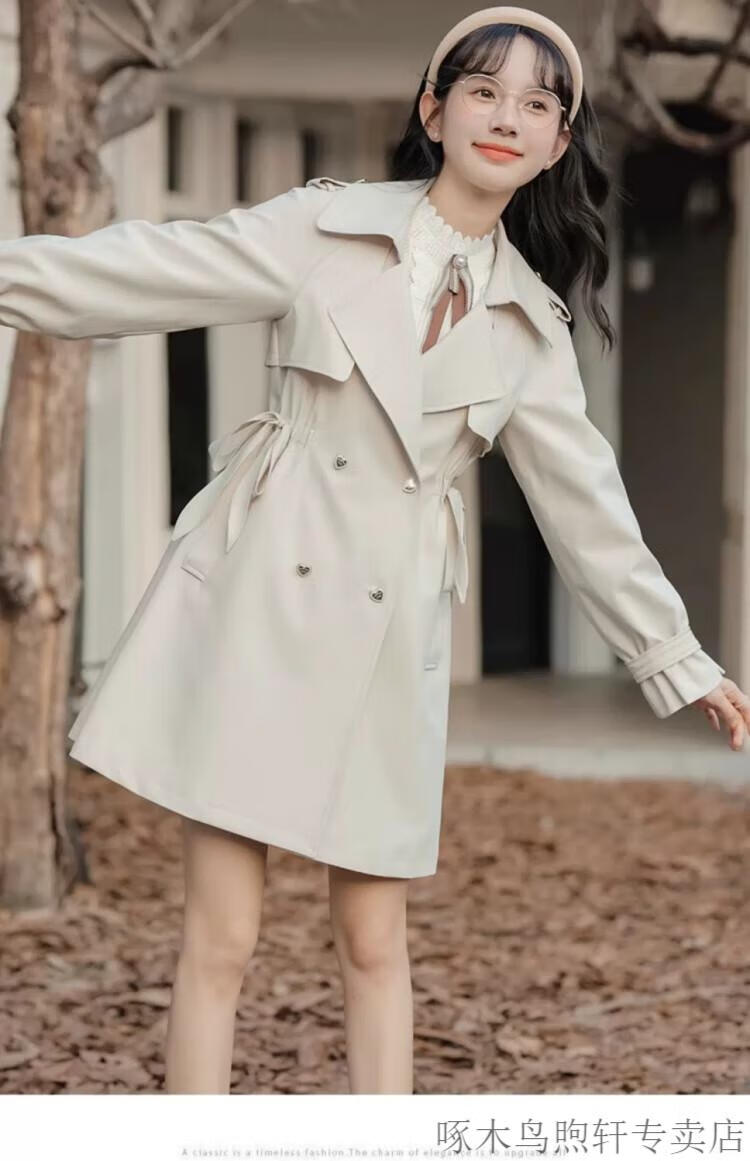 Woodpecker Small French Style Commuting Windbreaker Jacket Women's 2025 New Autumn British Style Korean Style Loose Coat Pearl Rice M Recommendation (101-115Jin Jin equals 0.5kg)