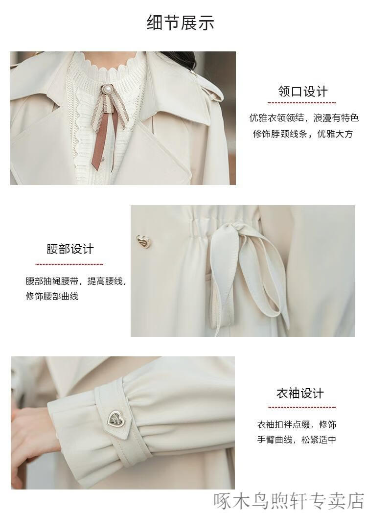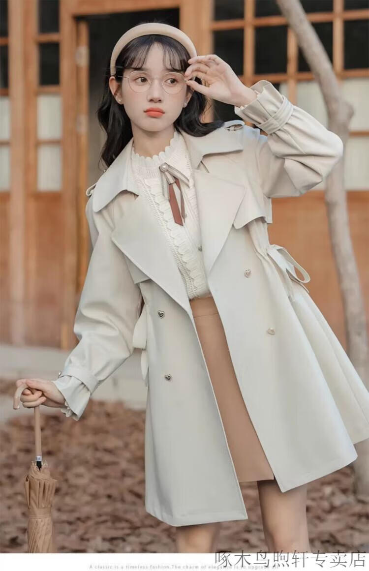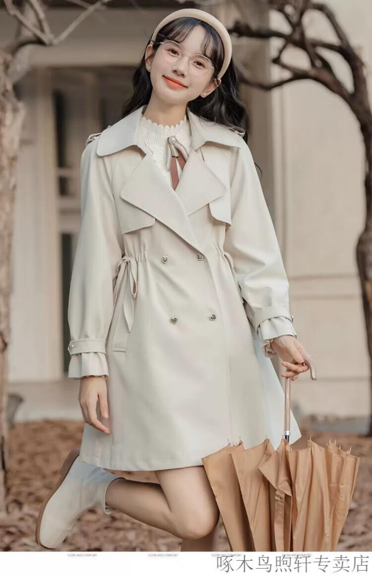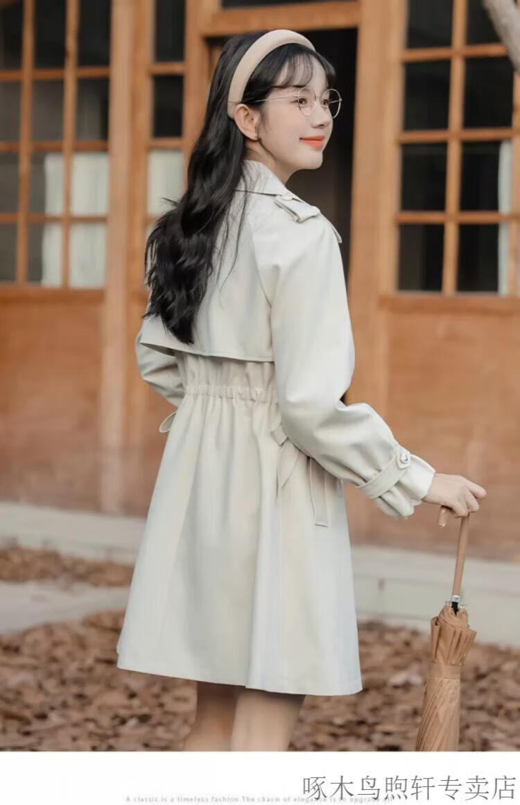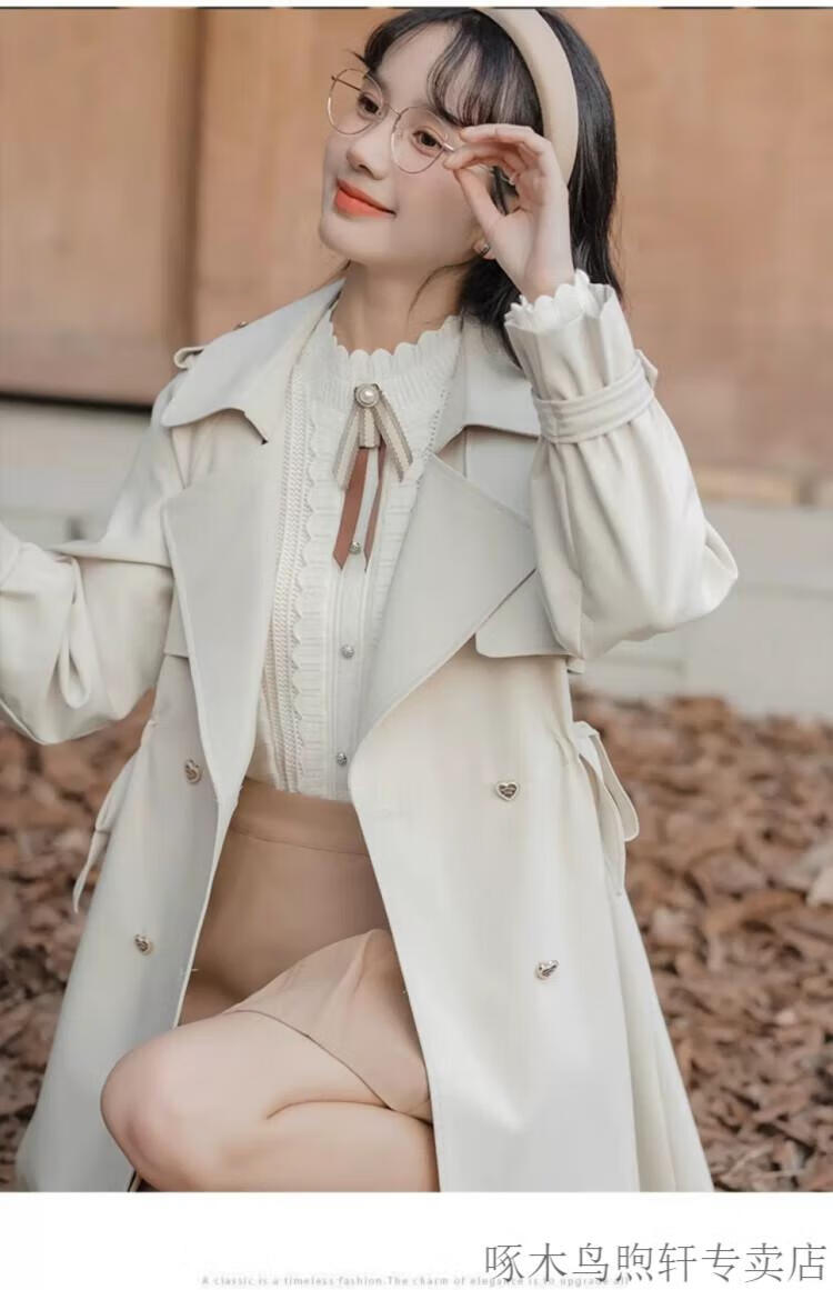 Woodpecker Small French Style Commuting Windbreaker Jacket Women's 2025 New Autumn British Style Korean Style Loose Coat Pearl Rice M Recommendation (101-115Jin Jin equals 0.5kg)
