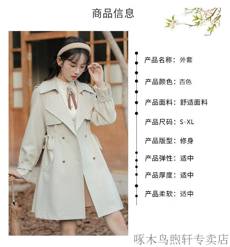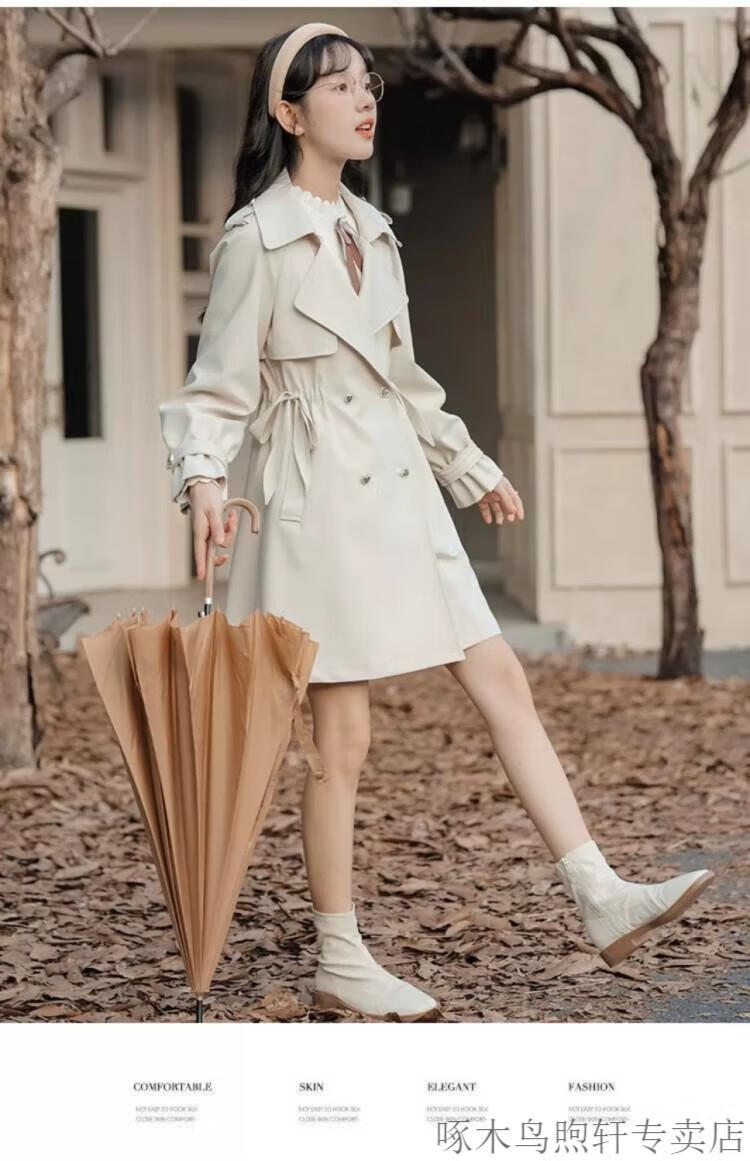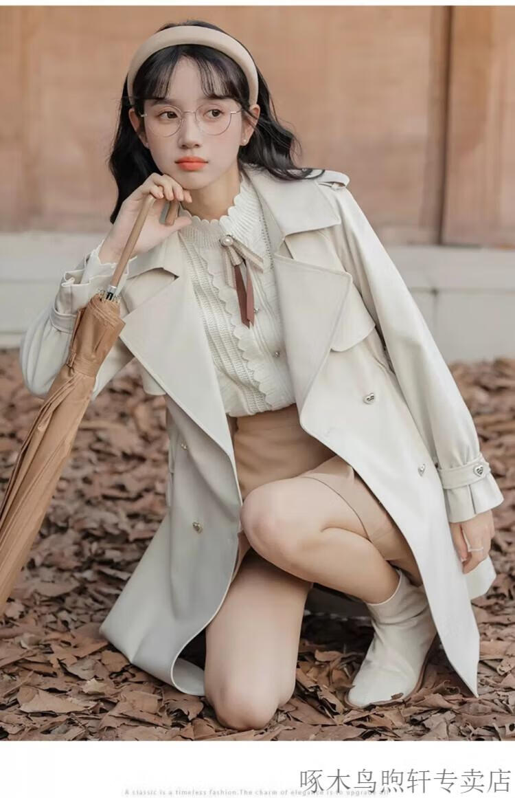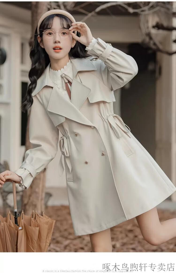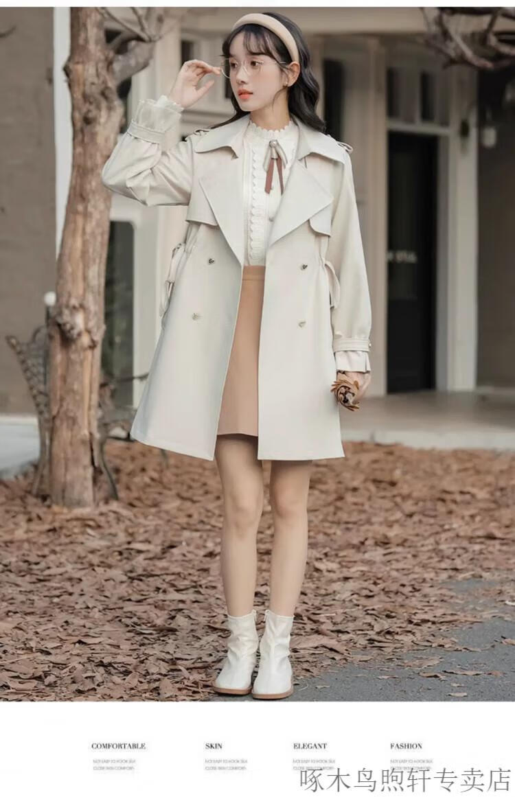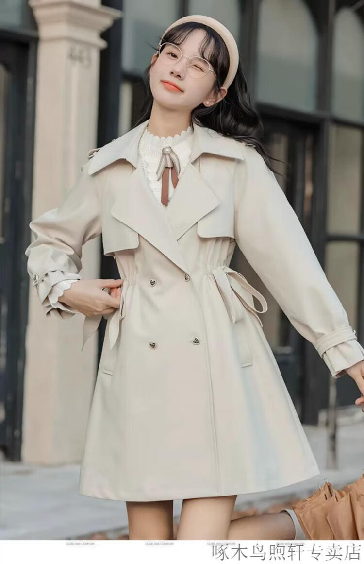 Woodpecker Small French Style Commuting Windbreaker Jacket Women's 2025 New Autumn British Style Korean Style Loose Coat Pearl Rice M Recommendation (101-115Jin Jin equals 0.5kg)