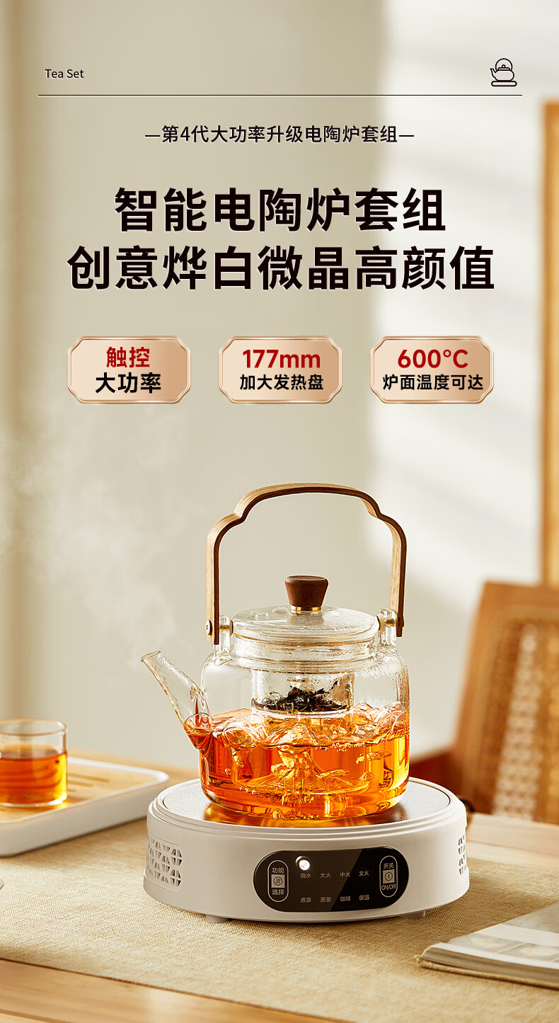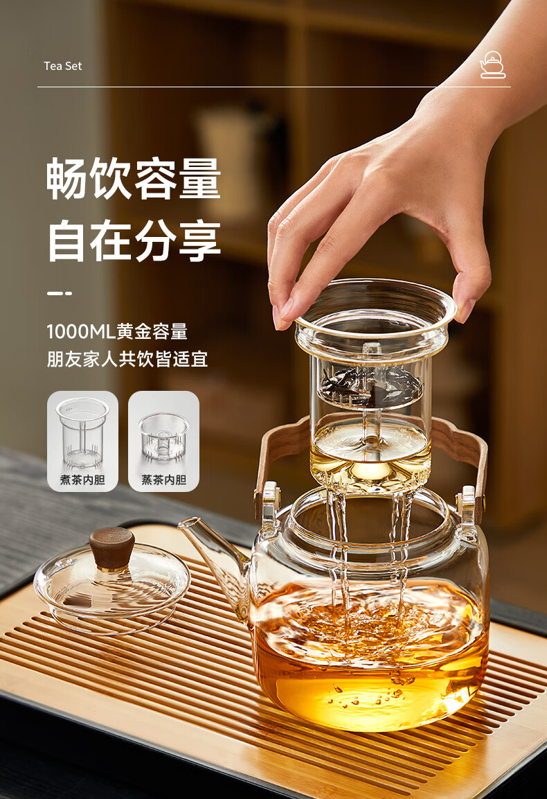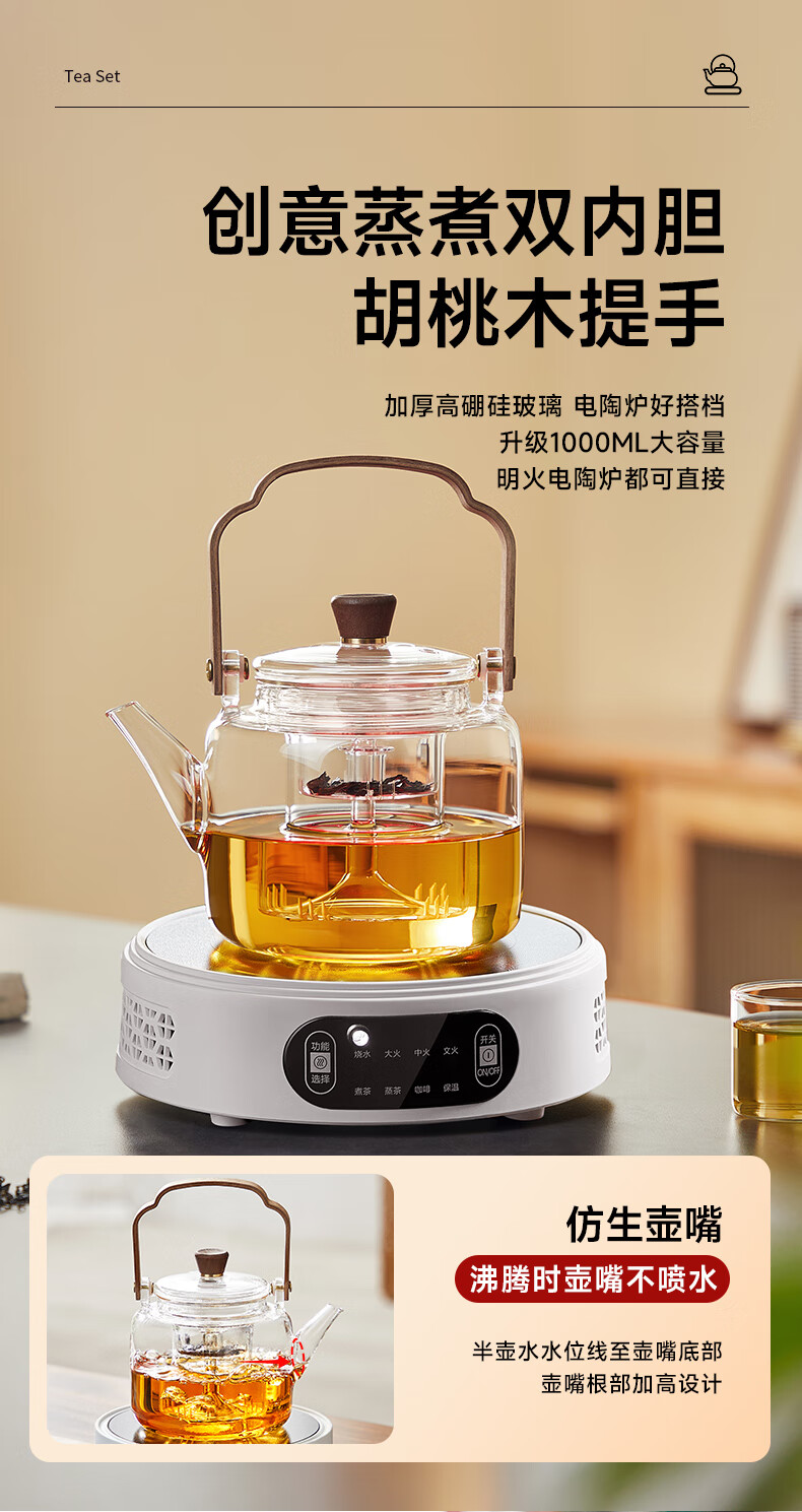 Yipot Tea Teapot Glass Thickened Tea Kettle Set High Temperature Resistant Household Scented Tea Kettle Tea Boiler Electric Ceramic Stove Set Thickened Heat Resistant Transparent Cooking Kettle 1000ml