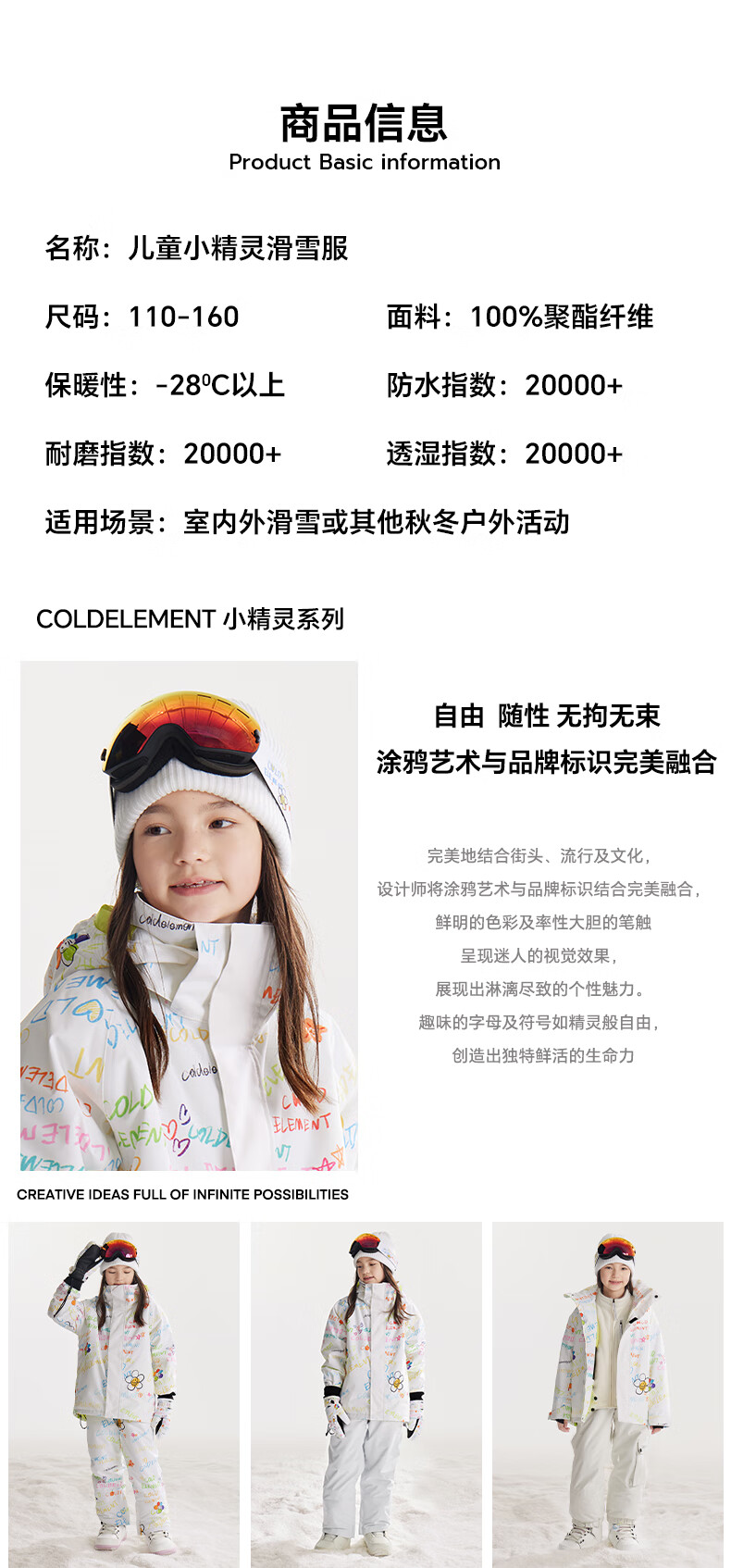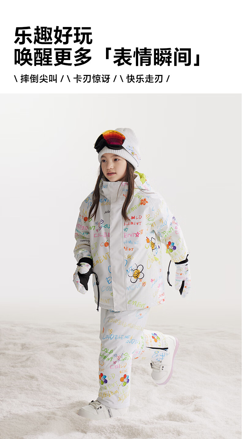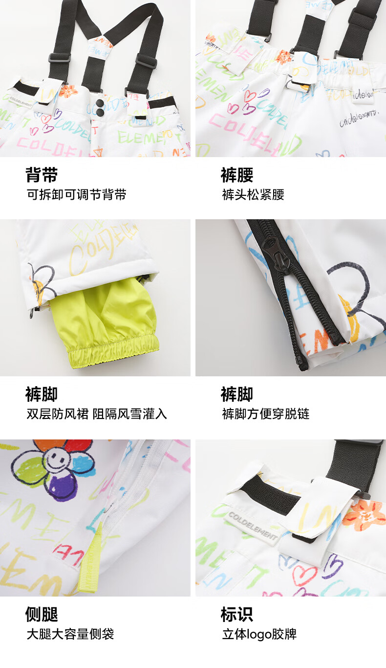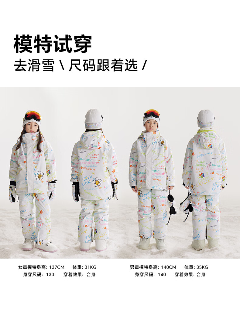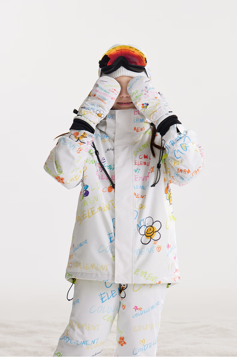 Cold element children's ski clothing for girls and boys waterproof single board and double board winter ski clothing overalls suit hand-painted graffiti + hand-painted graffiti 110cm (110)