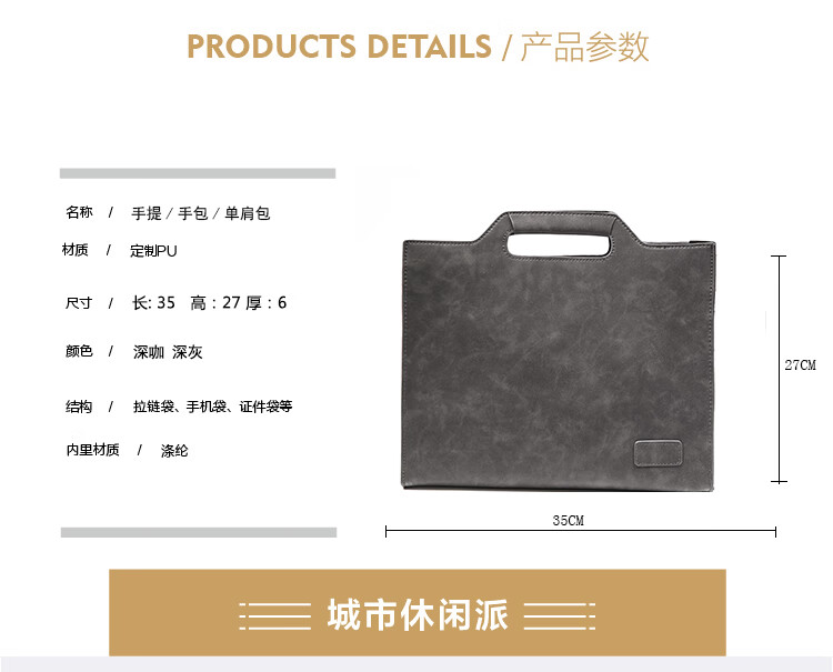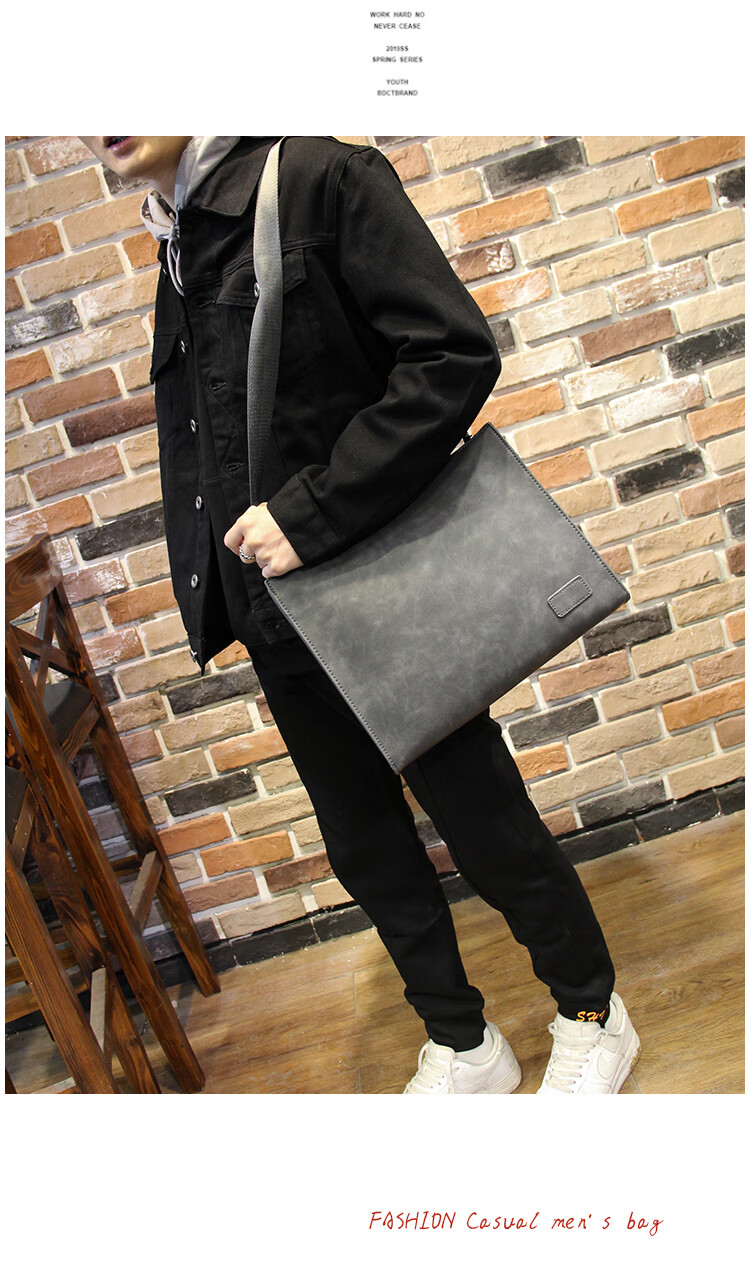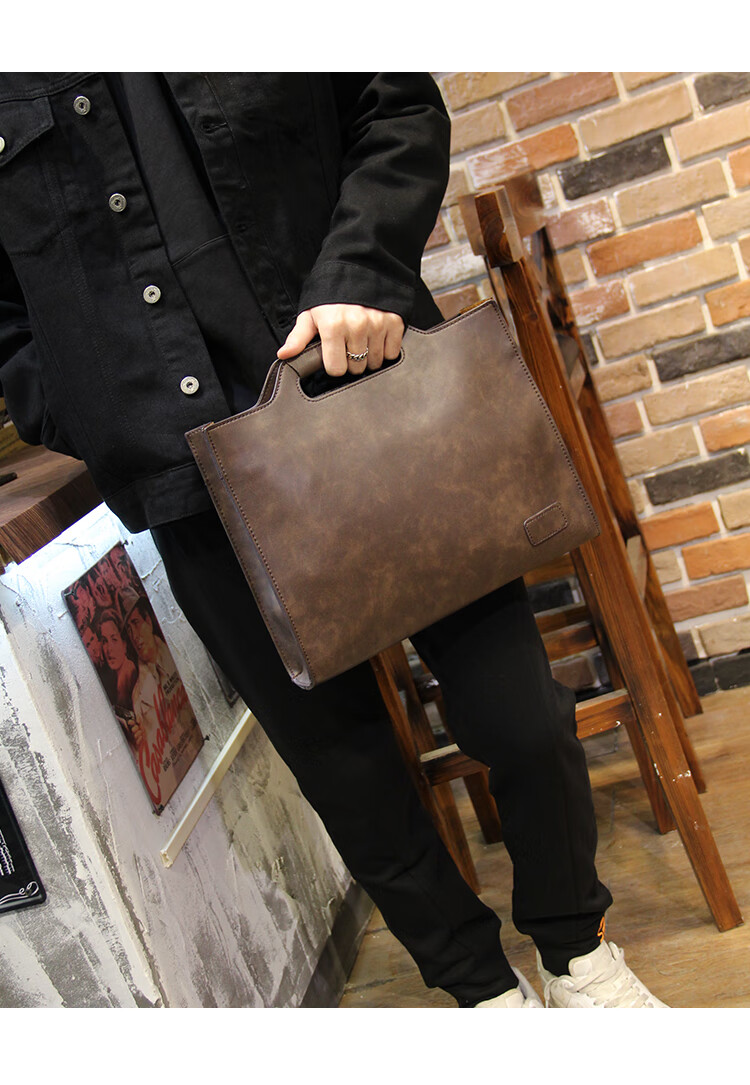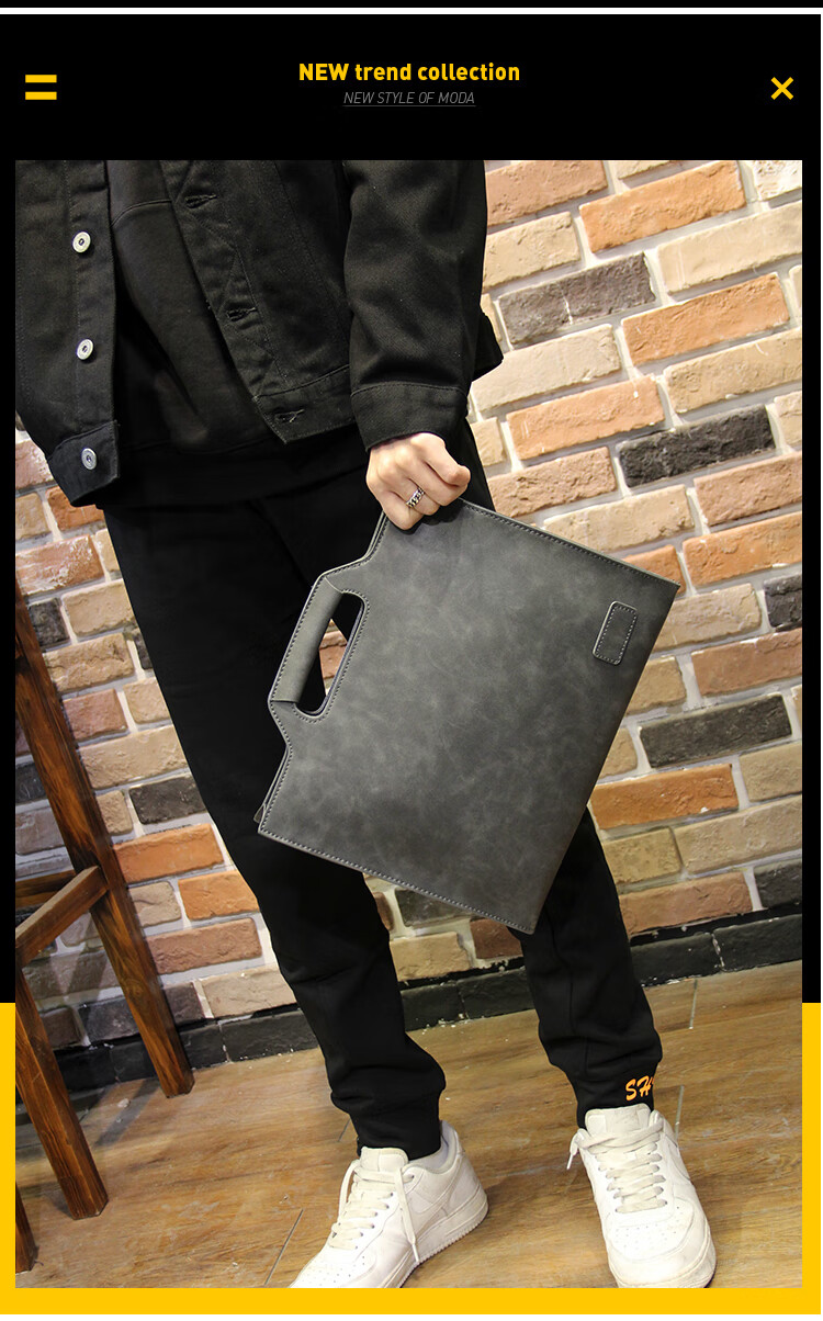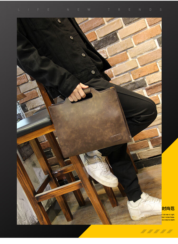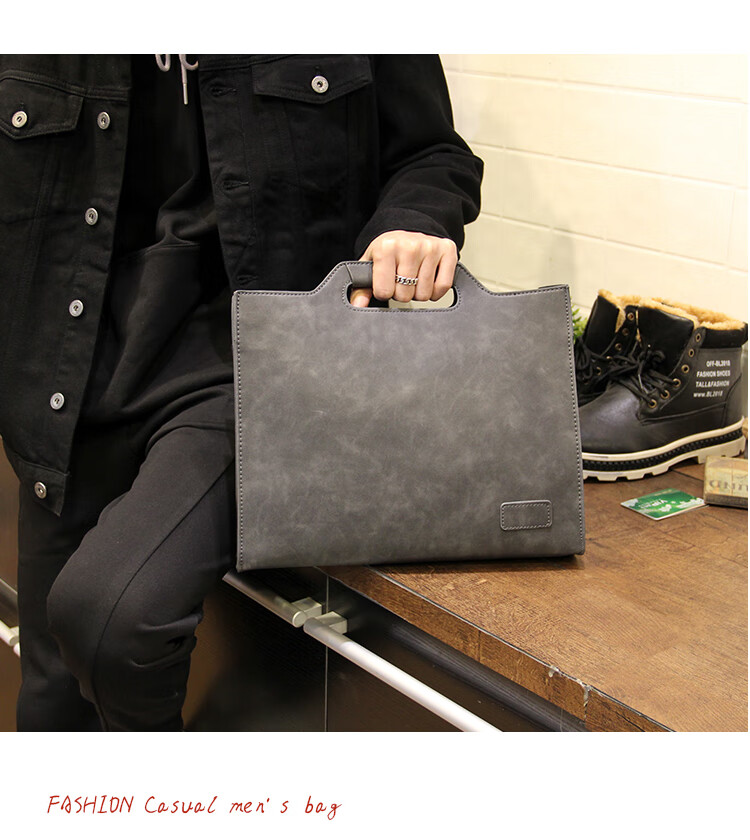 Casa-kupsCK briefcase men's new business handbag shoulder bag clutch bag trendy crossbody bag retro file bag dark gray #2#1 inch