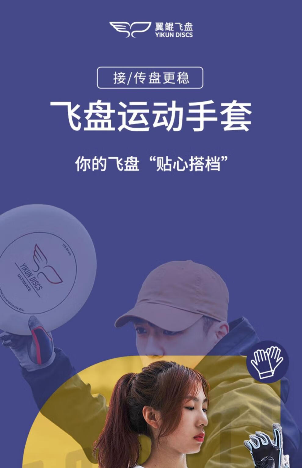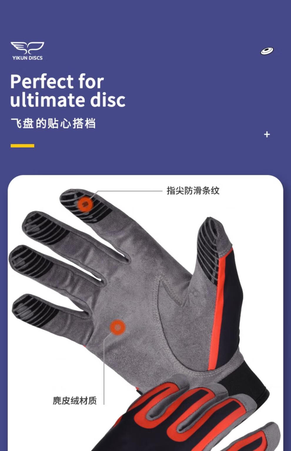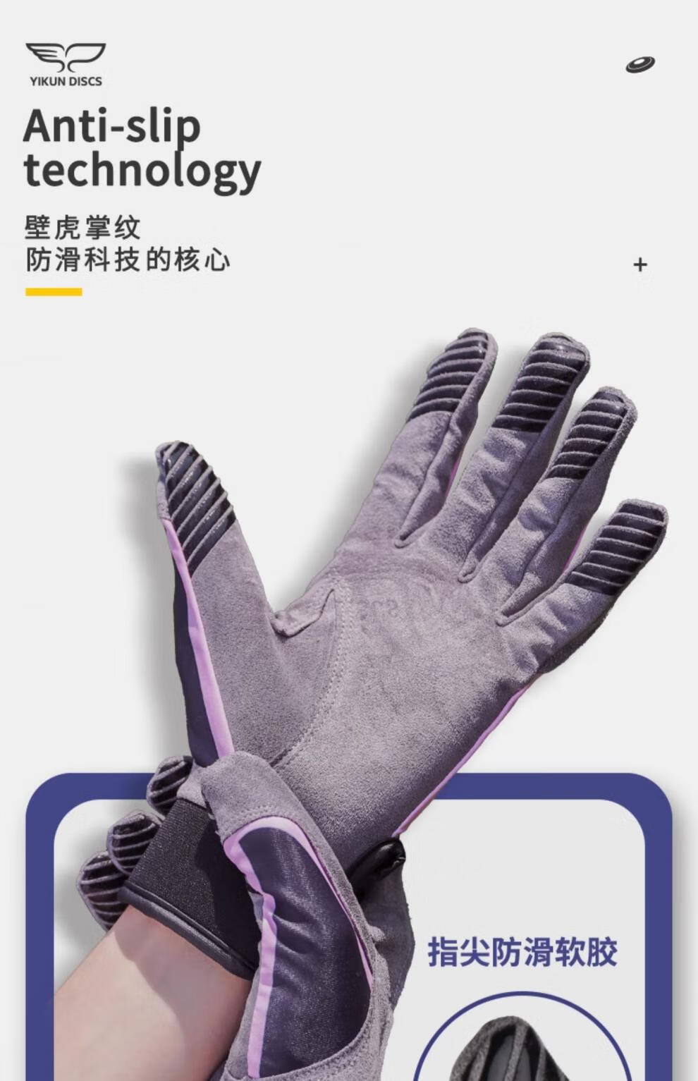 YIKUN DISCS official direct sales gloves for men and women, outdoor special sports protection, extreme non-slip, breathable, comfortable, quick-drying flying disc, white S size