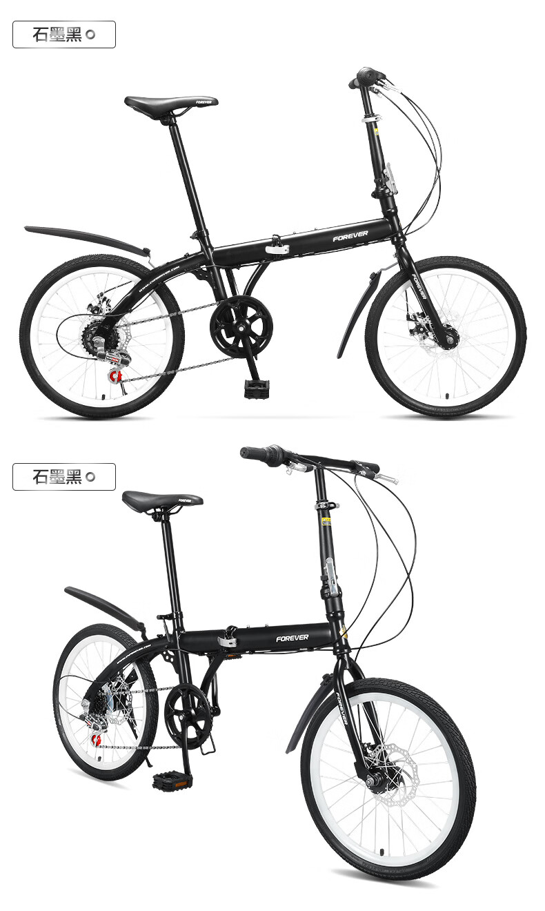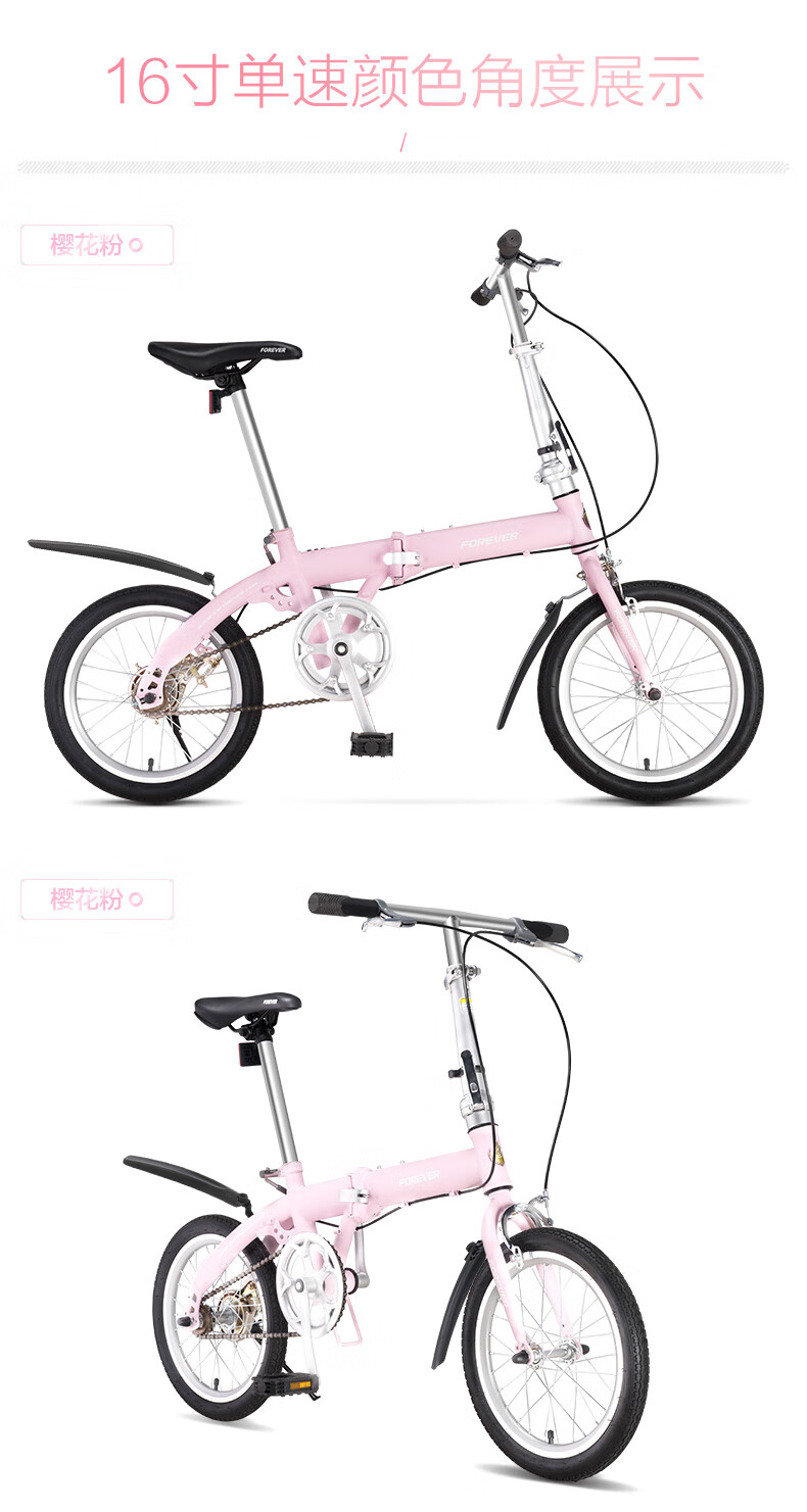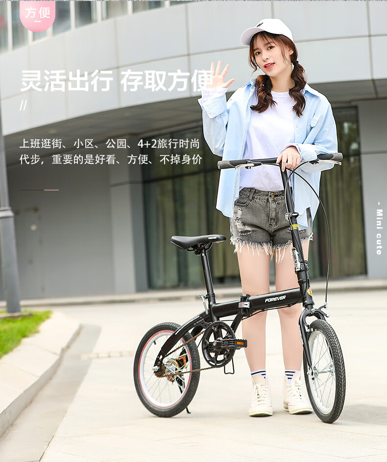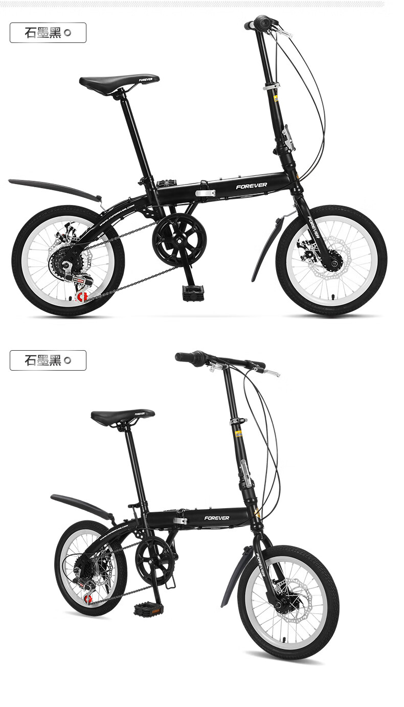 FOREVER (FOREVER) foldable bicycle, small, ultra-light, portable, women's, men's and adult bicycles, no installation required, 16-inch graphite black, single speed, 16-inch