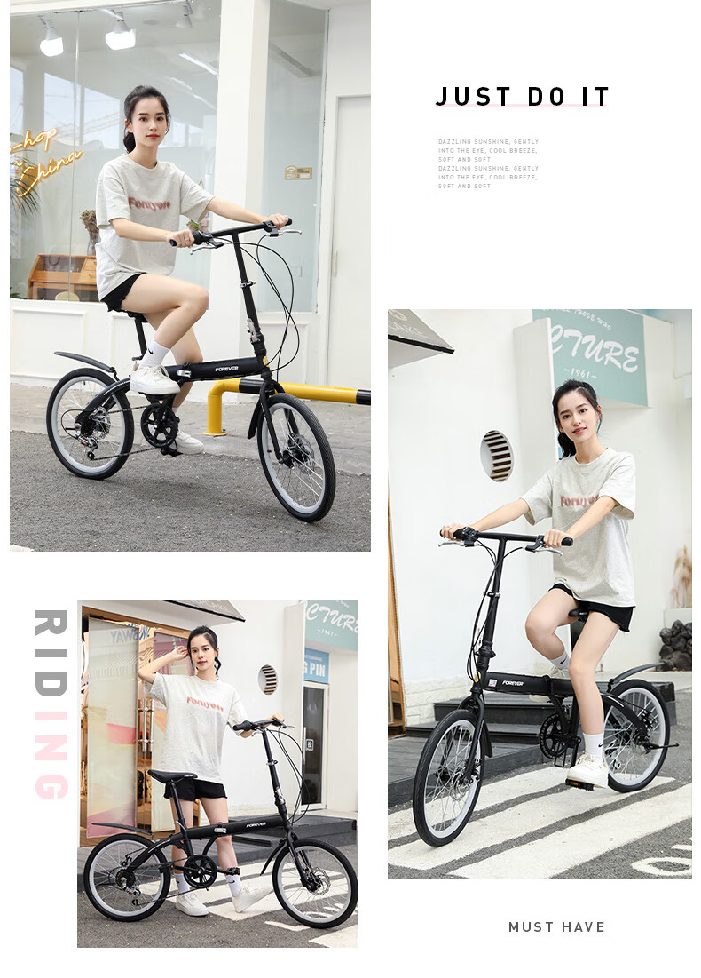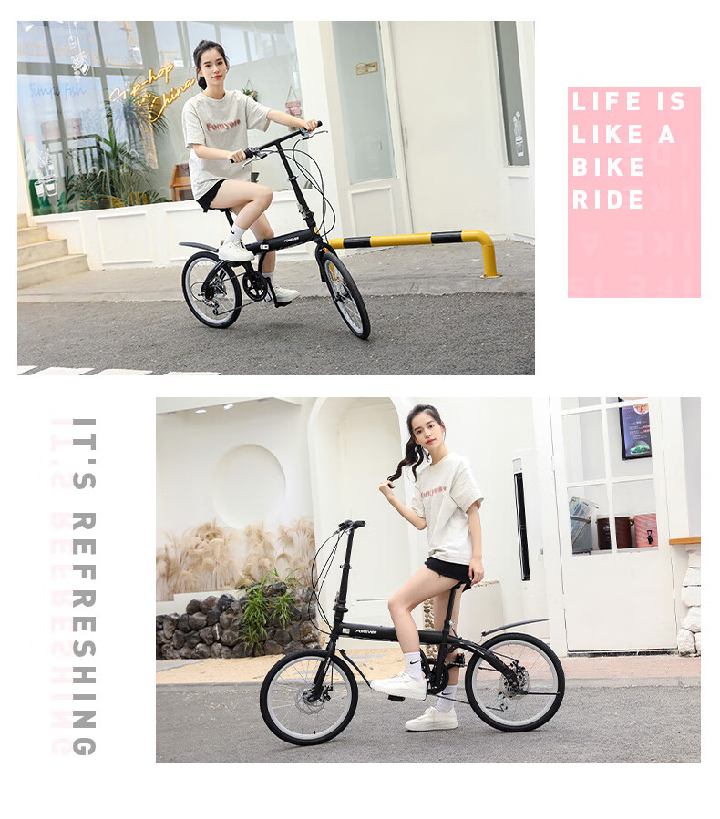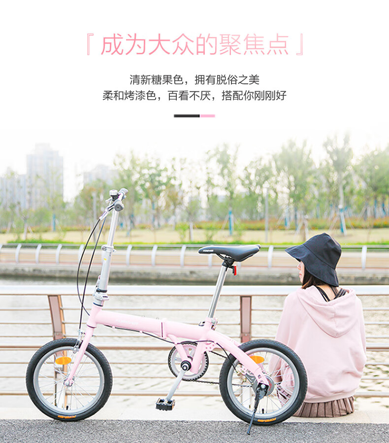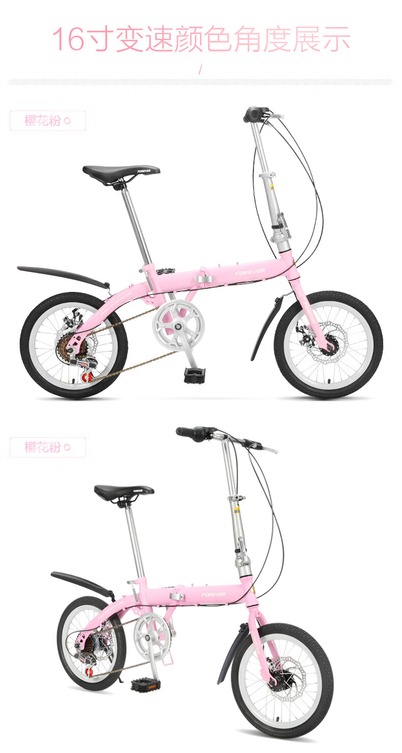 FOREVER (FOREVER) foldable bicycle, small, ultra-light, portable, women's, men's and adult bicycles, no installation required, 16-inch graphite black, single speed, 16-inch