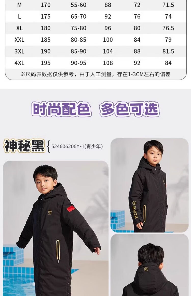 ZOKE cotton clothing children's swimming 2025 boys and girls youth training adult winter coat plus velvet warm water clothing 524606206Y-2 youth long cotton clothing 140