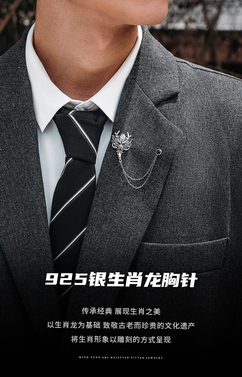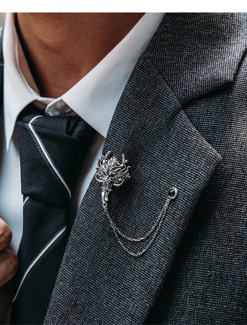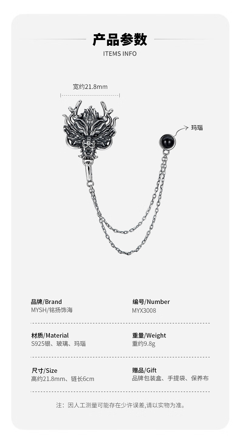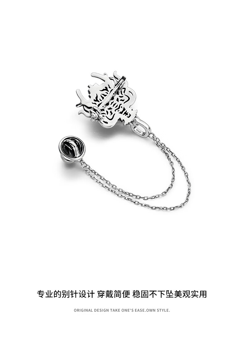 Mingyang Decorative Sea MYSH 925 silver 3D dragon head brooch men's original design high-end suit pin birthday gift dragon head brooch + brand black gift box